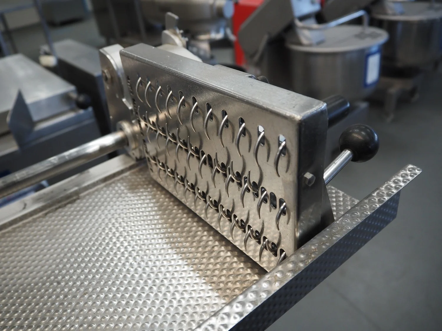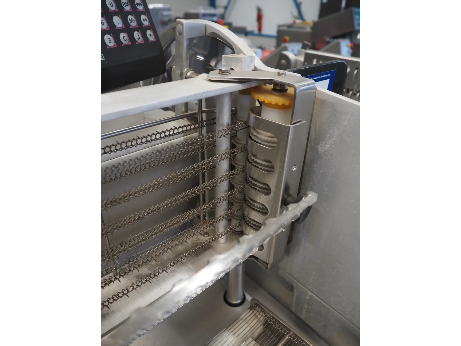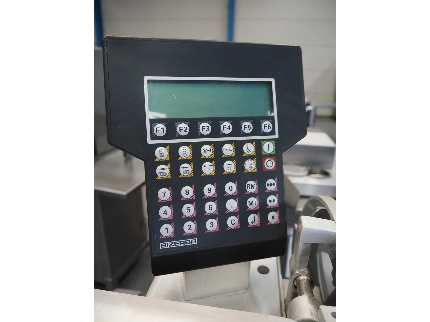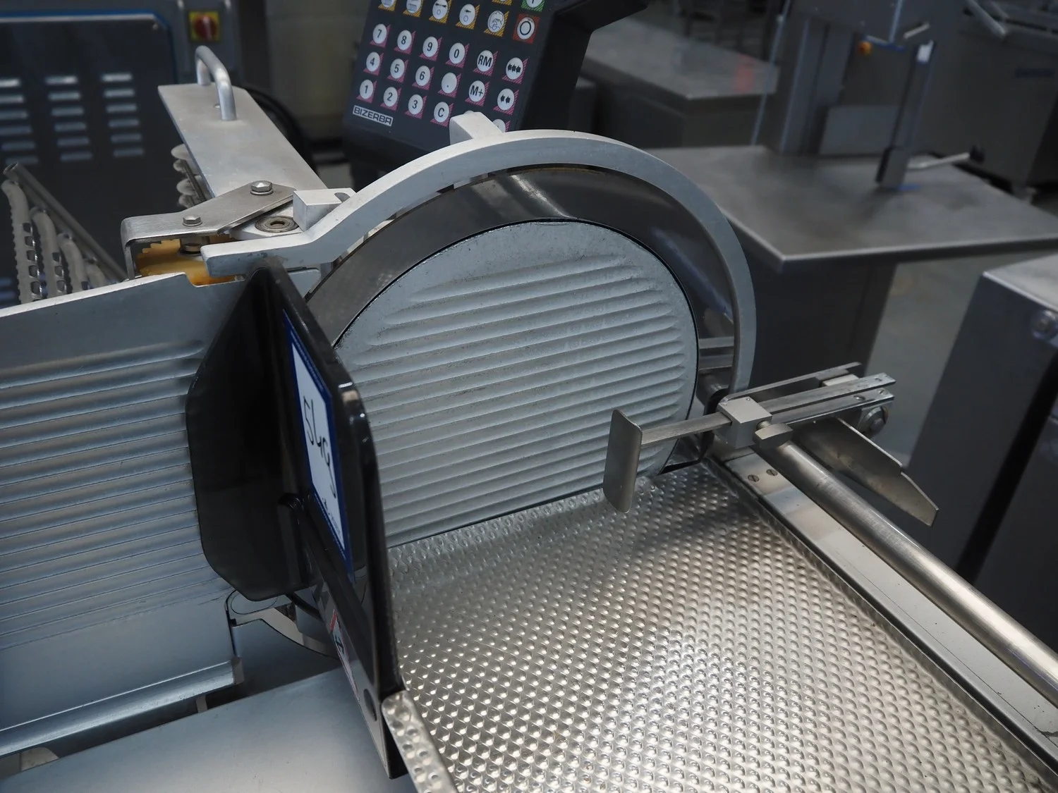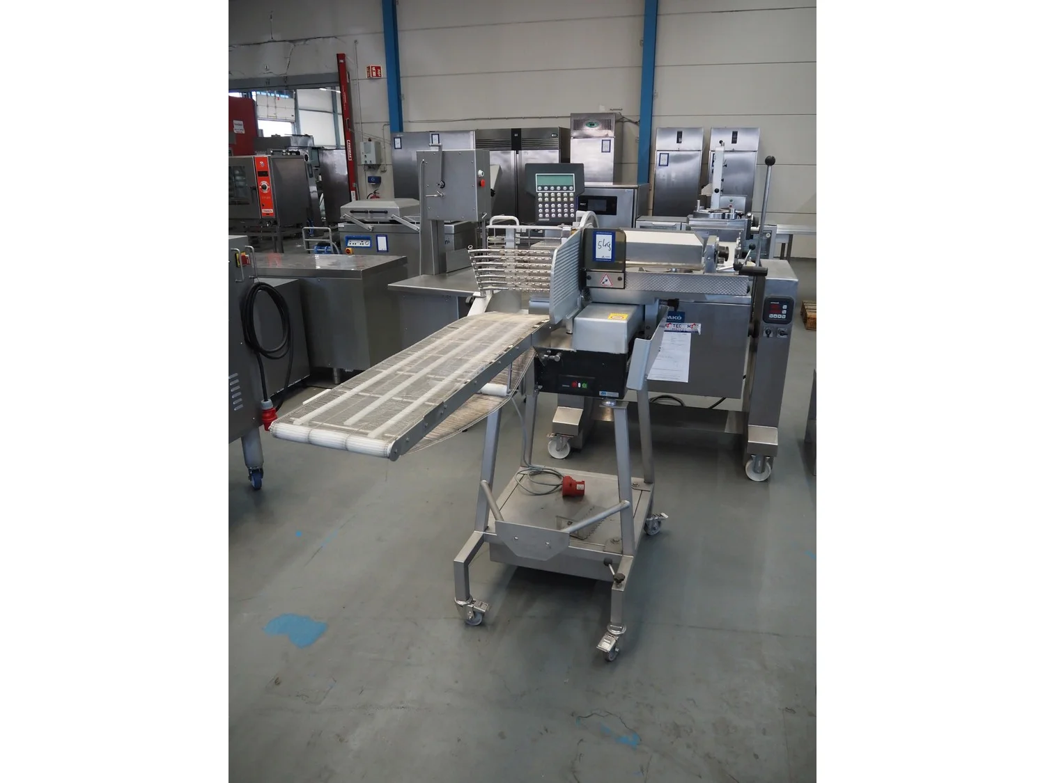 Bizerba mobile automatic slicer, model: A 404 FB, number: 1742198, year of construction: 1999, 230/400 V, 3 Ph, 50 Hz, 2.5/1.4 A, s/s mesh outfeed belt, belt width: 250 mm, total dimensions: 1700 mm x 1000 mm x 1600 mm.