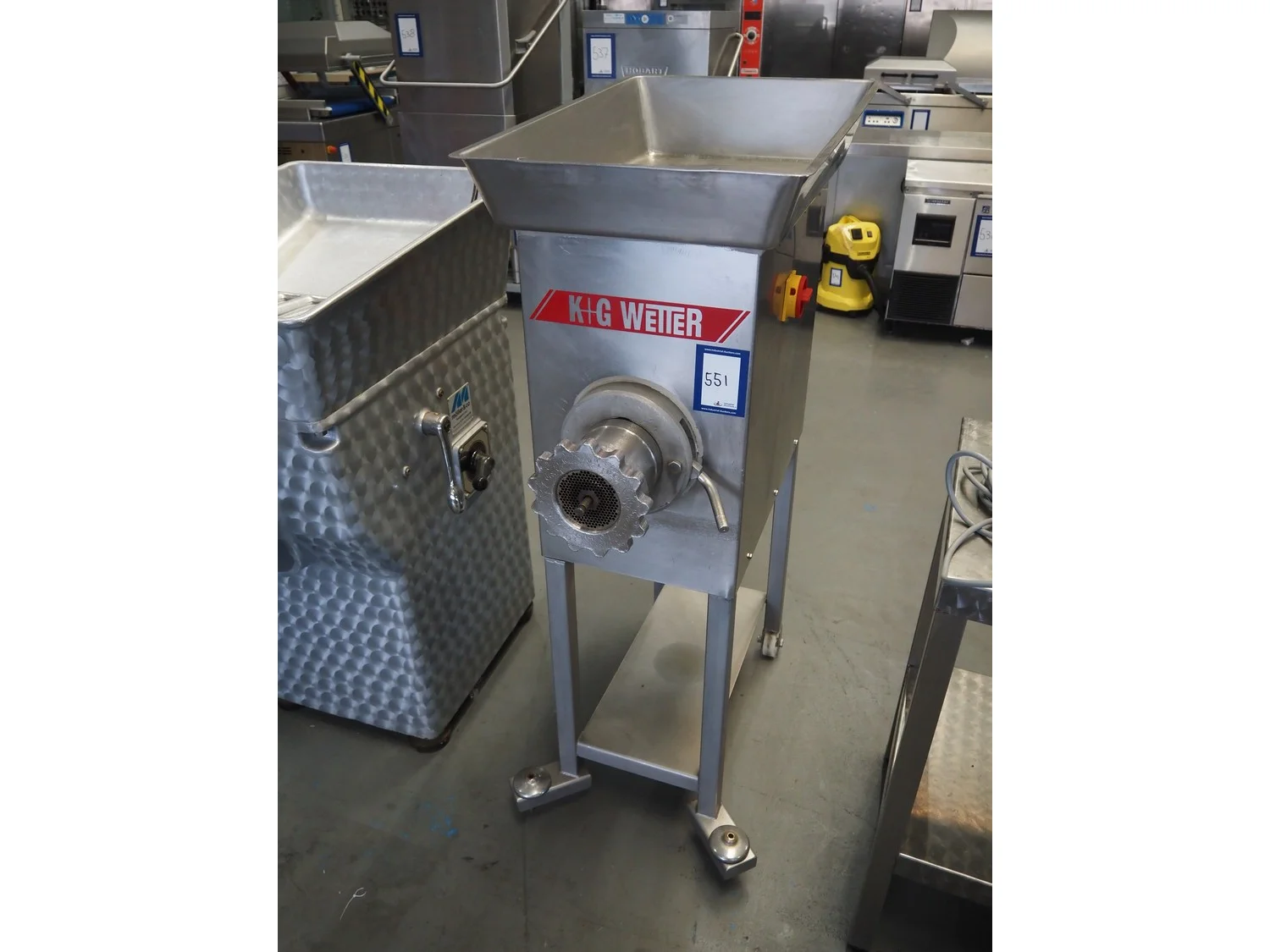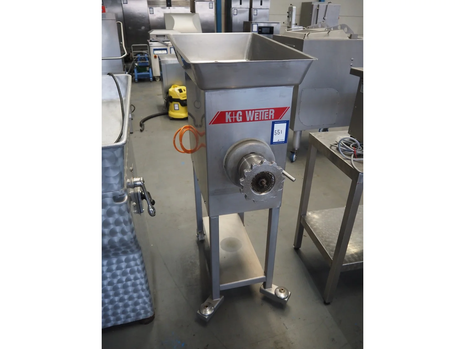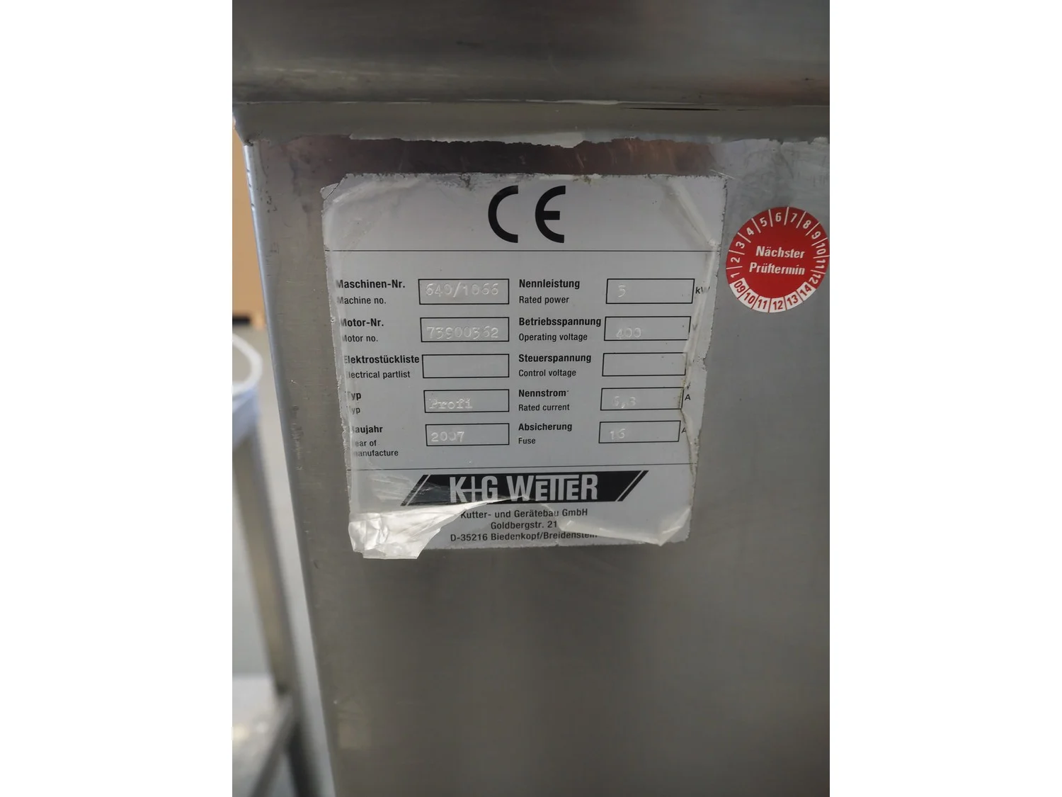 K+G Wetter mobile grinder, type: Profi, machine number: 640/1066, year of construction: 2007, 400 V, 6.3 A, 3 kW, plate diameter: 98 mm, total dimensions: 500 mm x 800 mm x 1350 mm.