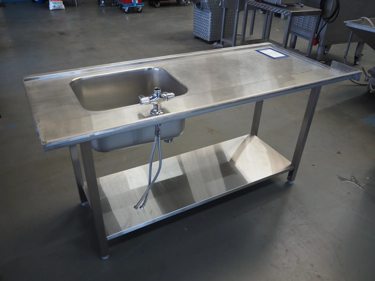 S/s sink with faucet, dimensions: 1600 mm x 750 mm x 900 mm.