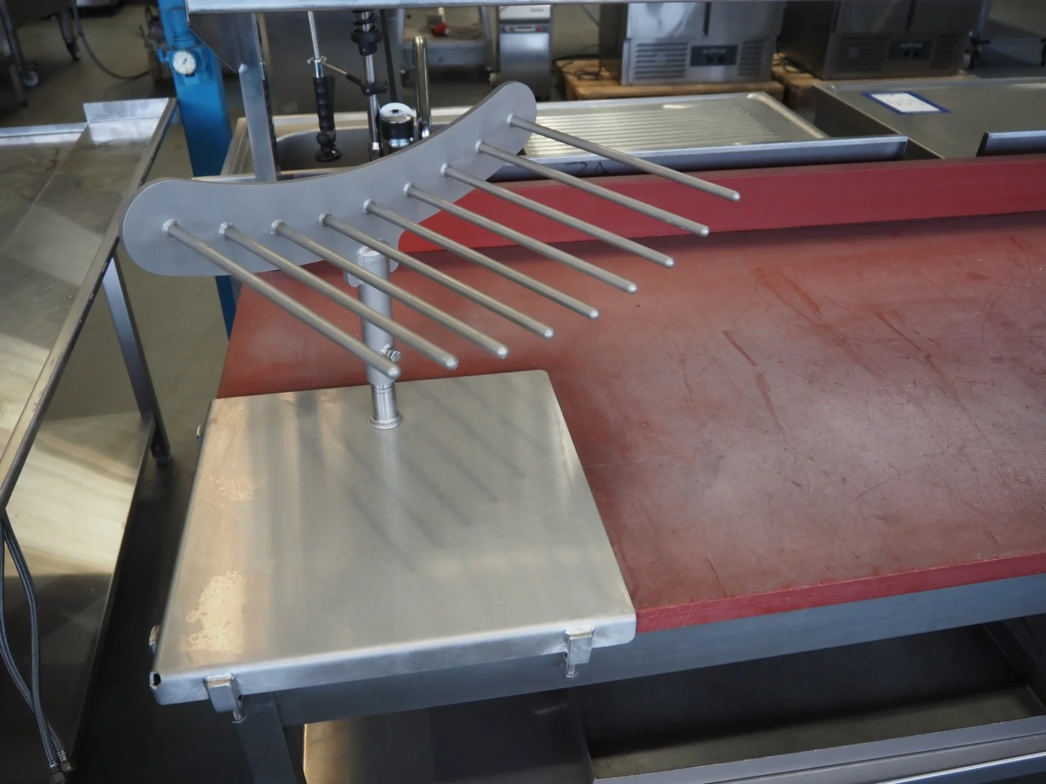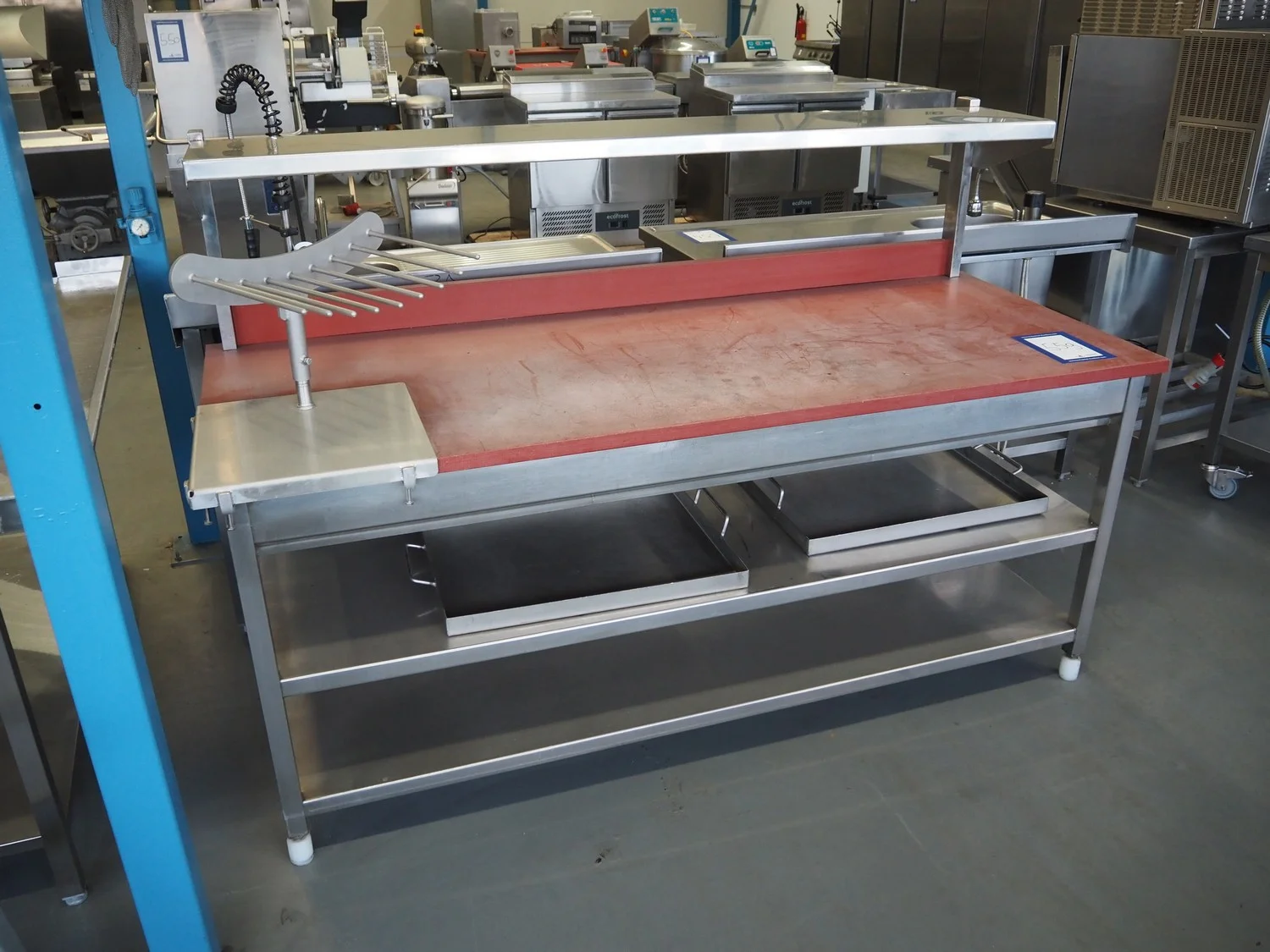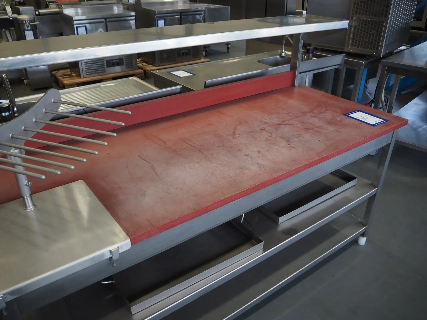 S/s table with plastic top, dimensions: 2000 mm x 800 mm x 1330 mm.