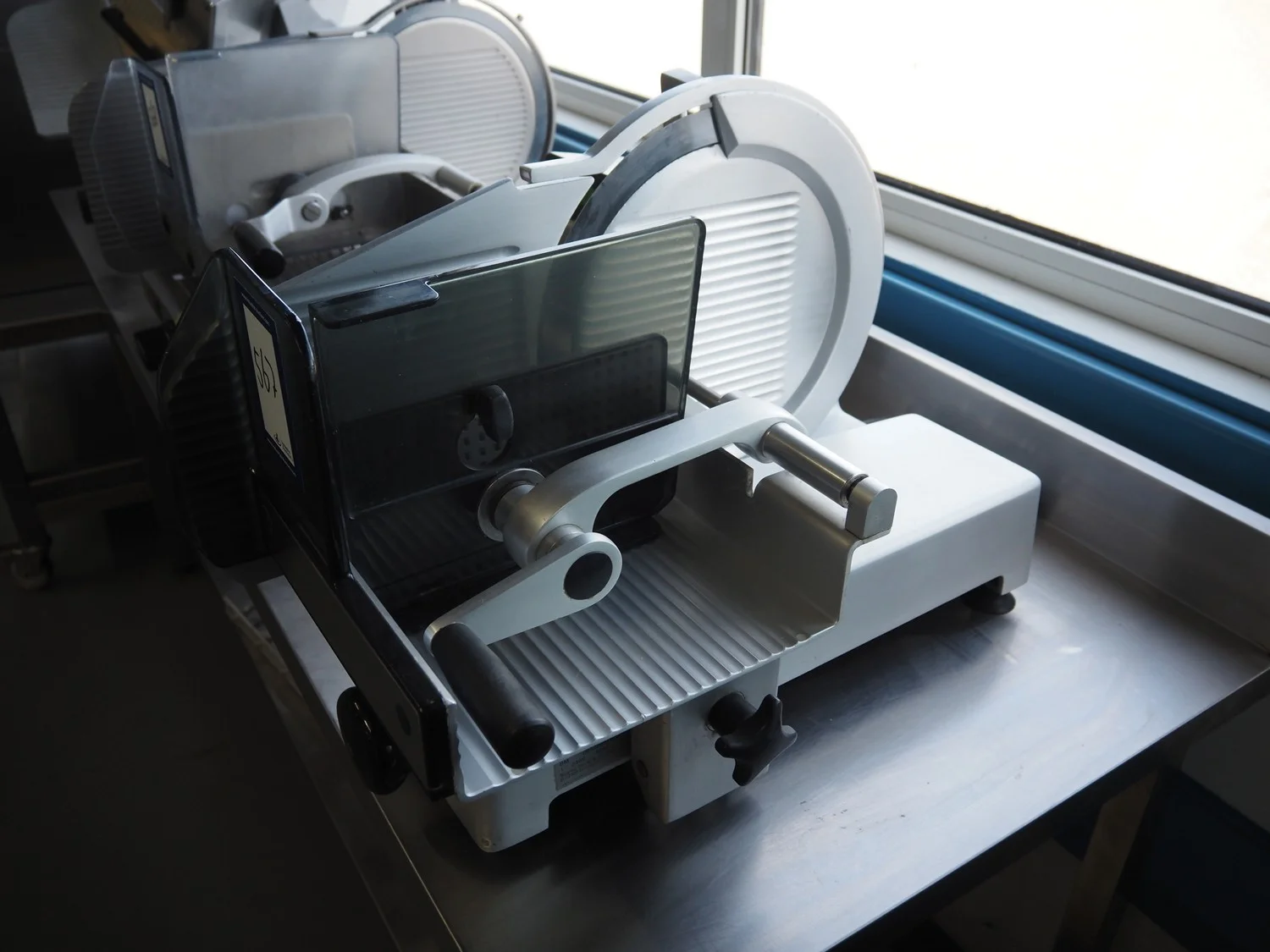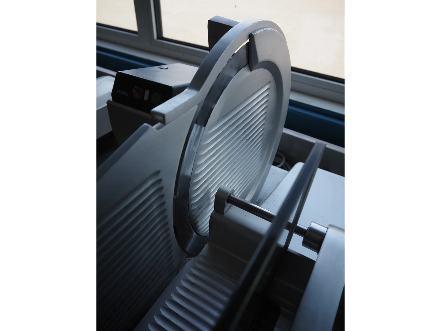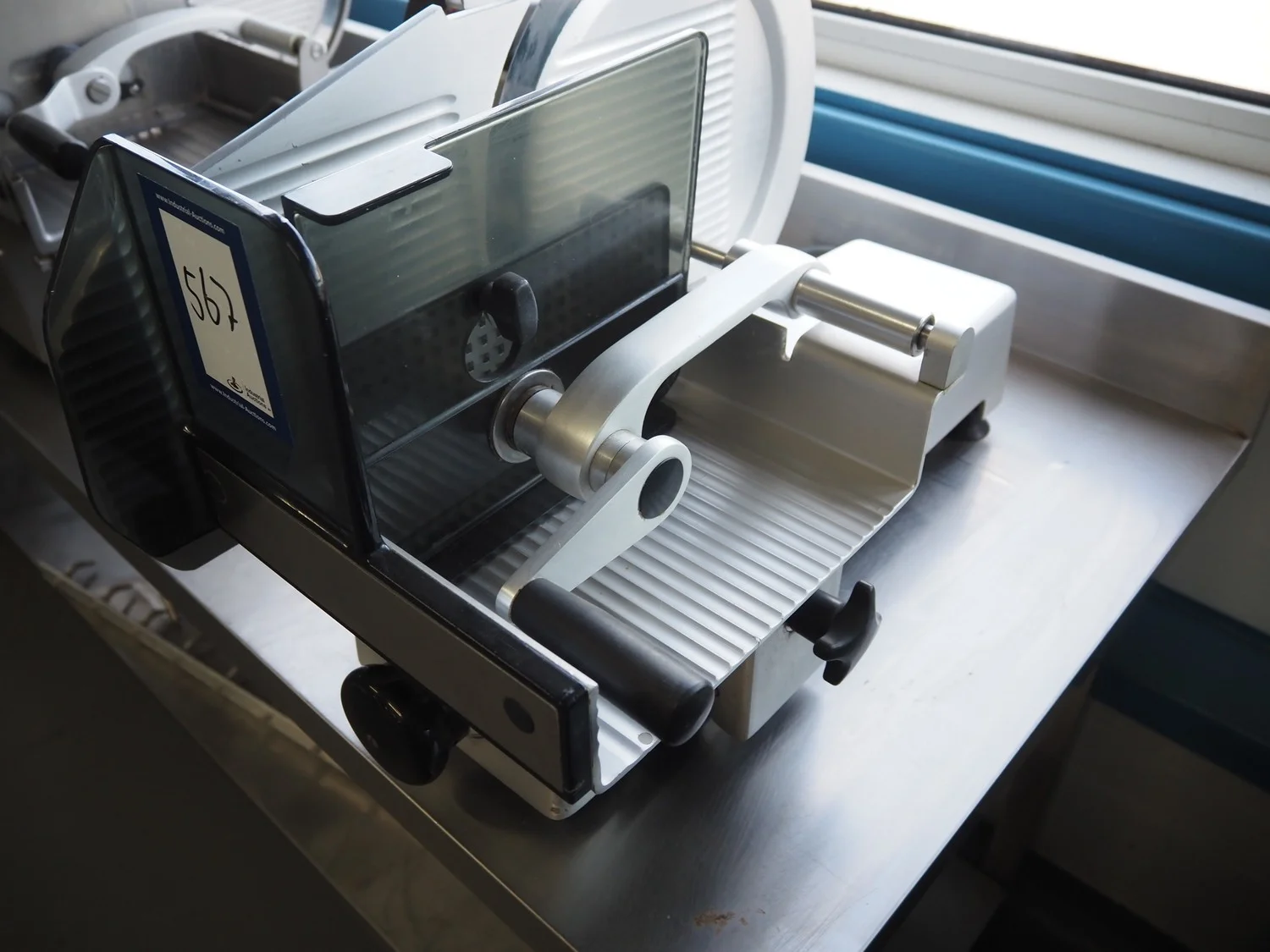 Bizerba slicer, type: VS 8, number: 1655141, year of construction: 1998, 230 V, 1 Ph, 50 Hz, 1.79 A, dimensions: 655 mm x 530 mm x 430 mm.
