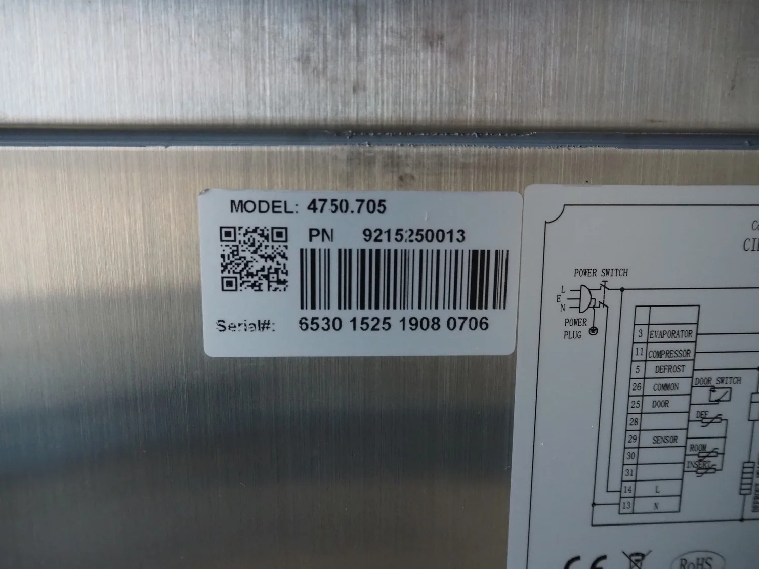 Ecofrost blast chiller, model: 4750.705, serial number: 6530 1525 1908 0706, 5 floors, dimensions each floor: 600 mm x 370 mm, total dimensions: 800 mm x 800 mm x 1000 mm.
