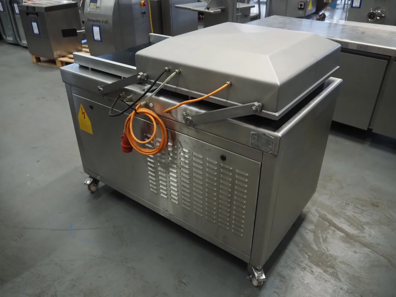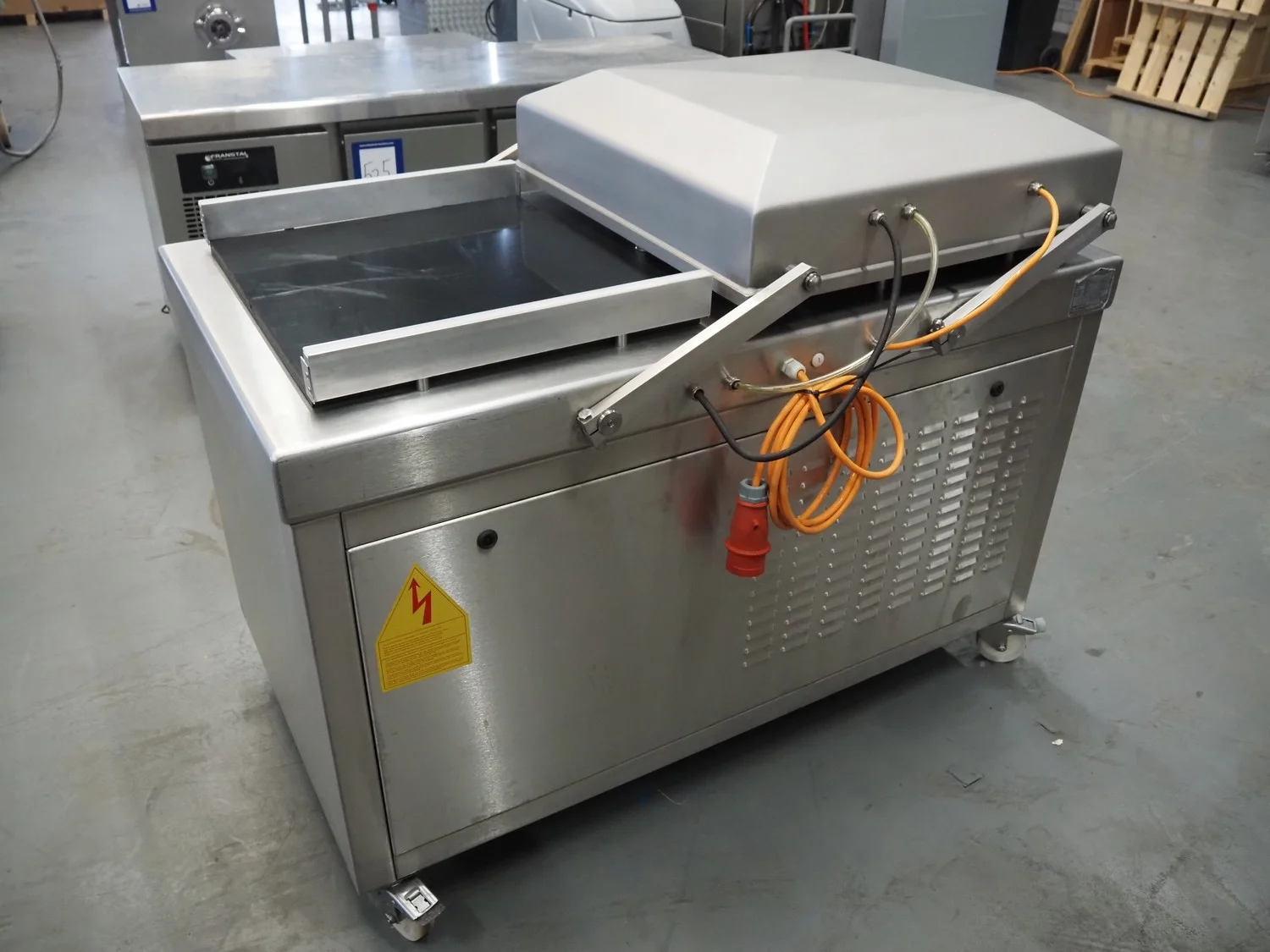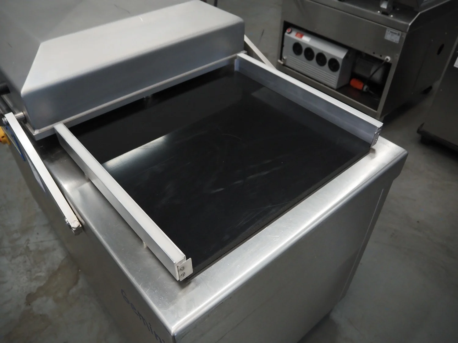 Stephanal Alvac mobile double chamber vacuum machine, type: Gemini, machine number: 1049-5437, year of construction: 2019, 230/400 V, 3 Ph, 50 Hz, 8.5/5 A, 2.2 kW, seal length: (4x) 550 mm, chamber dimensions: 615 mm x 550 mm, Busch vacuum pump, type: RA 0100 F 5R3, serial number: D18061371, capacity: 100 m³ per hour, total dimensions: 1500 mm x 500 mm x 1500 mm.