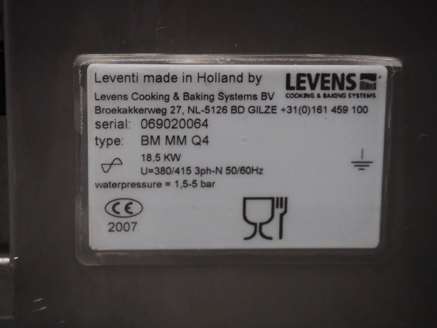 Leventi combi steamer, type: BM MM Q4, serial number: 069020064, year of construction: 2007, 380/415 V, 3 Ph, 50/60 Hz, 12 floors, floor dimensions: 410 mm x 600 mm, total dimensions: 960 mm x 880 mm x 1820 mm.