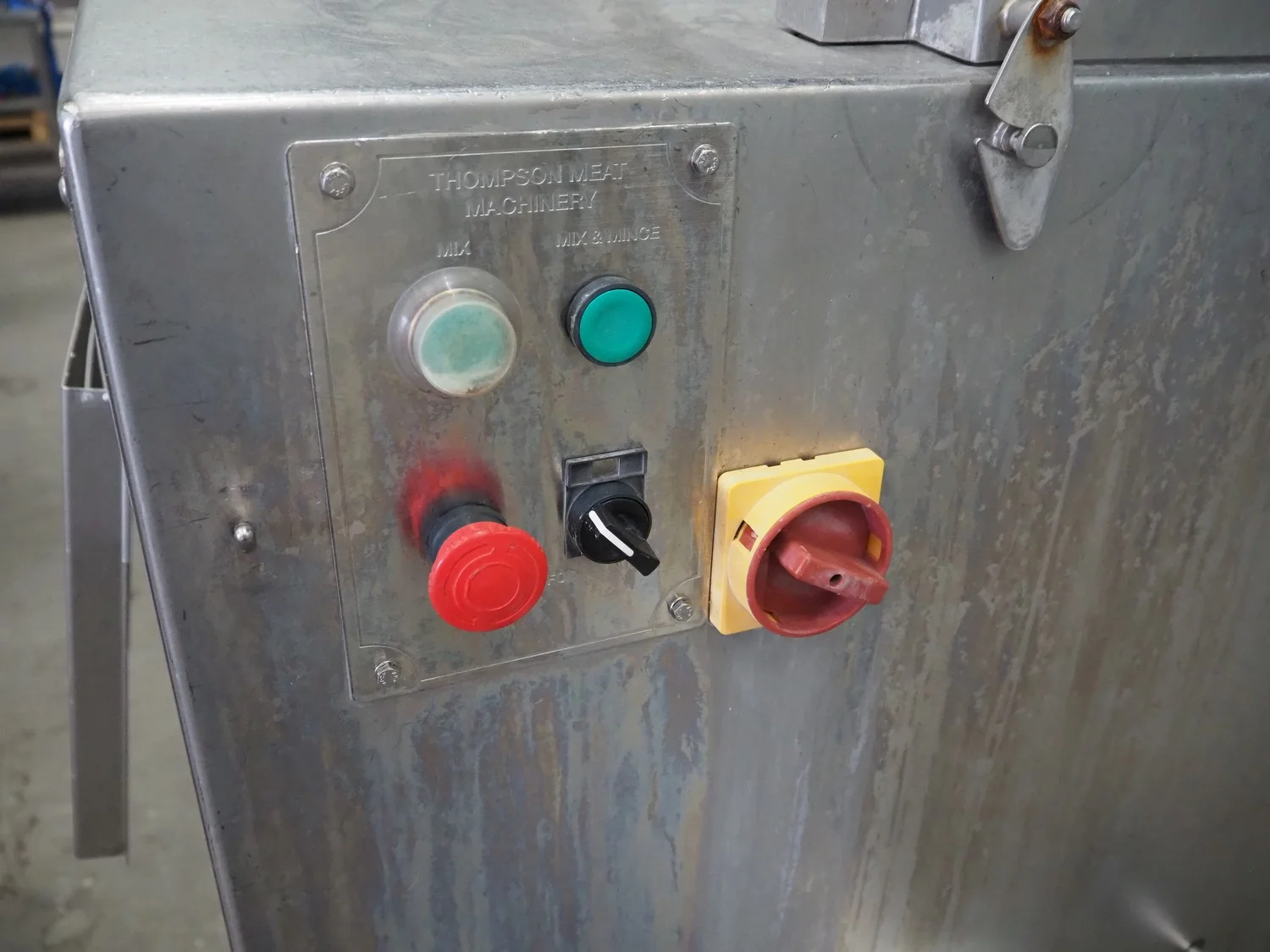 Thompson mixer-grinder, type: 3000, serial number: 3000.M1.2.34, year of construction: 6/2011, 415 V, plate diameter: approx. 120 mm, total dimensions: 1200 mm x 1250 mm x 1300 mm. Without knife plates.