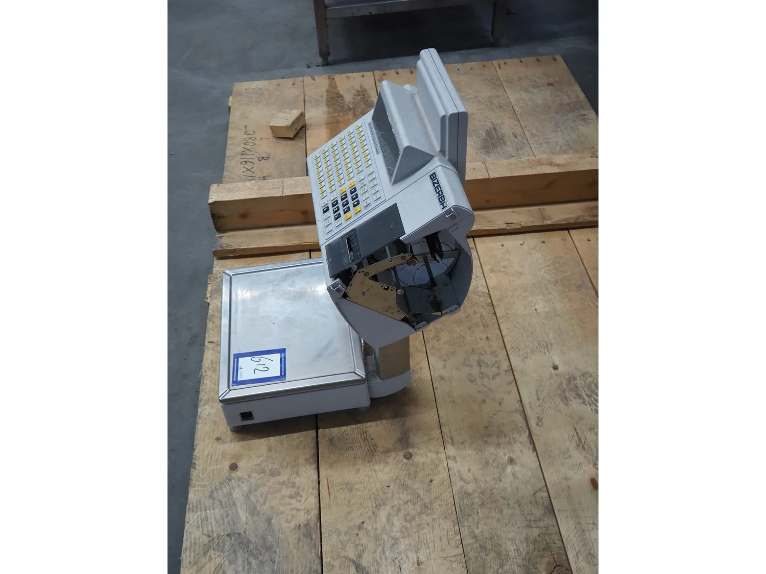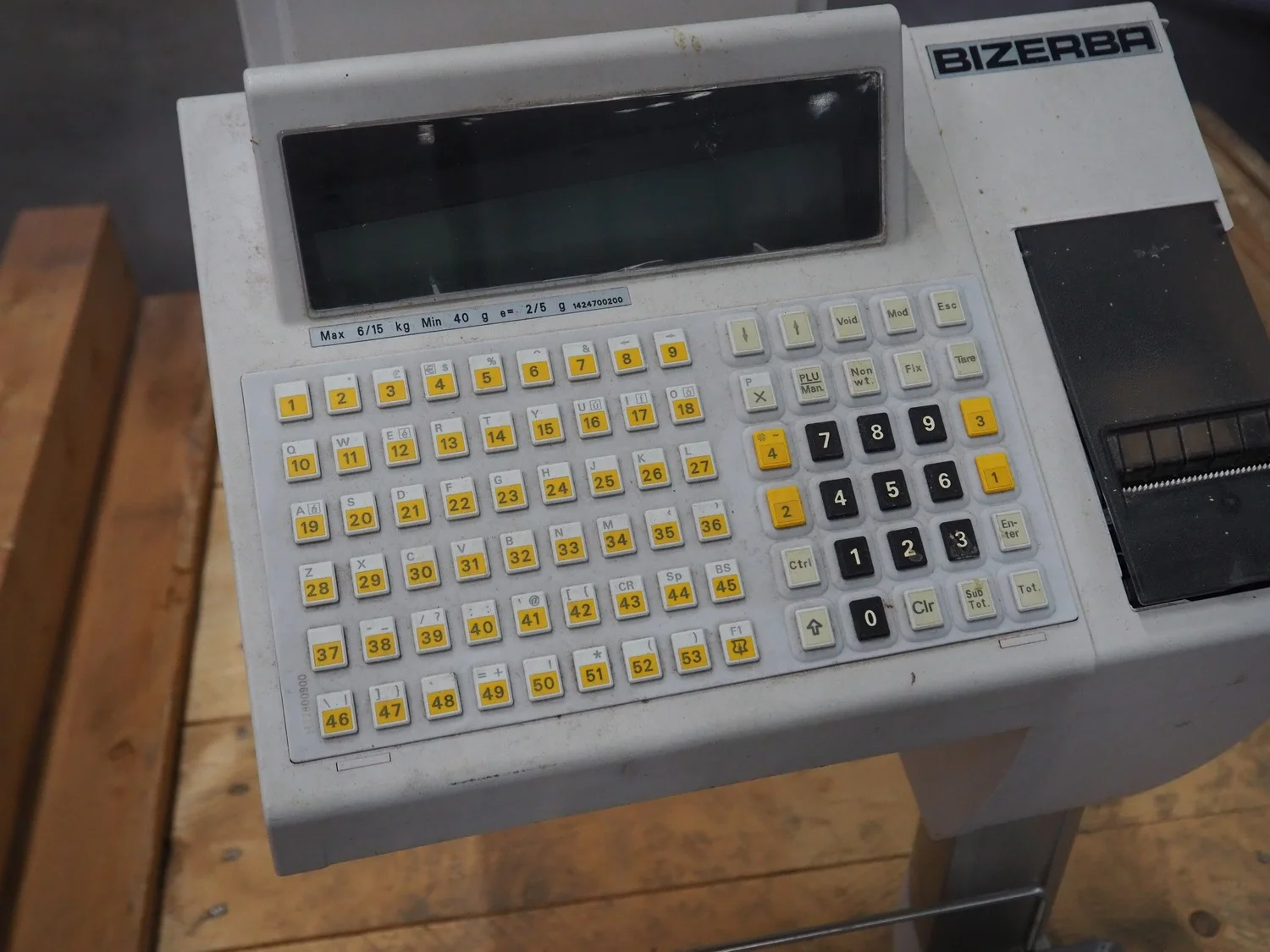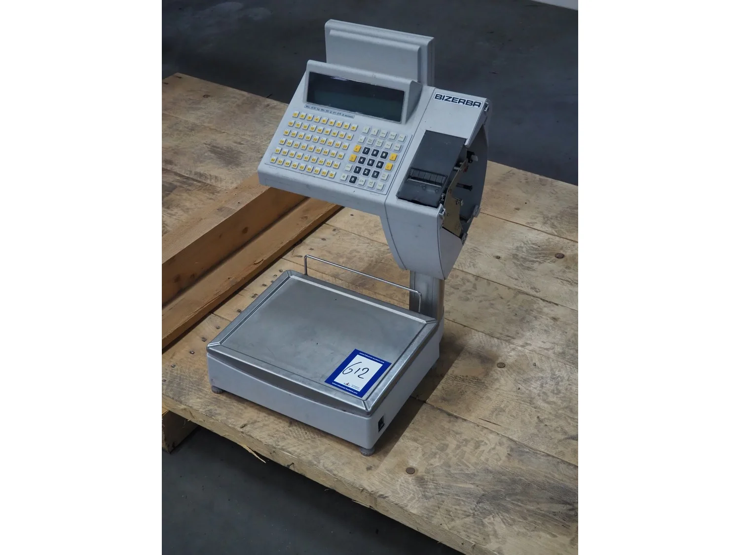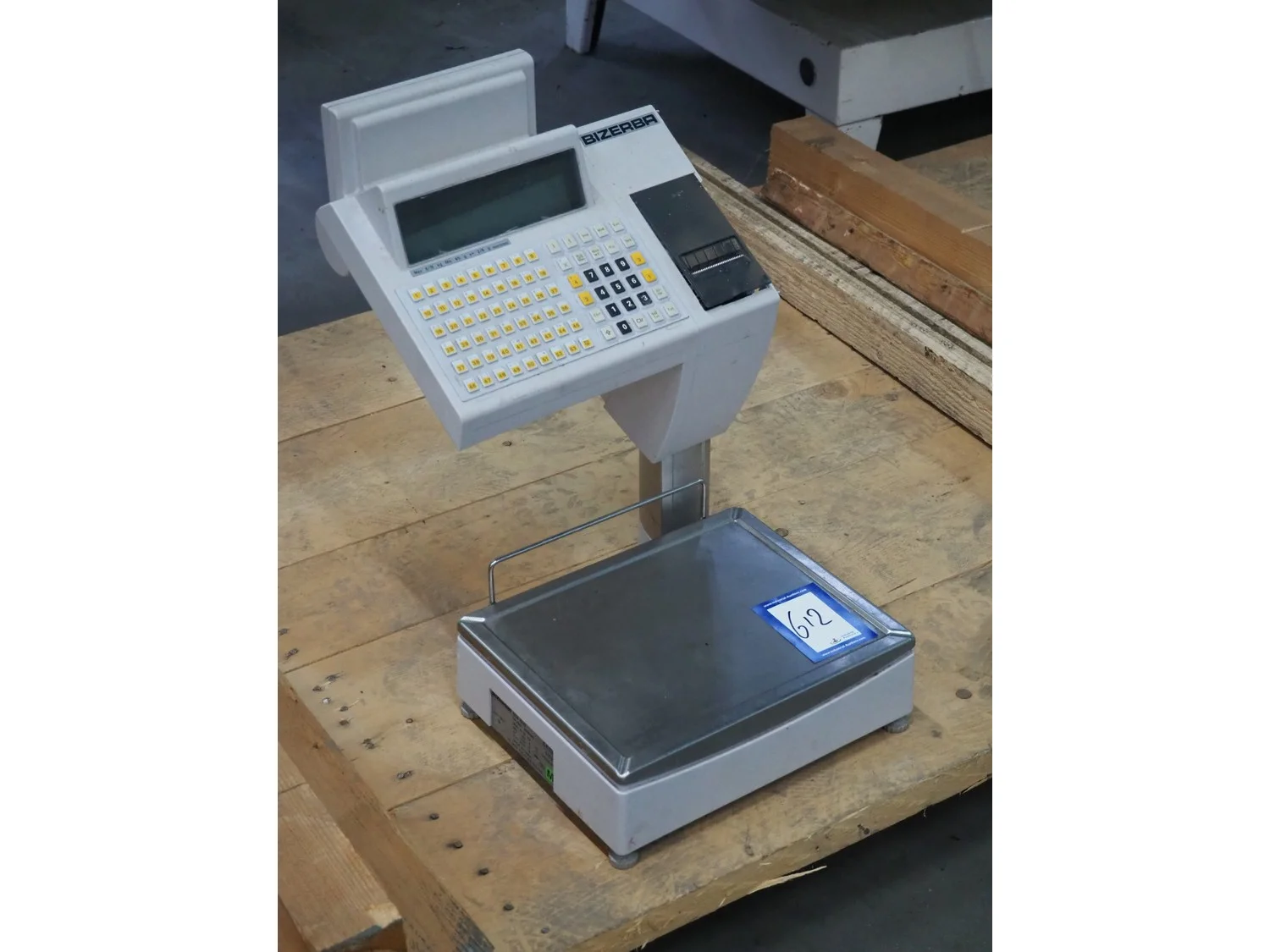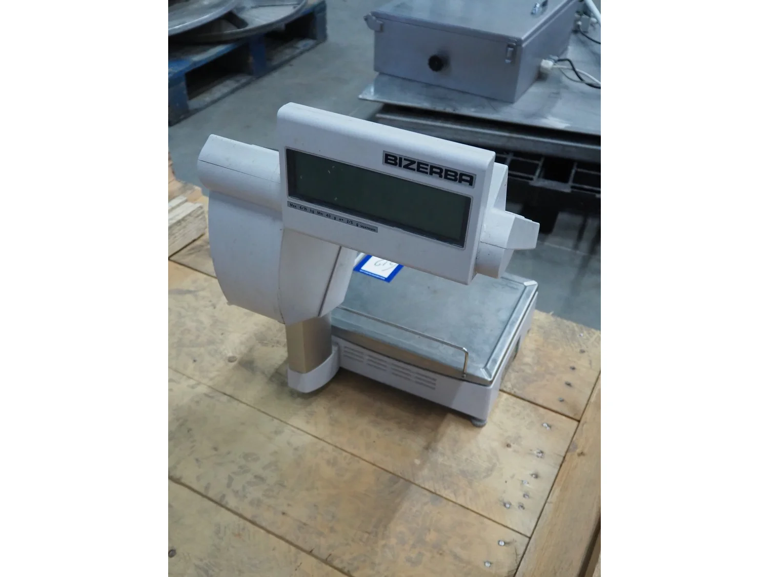 Bizerba weiging scale with indicator, maximum weight: 6/15 kg, minimum weight: 40 gram, e= 2/5 gram, dimensions: 500 mm x 360 mm x 560 mm.