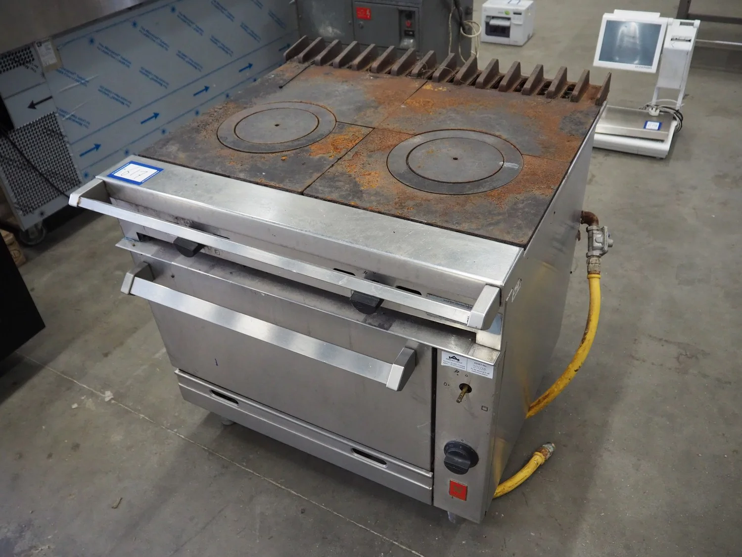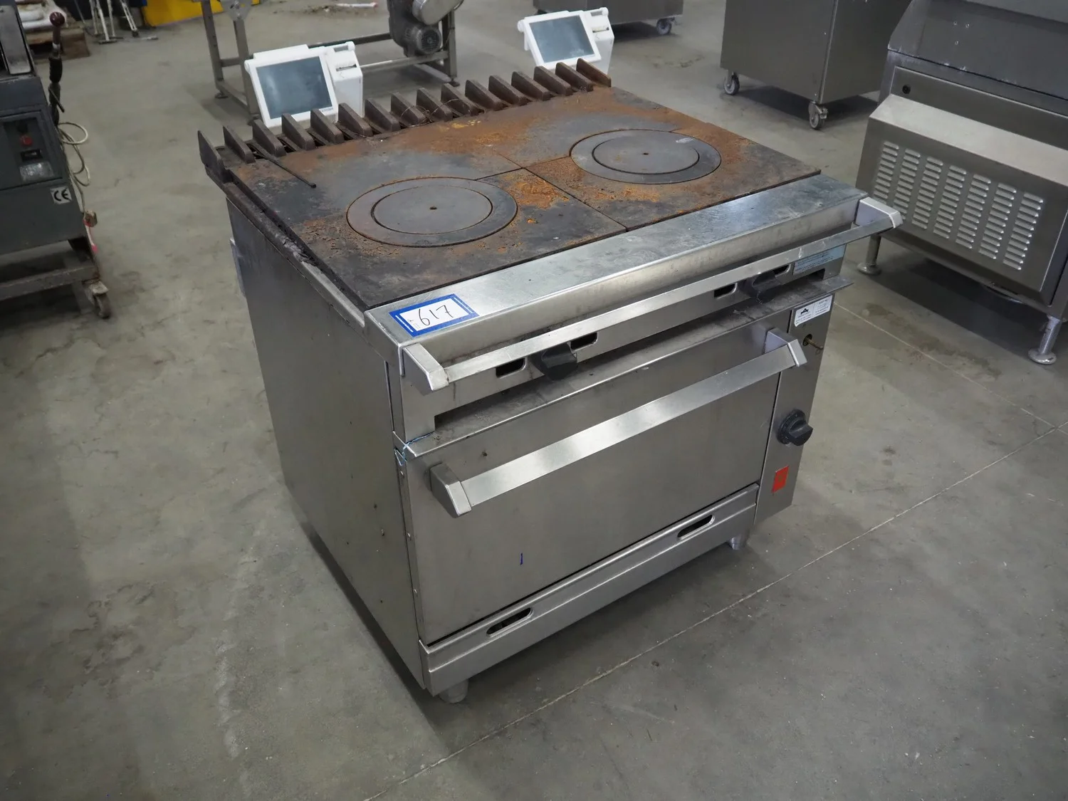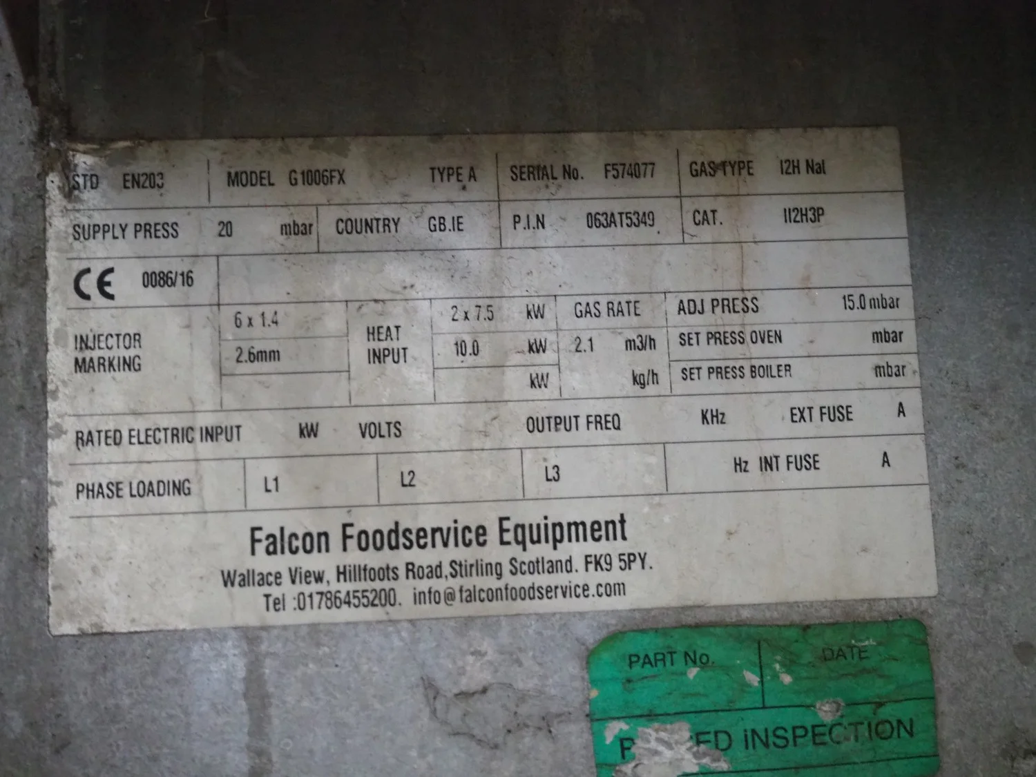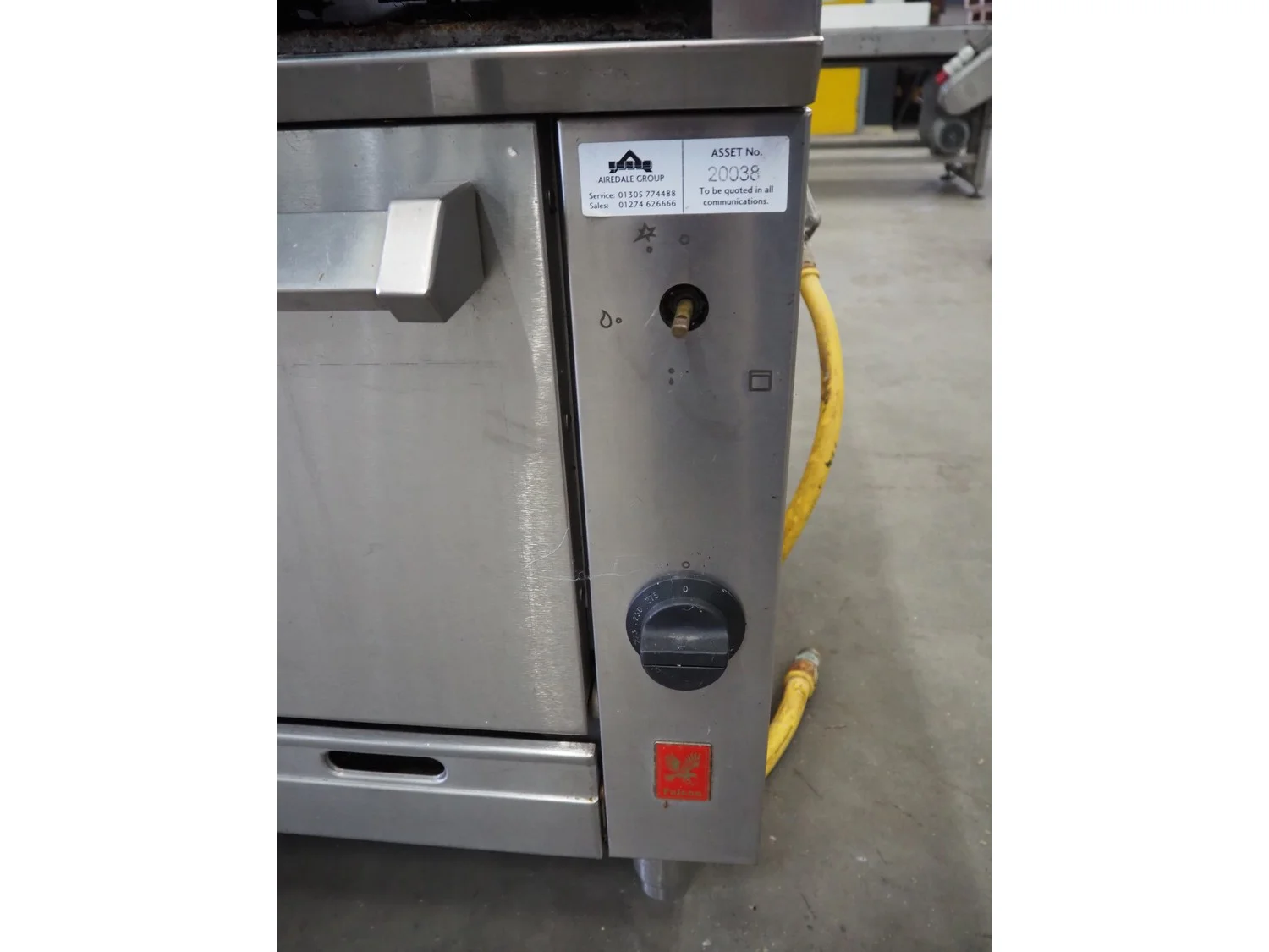 Falcon gas stove with oven, model: G1006FX, serial number: F574077, dimensions: 900 mm x 950 mm x 900 mm.