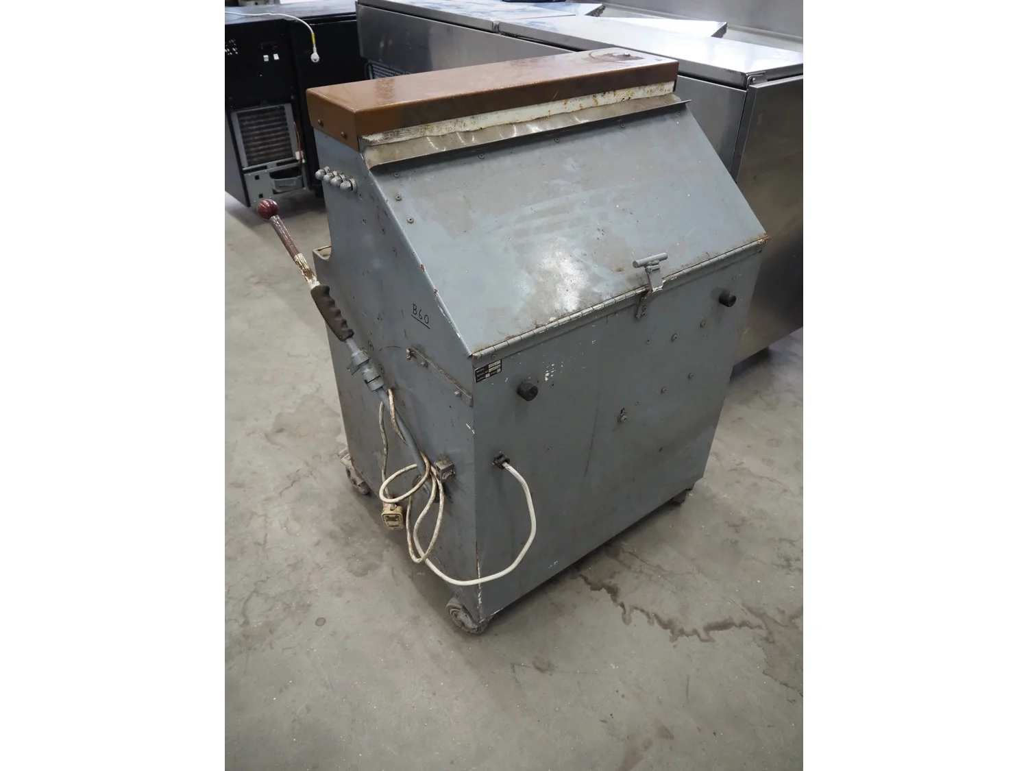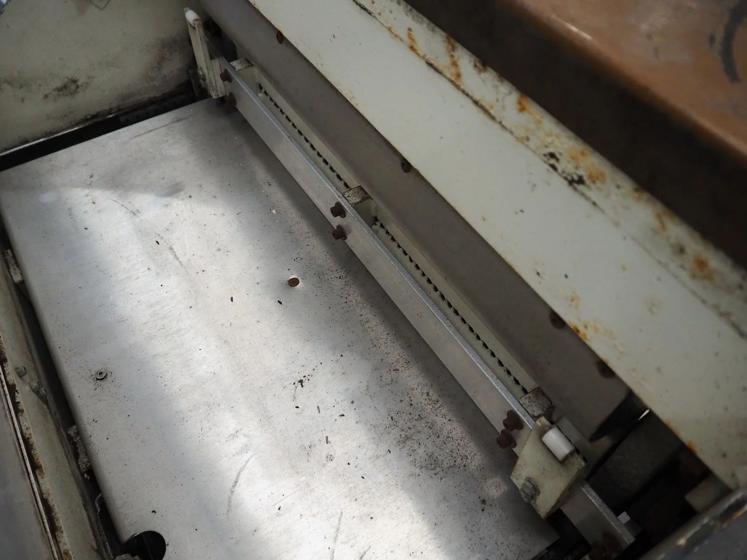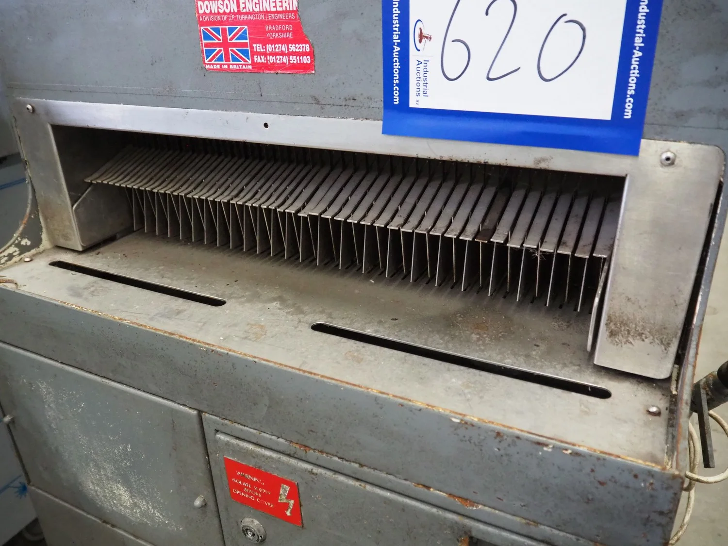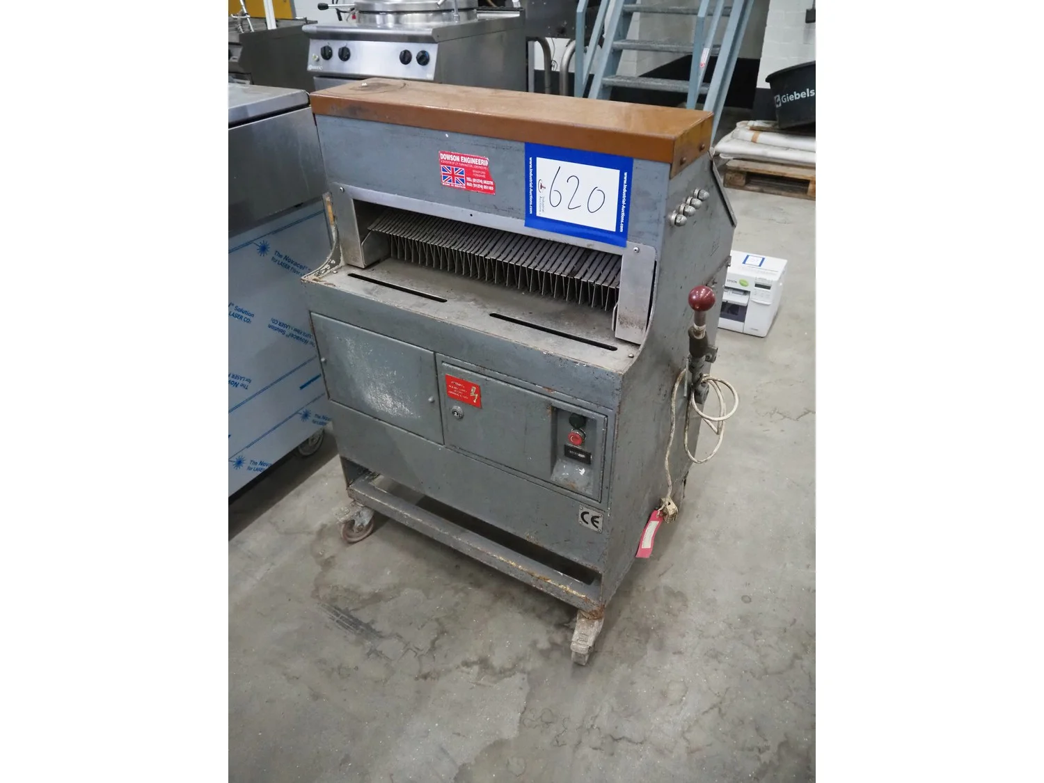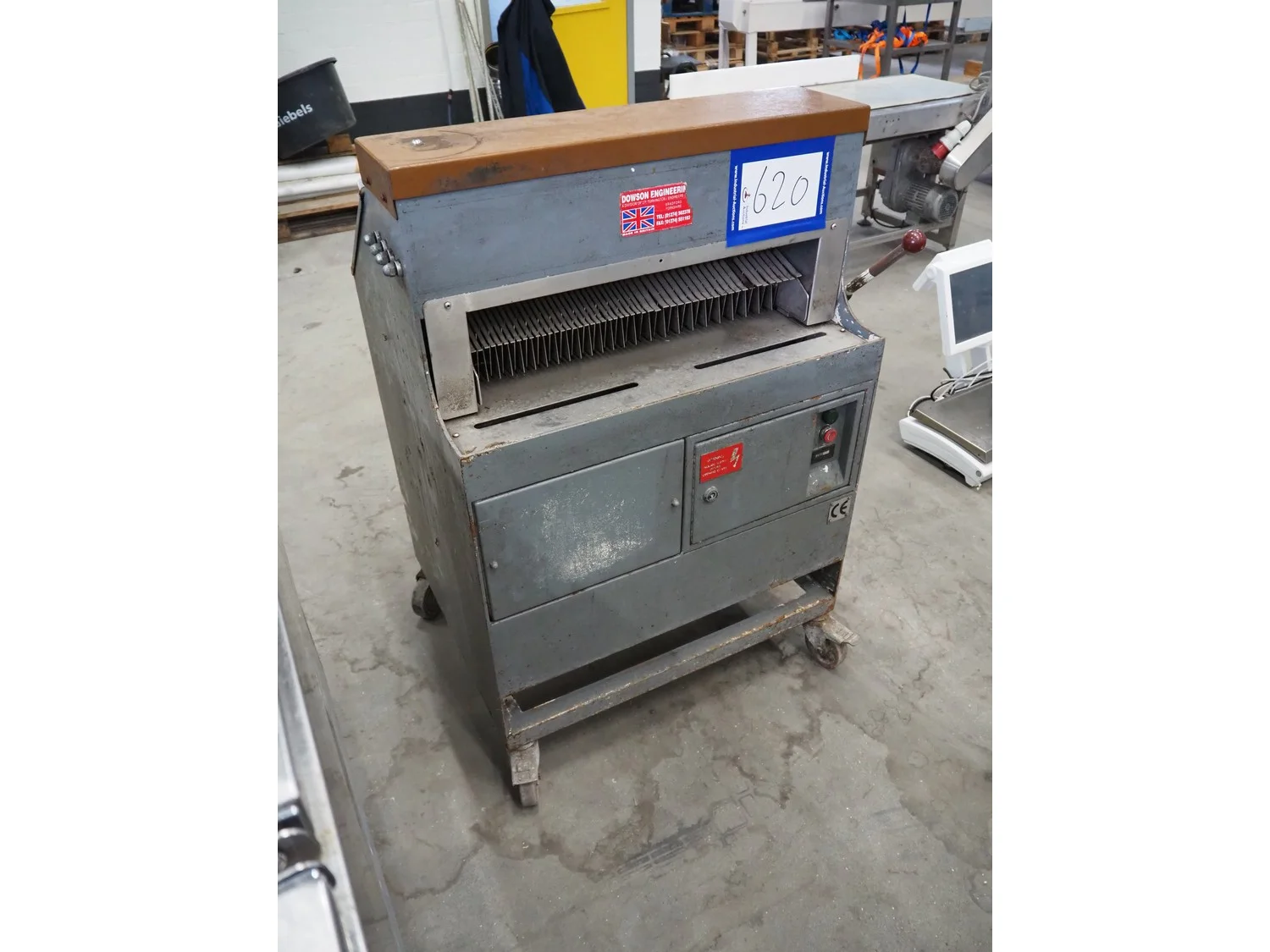 Dowson mobile bread slicer, model: D55-1, serial number: 02531096, 50 knives, distance between knives: 14 mm, total dimensions: 850 mm x 620 mm x 1120 mm.