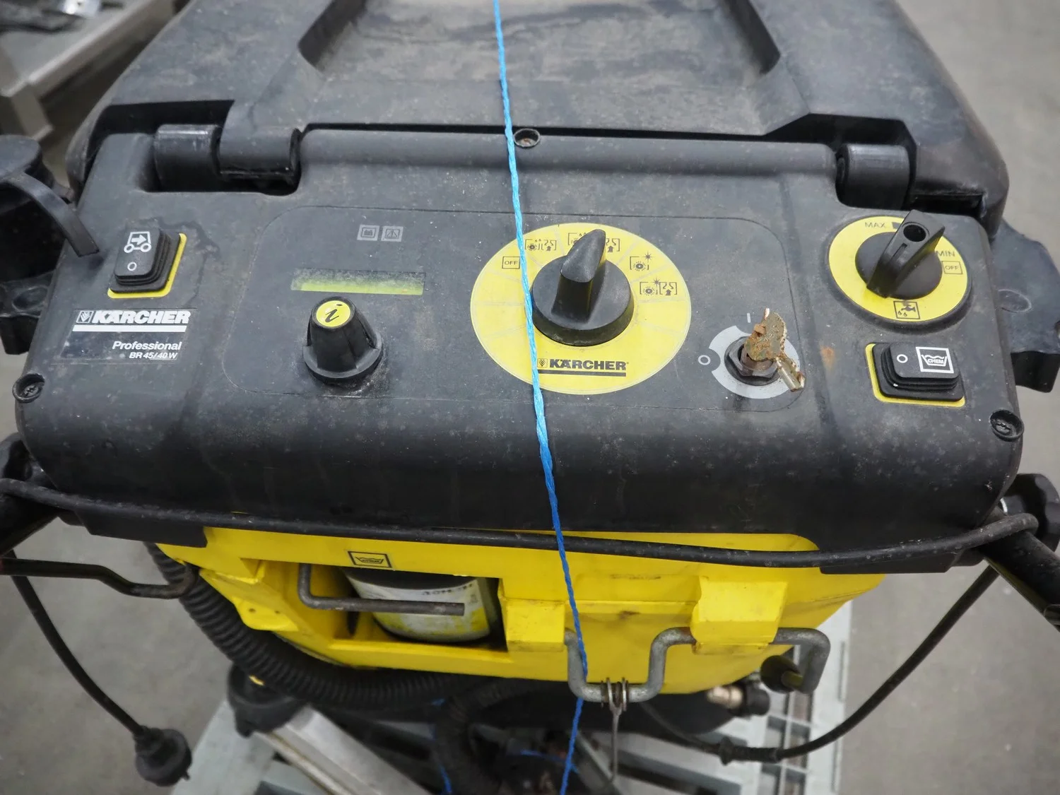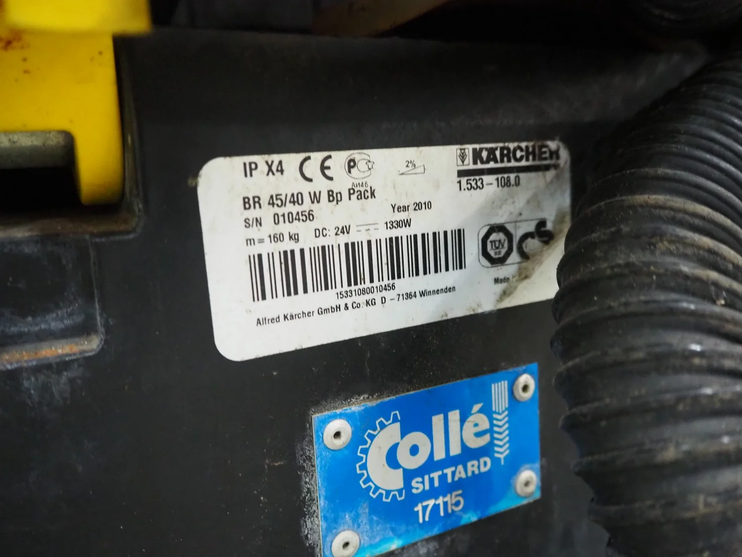 Kärcher floor scrubbing machine, type: BR 45/40 E Bp Pack, serial number: 010456, year of construction: 2010, weight: 160 kg, dimensions: 1200 mm x 800 mm x 1100 mm.