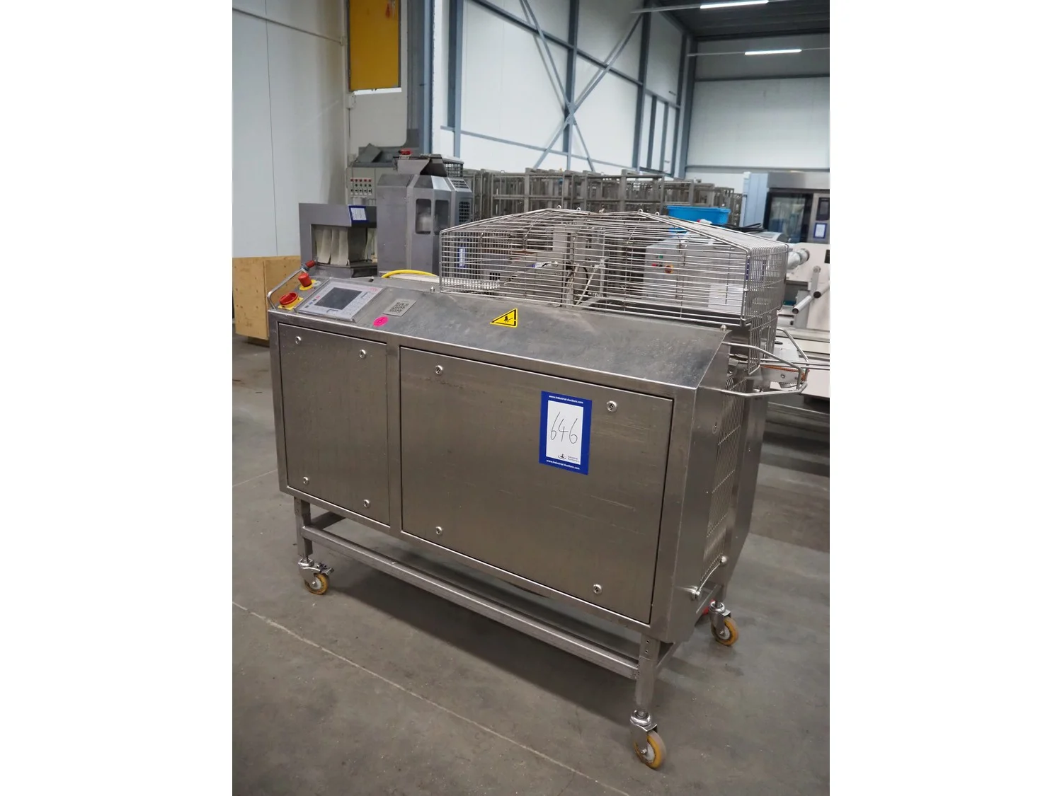 Itec mobile sausage cutter, type: SB-CUT, serial number: 0100, year of construction: 05/06, 400 V, 3 Ph, 50 Hz, 5 kW, dimensions: 1700 mm x 800 mm x 1500 mm.