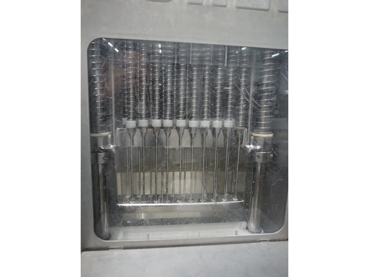Rühle injector, 20 needles, type: PR20, s/s belt, belt width: 300 mm, total dimensions: 1500 mm x 500 mm x 1700 mm.