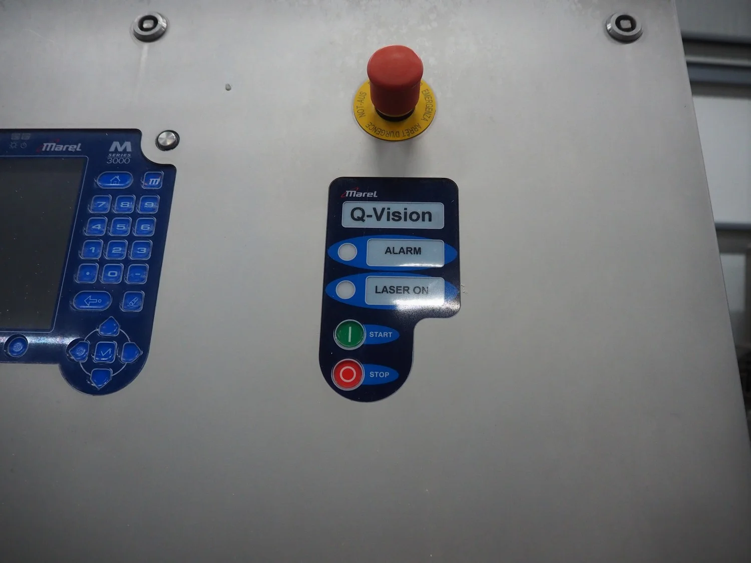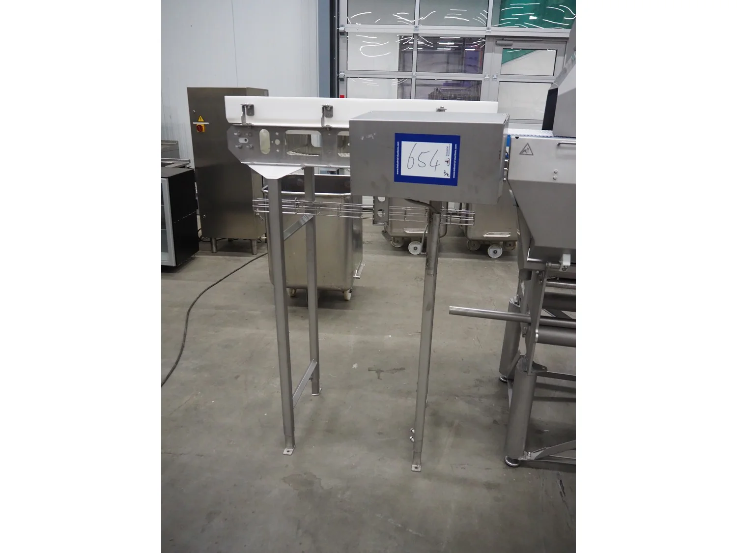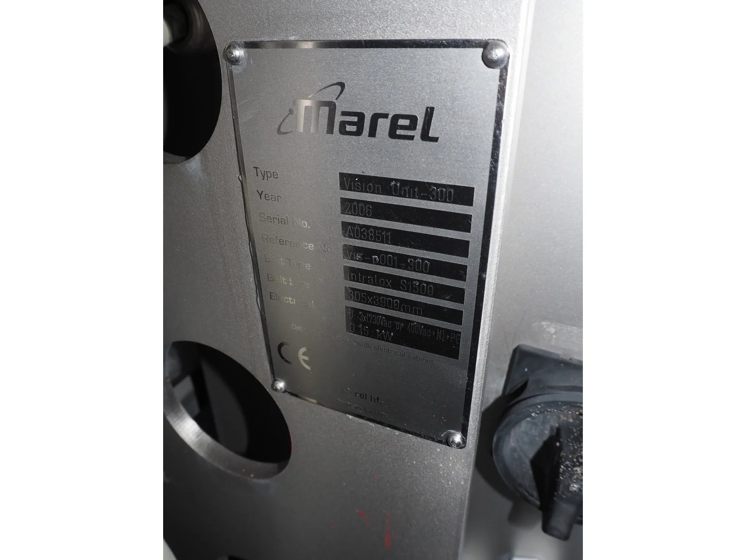 Marel grader, type: Vision Unit-300, serial number: A038511, year of construction: 2006, 230/400 V, 3 Ph, 0.15 kW, plastic mesh belt, belt width: 310 mm, total dimensions: 1750 mm x 800 mm x 2470, with Marel transport belt, type: con-mstr, serial number: A044894, year of construction: 2007, 230/400 V, 3 Ph, 0.25 kW, s/s frame, plastic mesh belt, belt width: 300 mm, total dimensions: 1050 mm x 700 mm x 1550 mm.