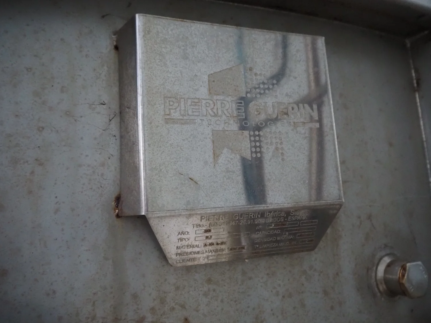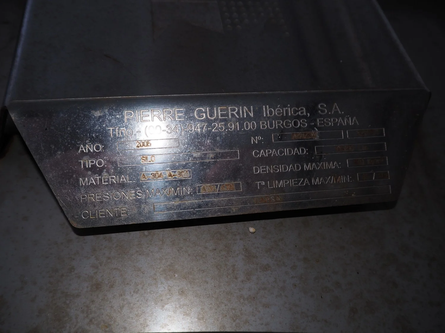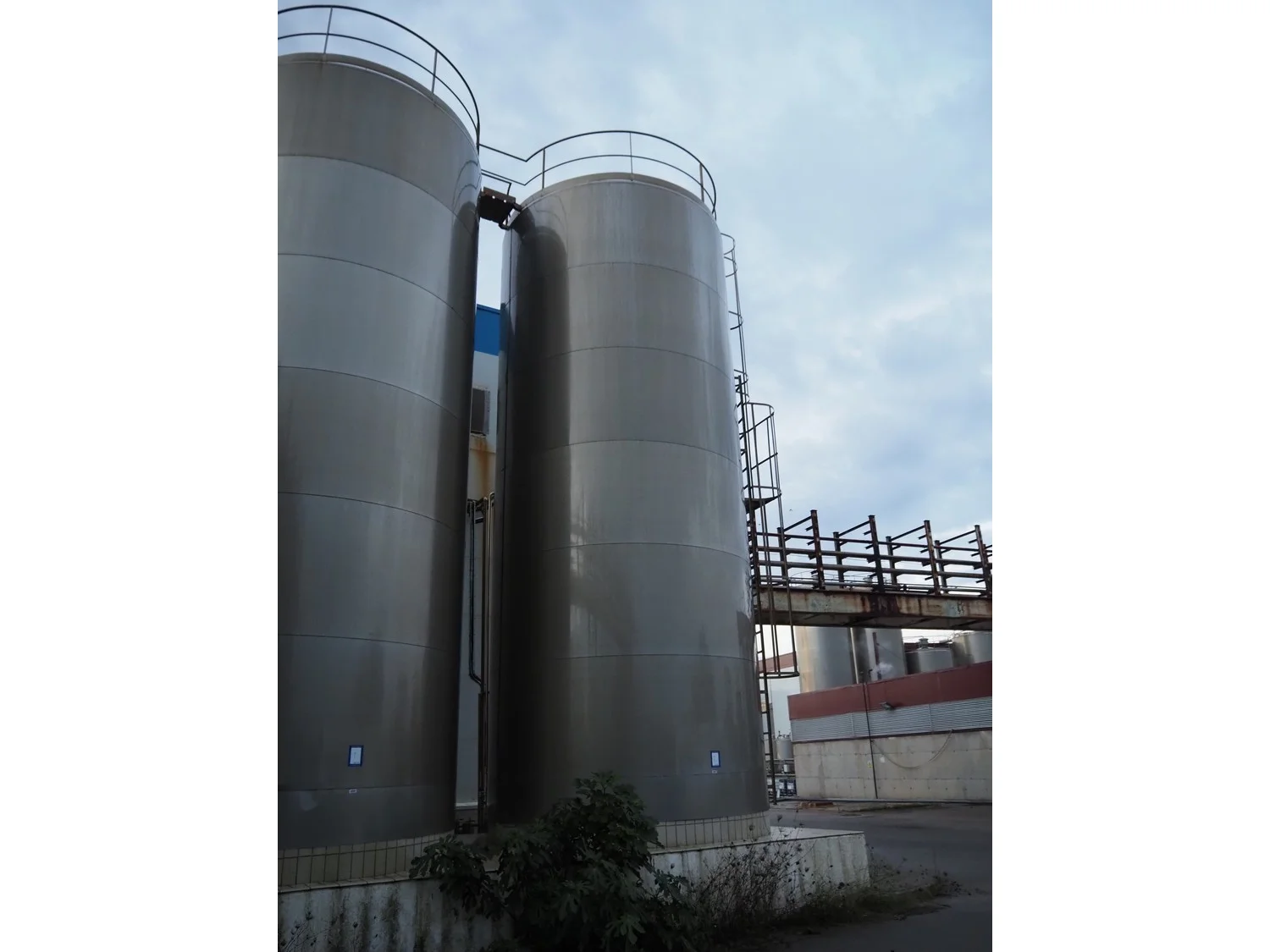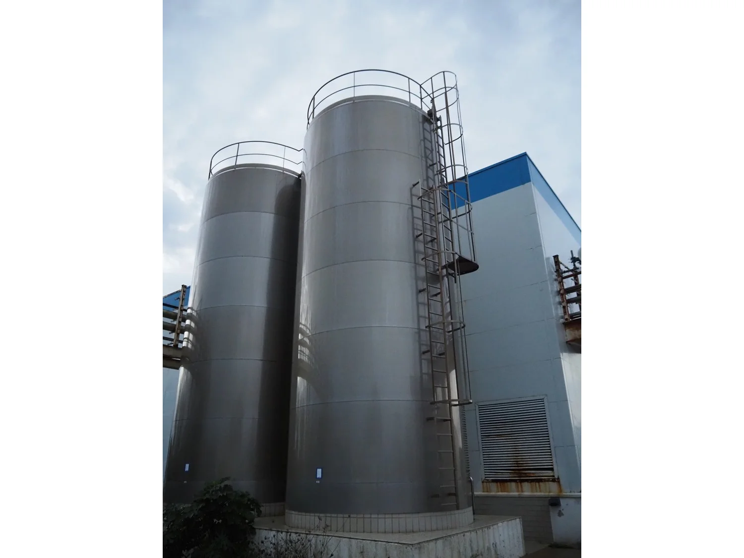 Piere Guerin Iberica S.A. s/s tank with agitator, type: SILO, year of construction: 2005, capacity: 100000 liter, double jacketed, temperature control, diameter tank: 3900 mm, height tank: 10000 mm.