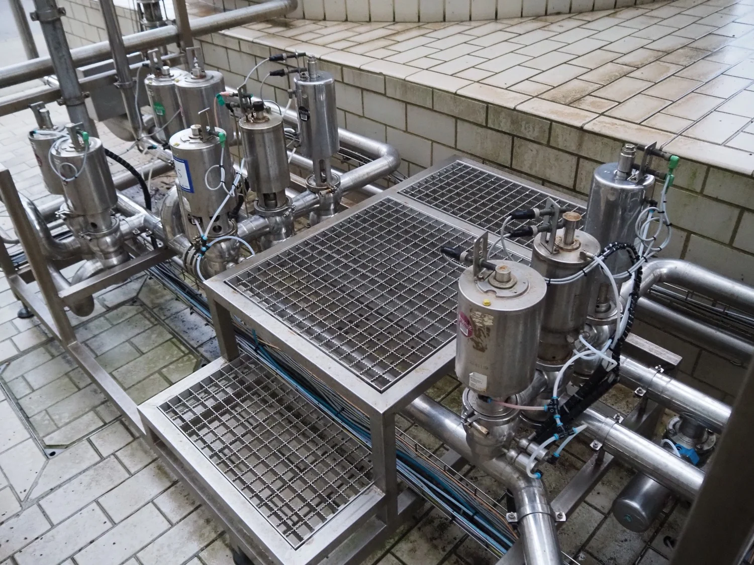Manifold with Endress+Hauser flowmeter and 10 s/s valves, type flowmeter: PROMASS 80, serial number: AB04F7072000, 600 mm x 250 mm x 350 mm.