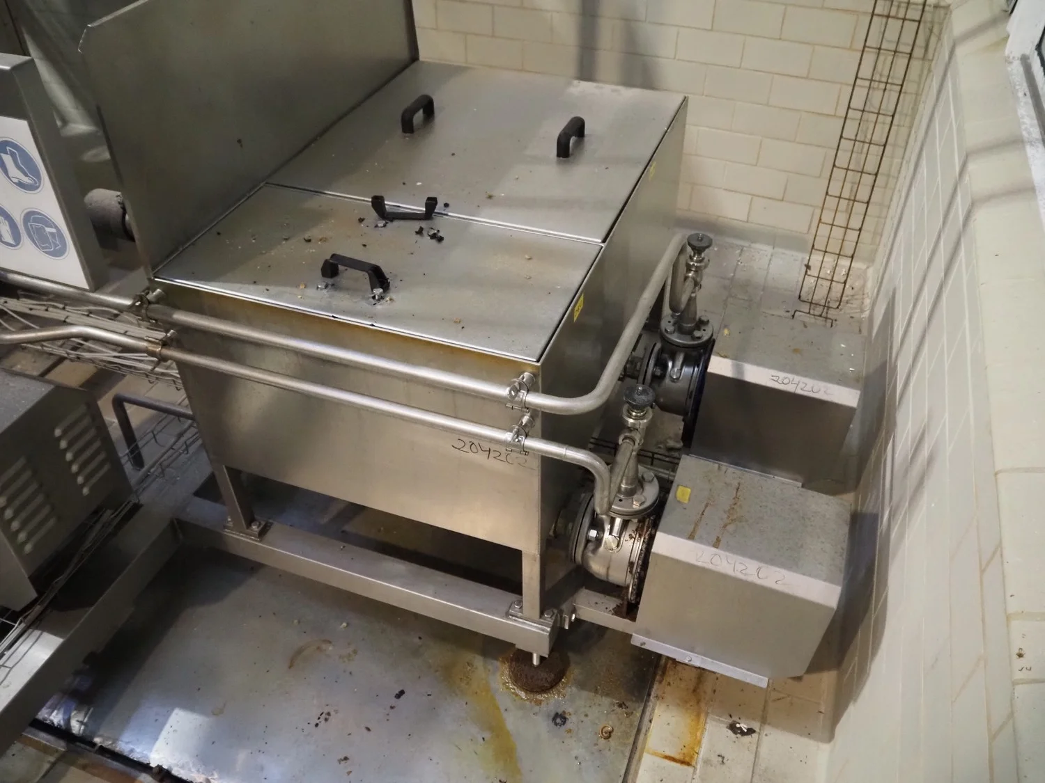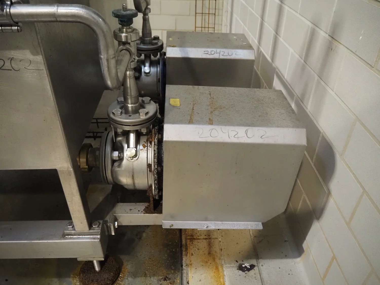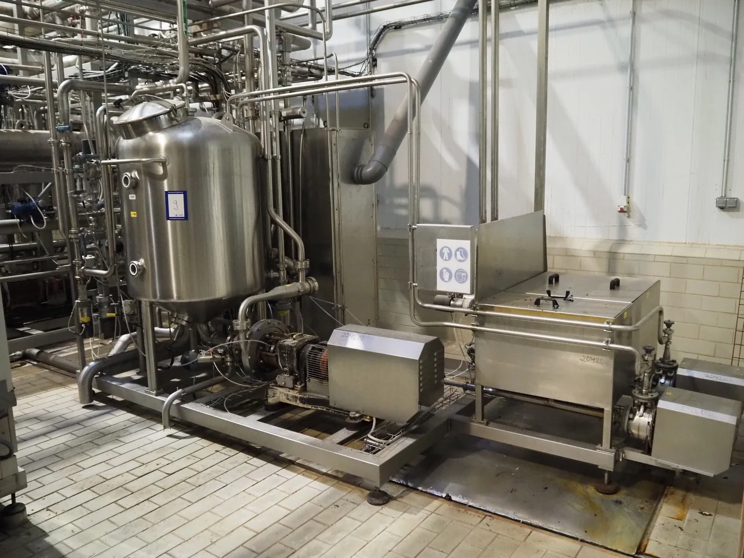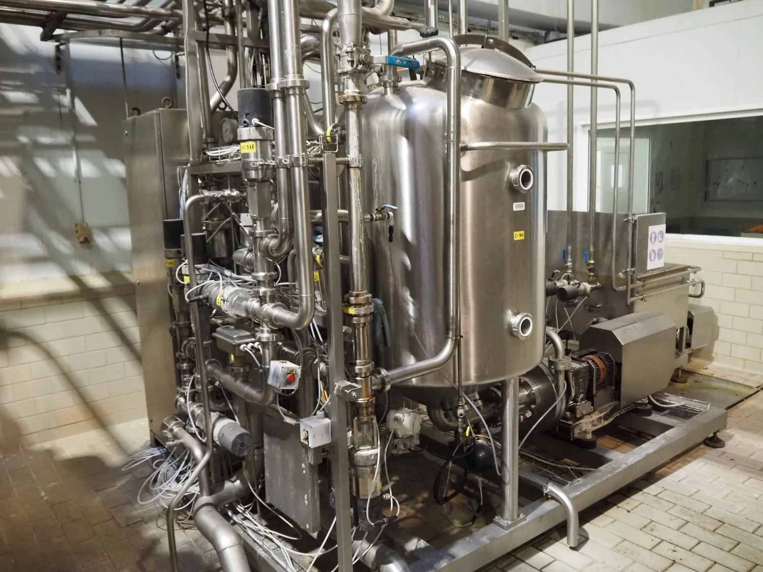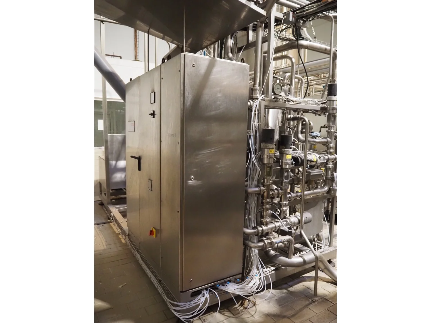 Rossi & Catelli S.p.A. pumping station with buffer tank, self modulating valves and s/s switch cabinet, total dimensions: 4600 mm x 2300 mm x 3000 mm.