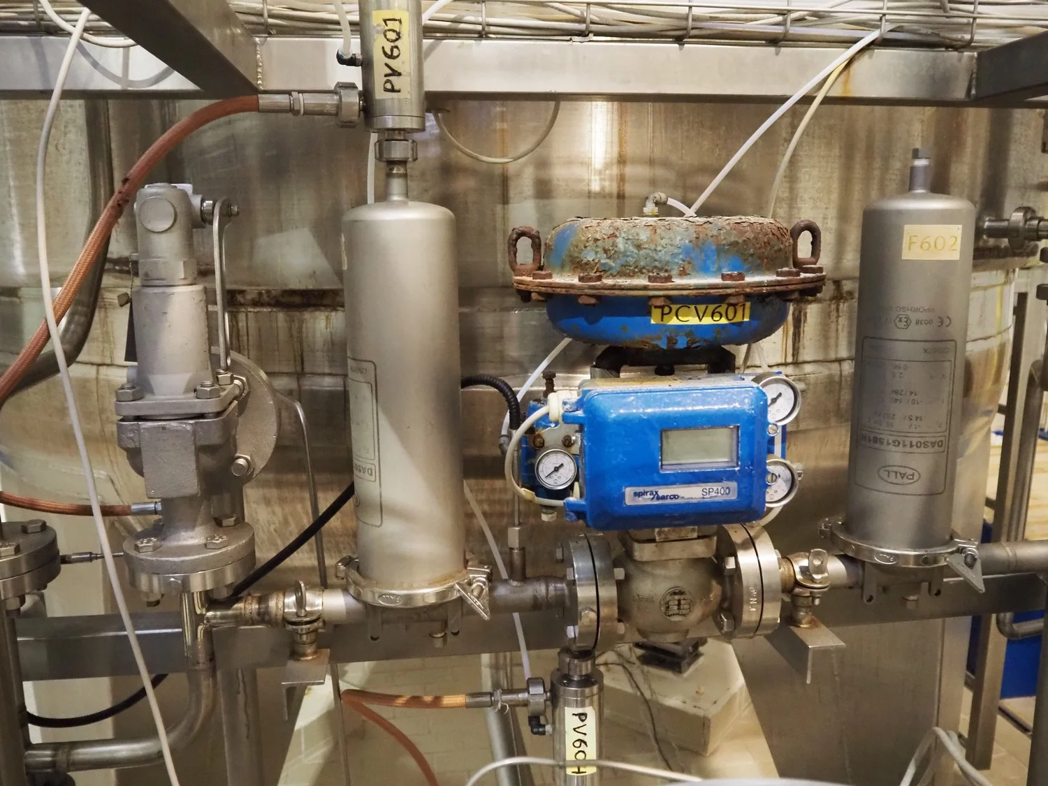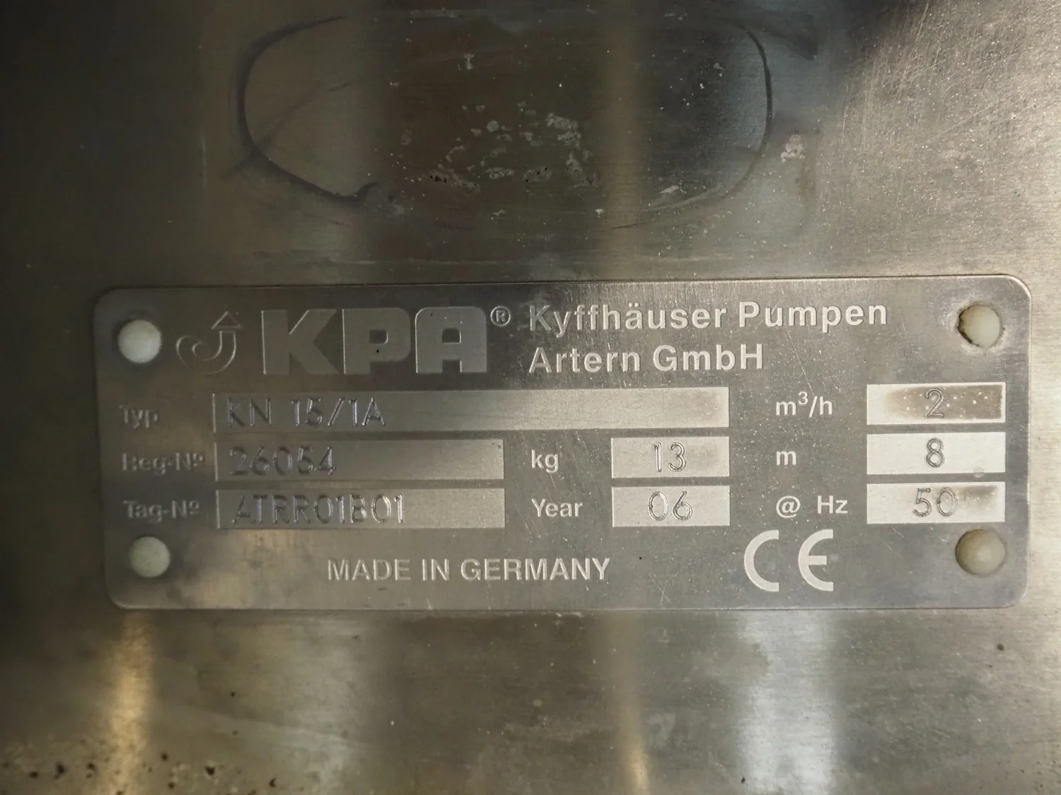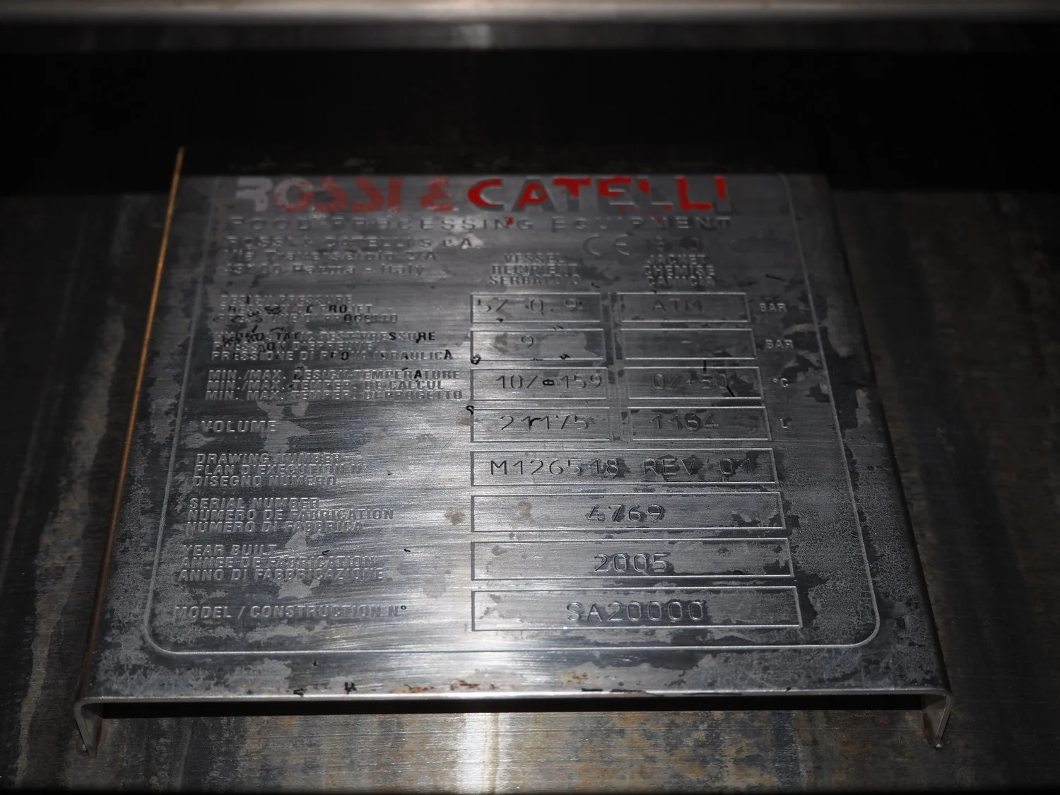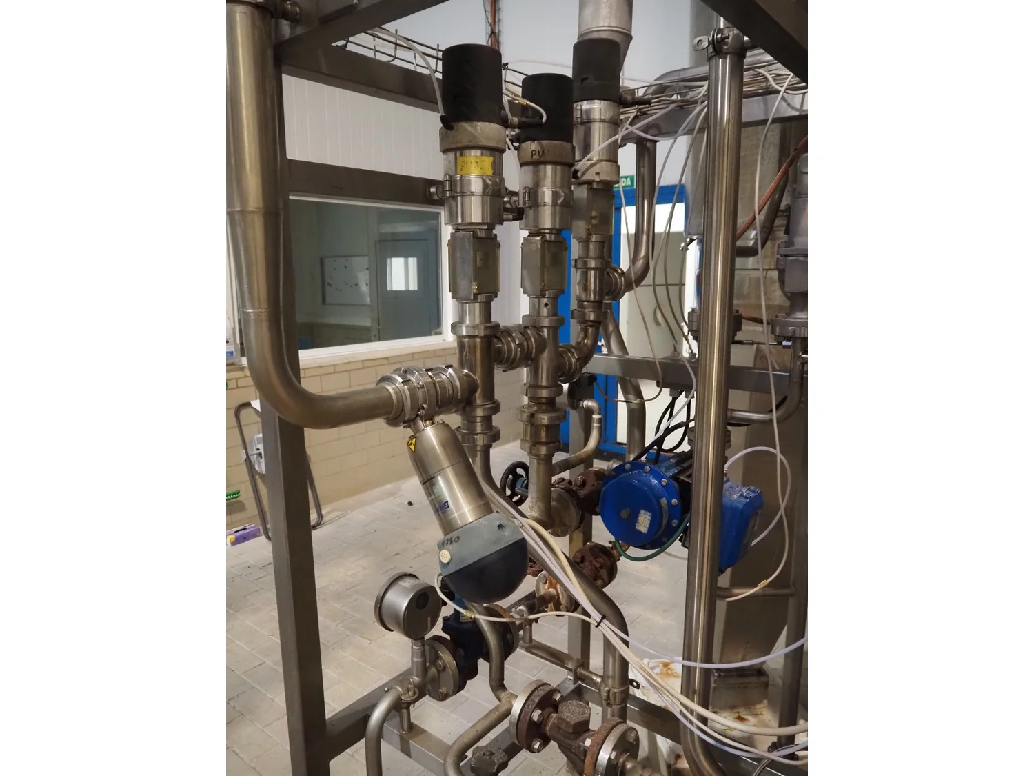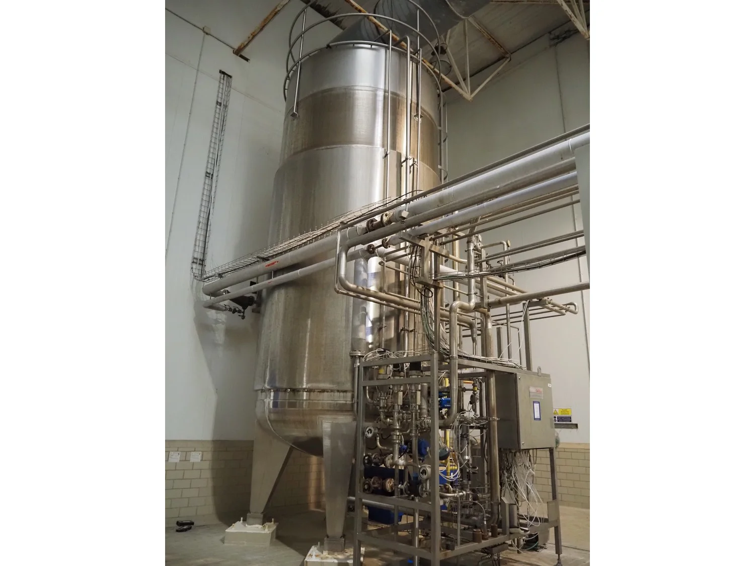 Rossi & Catelli S.p.A. aseptic tank, model: SA20000, serial number: 4769, year of construction: 2005, double jacketed, capacity: 20000 liter, with aseptic valves, centrifugal pump and s/s switch cabinet, diameter tank: 3250 mm, height tank: 6000 mm.
