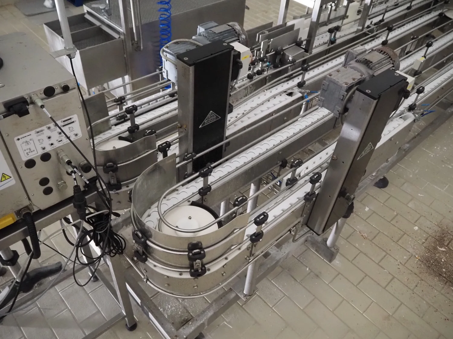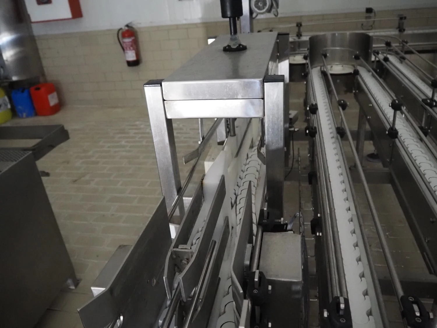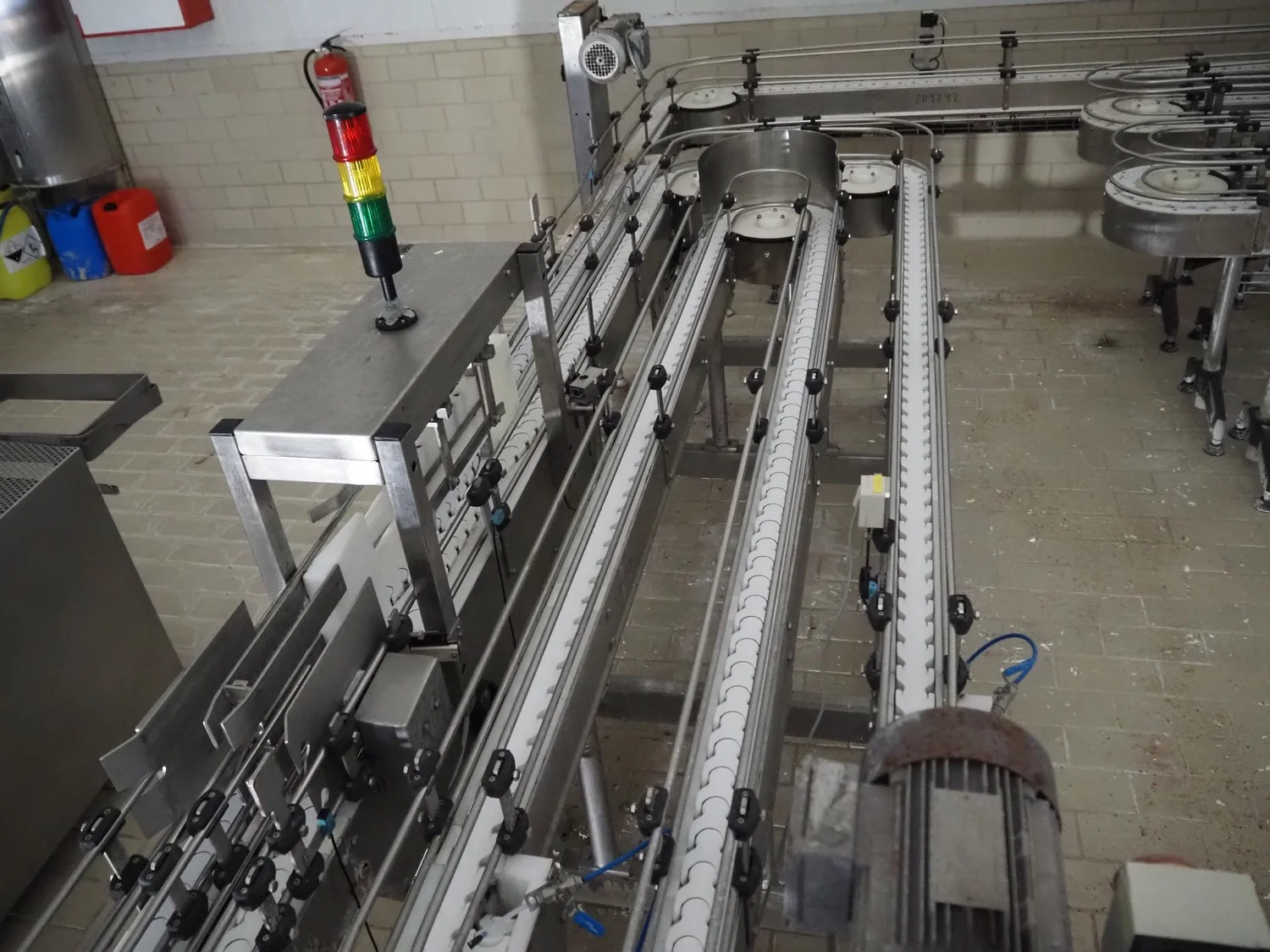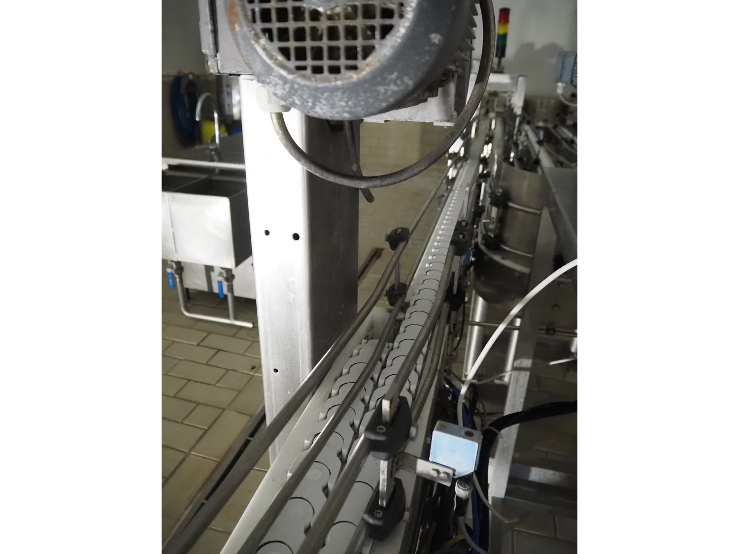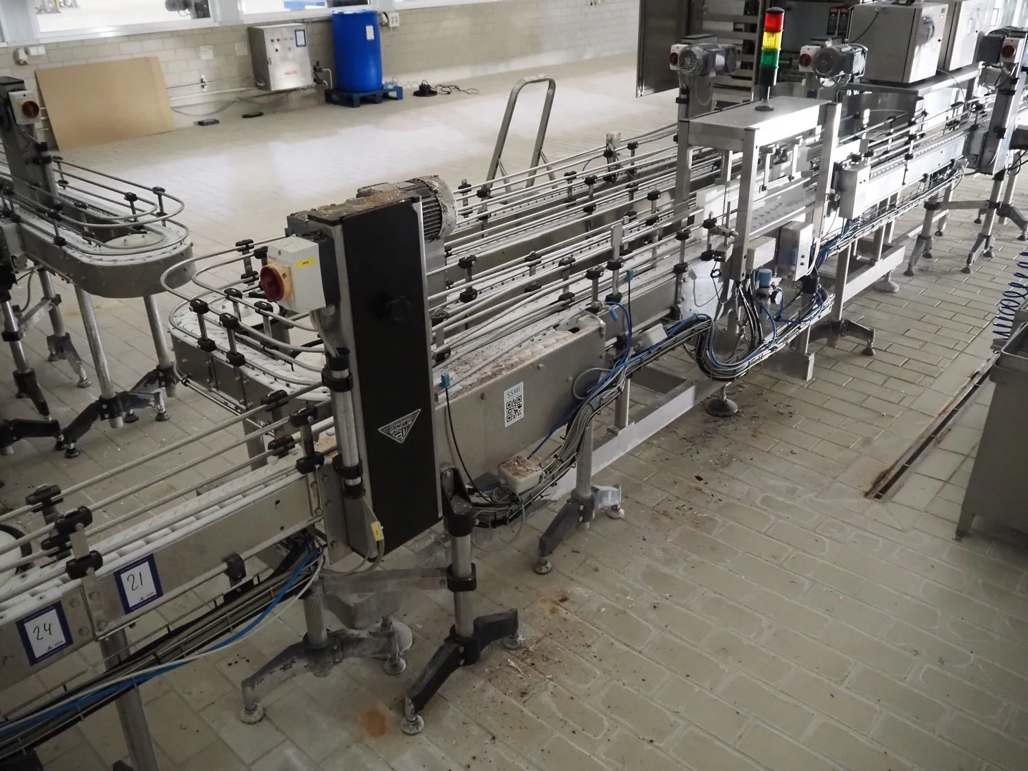 Emebe accumulation conveyors, s/s frame, plastic belt, belt width: 70 mm, total dimensions: 8200 mm x 1500 mm x 1650 mm.