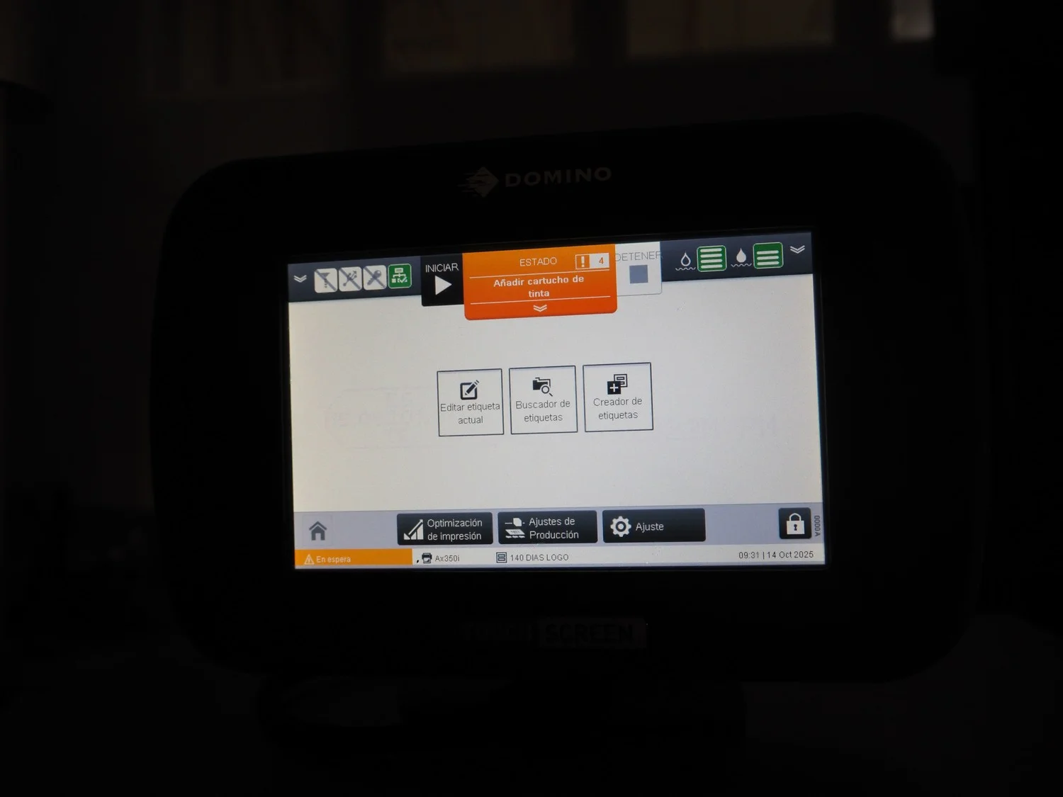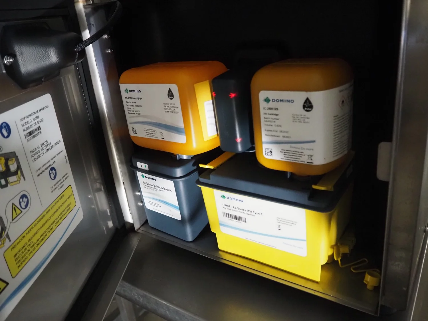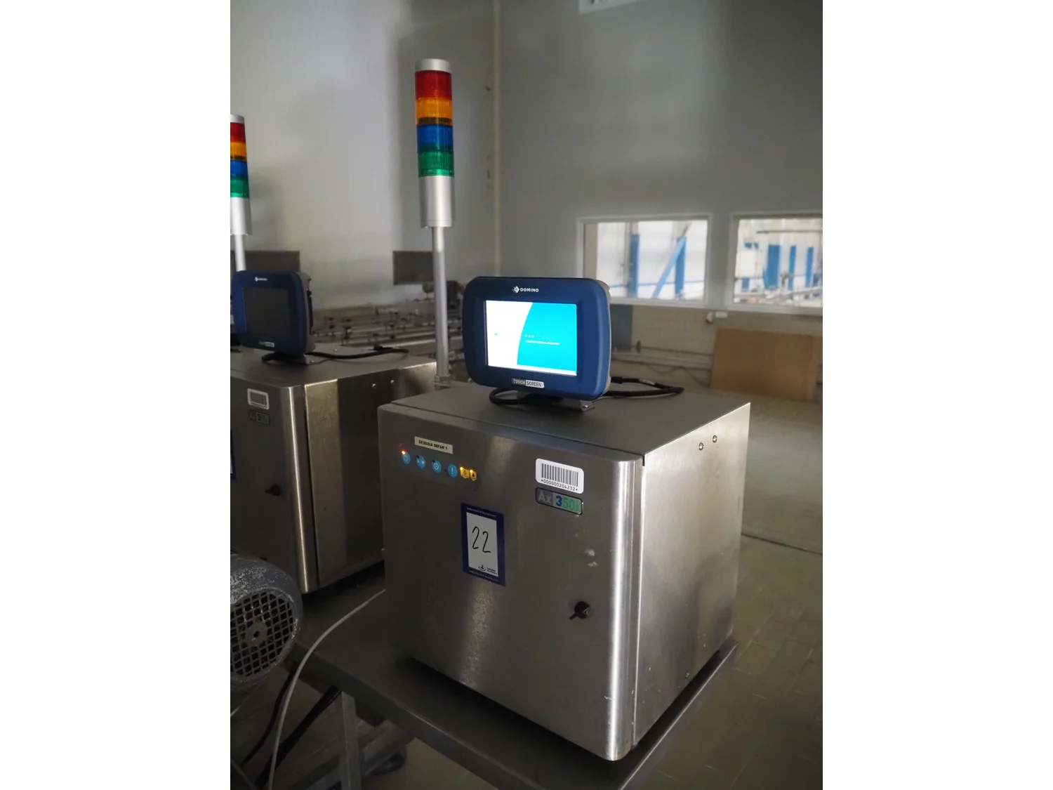 Domino inkjet printer, model: Ax350i, serial number: AX0000033736, year of construction: 2016, 100-240 V, 50-60 Hz, 4 A, dimensions: 500 mm x 450 mm x 950 mm.