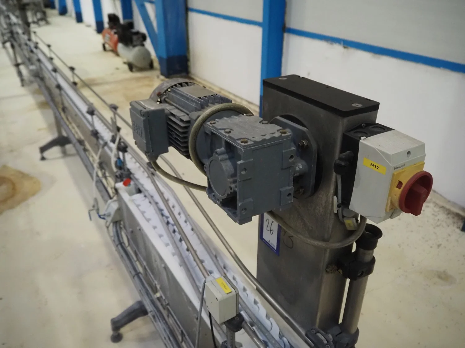 Emebe transport belt, s/s frame, plastic belt, belt width: 70 mm, total length: 6700 mm.