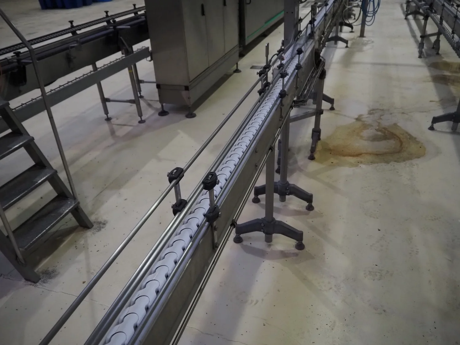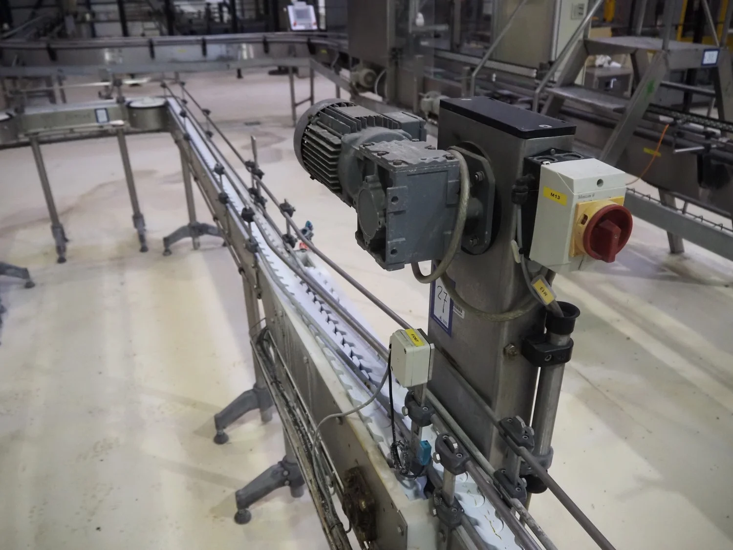 Emebe transport belt, s/s frame, plastic belt, belt width: 70 mm, total length: 11500 mm.