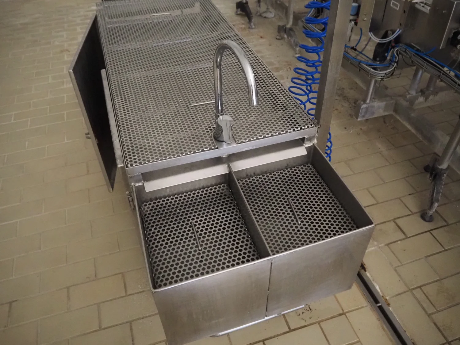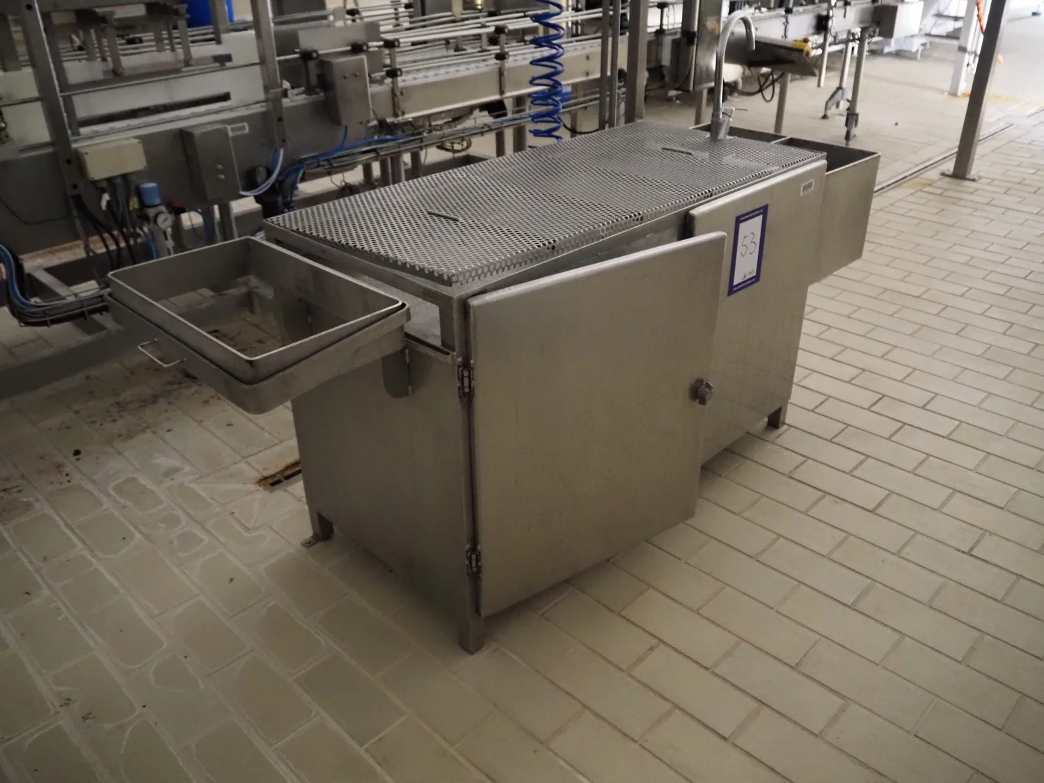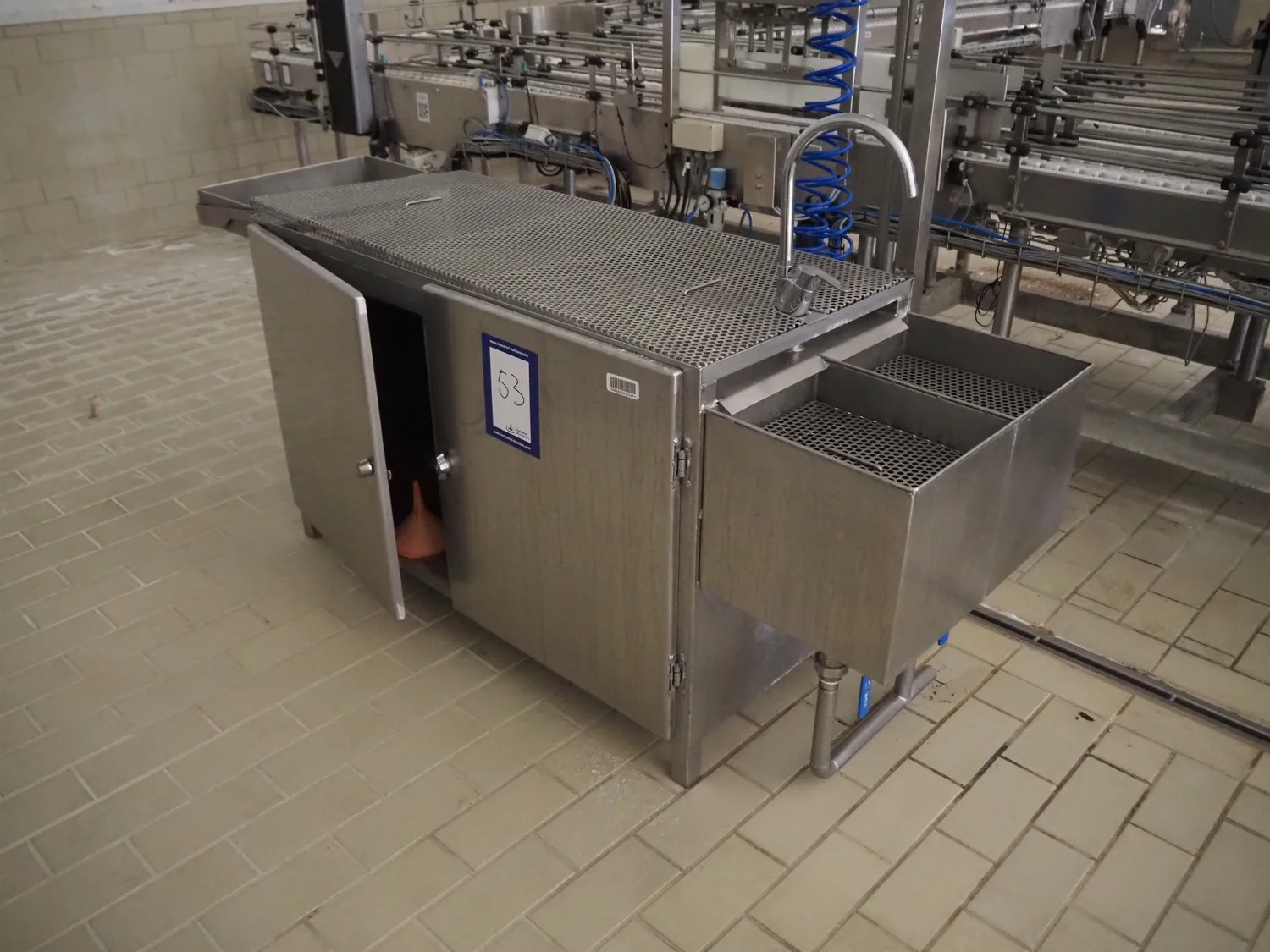 S/s cabinet with faucet, dimensions: 2500 mm x 800 mm x 1500 mm.