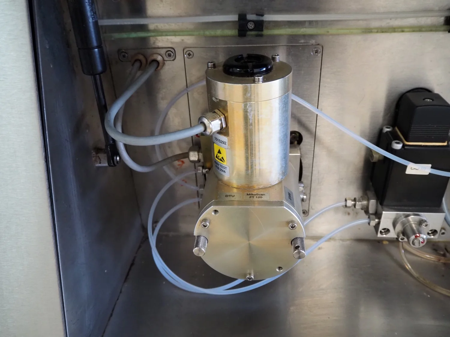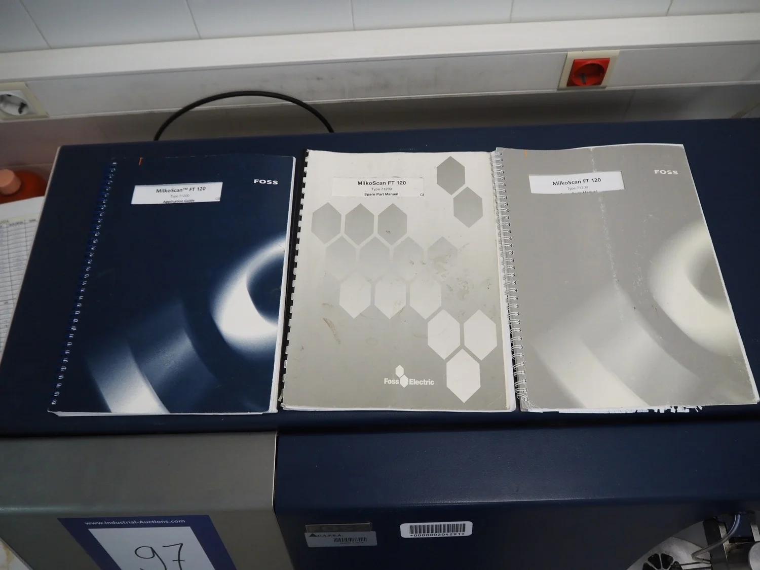 Foss Analytical A/S milk analyser, model: MilkoScan FT 120, type: 71210, serial number: 0212200407, 110-120/220-240 V, 50-60 Hz, 600 VA, dimensions: 850 mm x 480 mm x 500 mm.