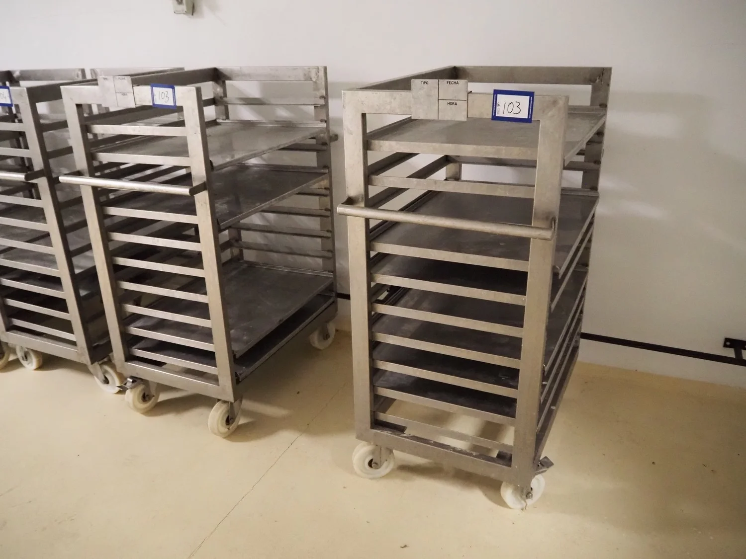 2 s/s trolleys, 10 floors each, dimensions: (2x) 1050 mm x 600 mm x 1350 mm.