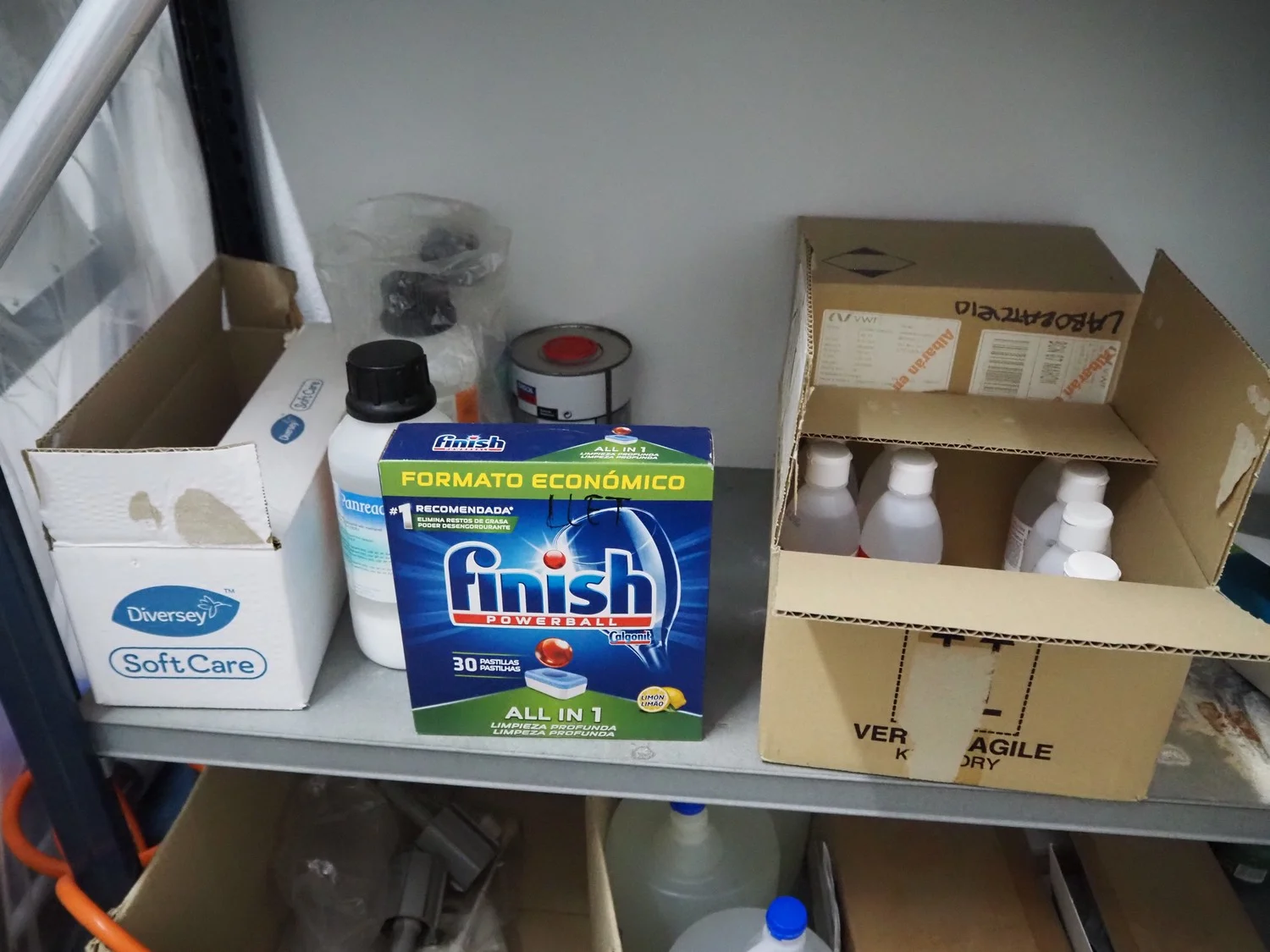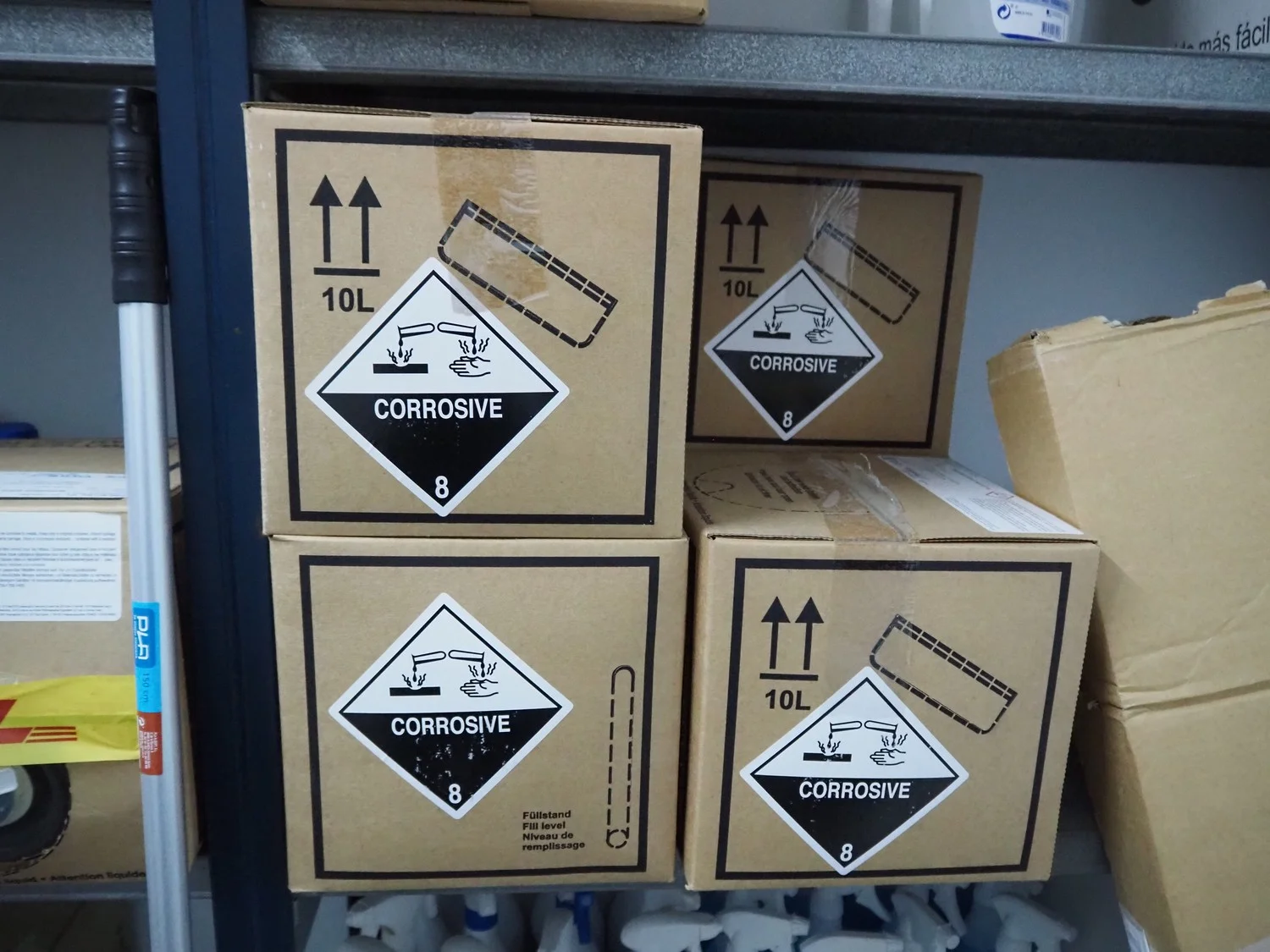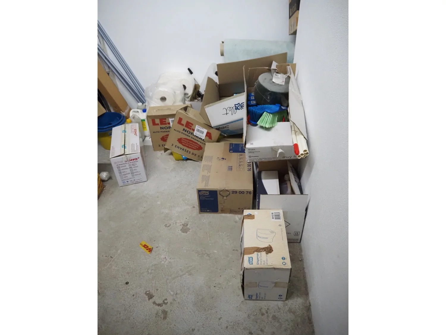 Steel rack with large amount of various cleaning equipment, dimensions rack: 2050 mm x 430 mm x 1970 mm.