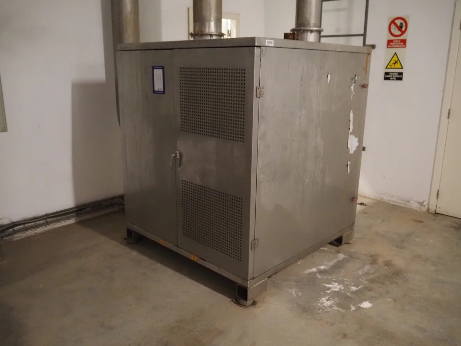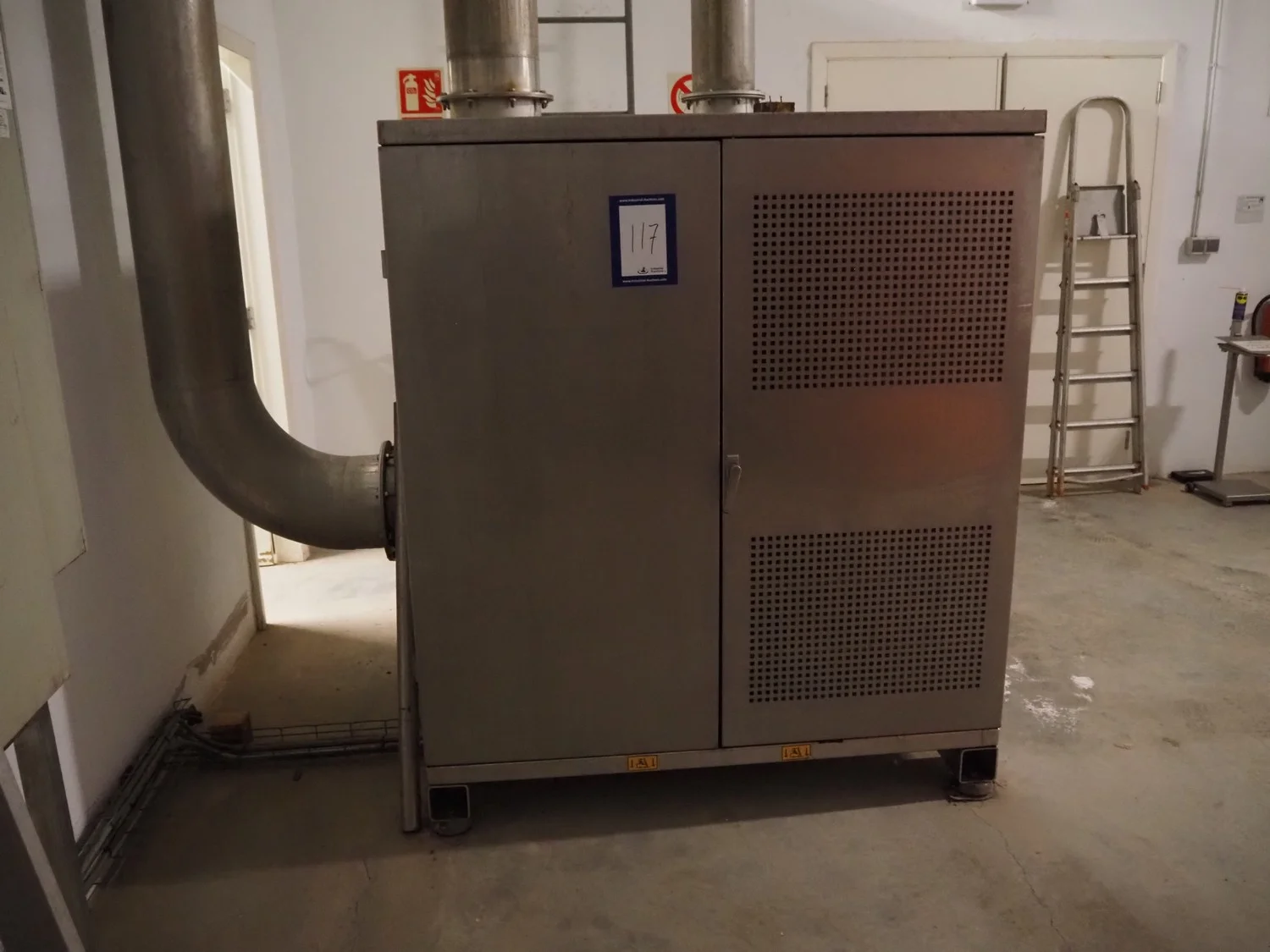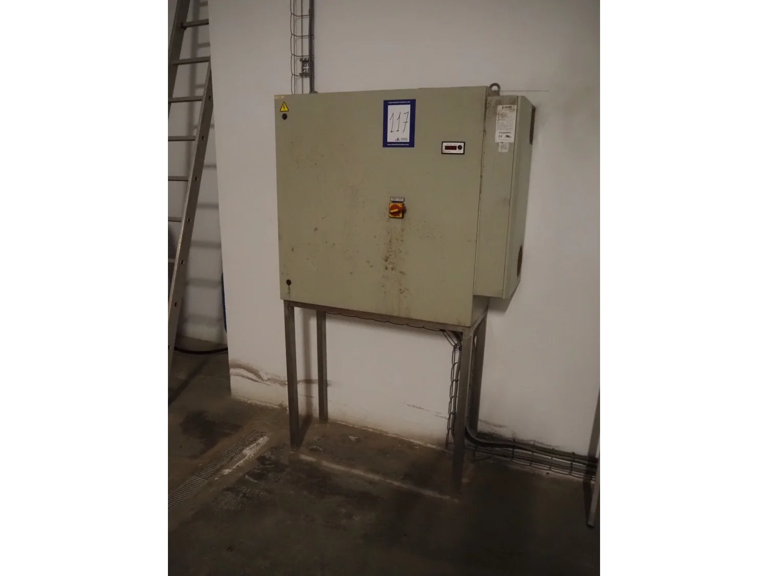 Technik GmbH air purifier, fabrication number: 7650-03, year of construction: 2005, capacity: 2484/3492 m³ per hour, 15/5.5 kW, dimensions: 1450 mm x 1500 mm x 1800 mm, steel switch cabinet, dimensions: 1150 mm x 410 mm x 1900 mm.