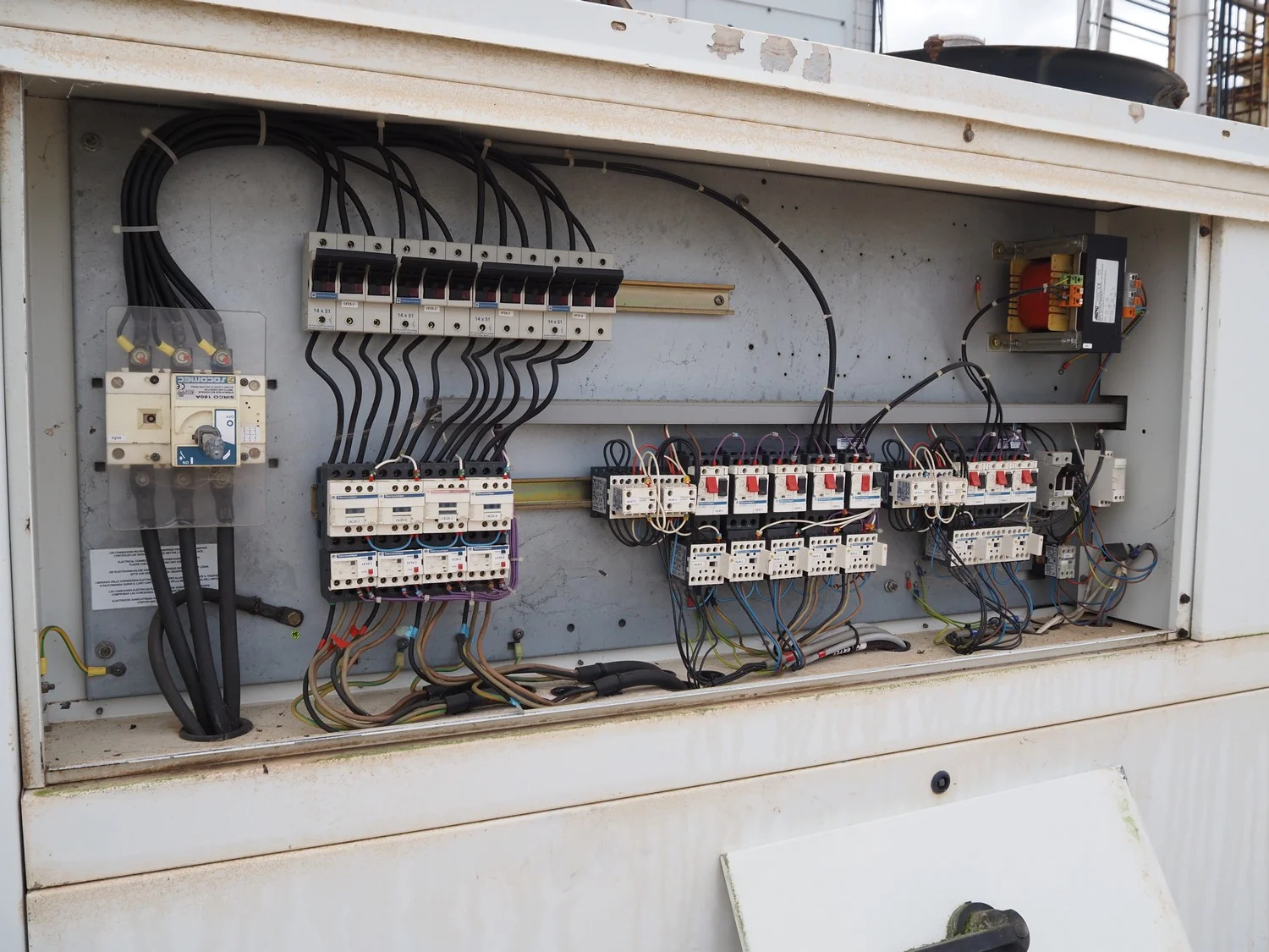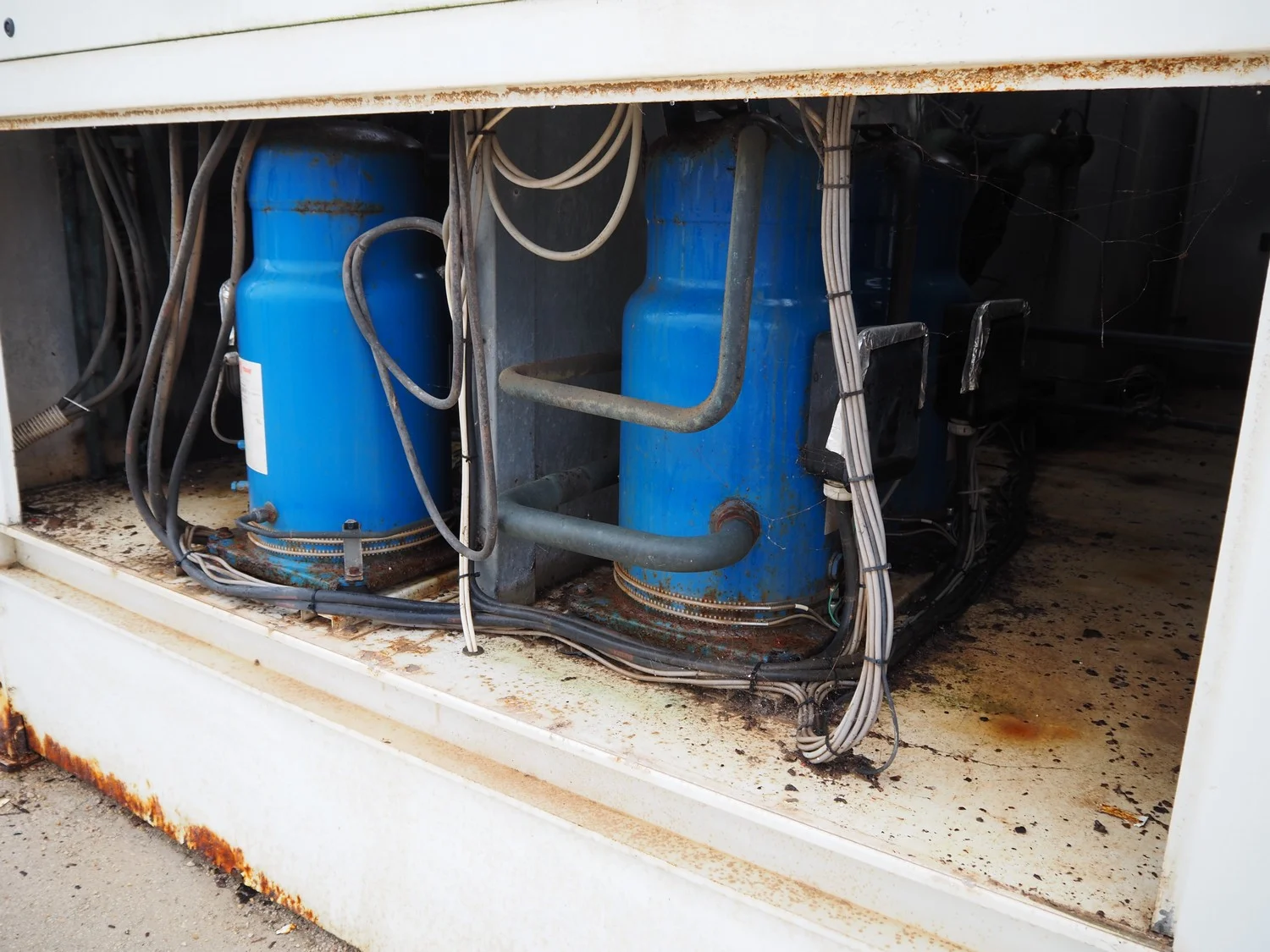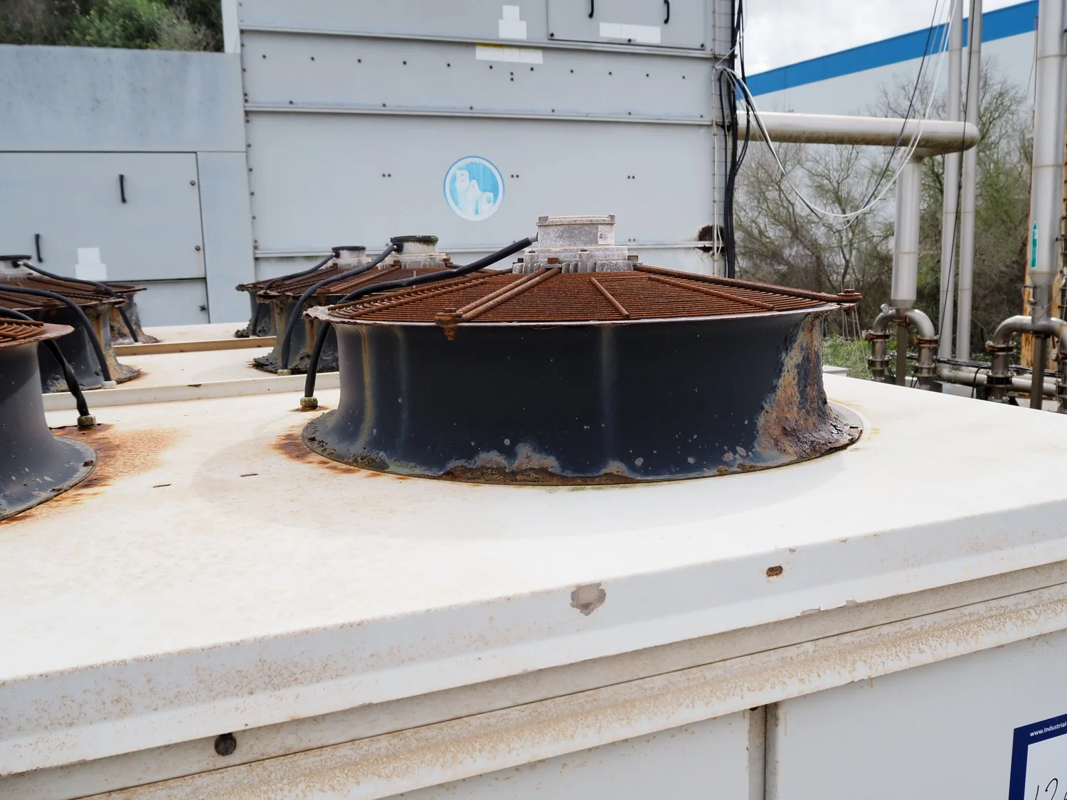 Trane water chiller, type: 317191-1, serial number: 0355873, year of construction: 2006, 400 V, 3 Ph, 50 Hz, 60 A, 36 kW, refrigerant: R407C, dimensions: 3400 mm x 2300 mm x 2200 mm.