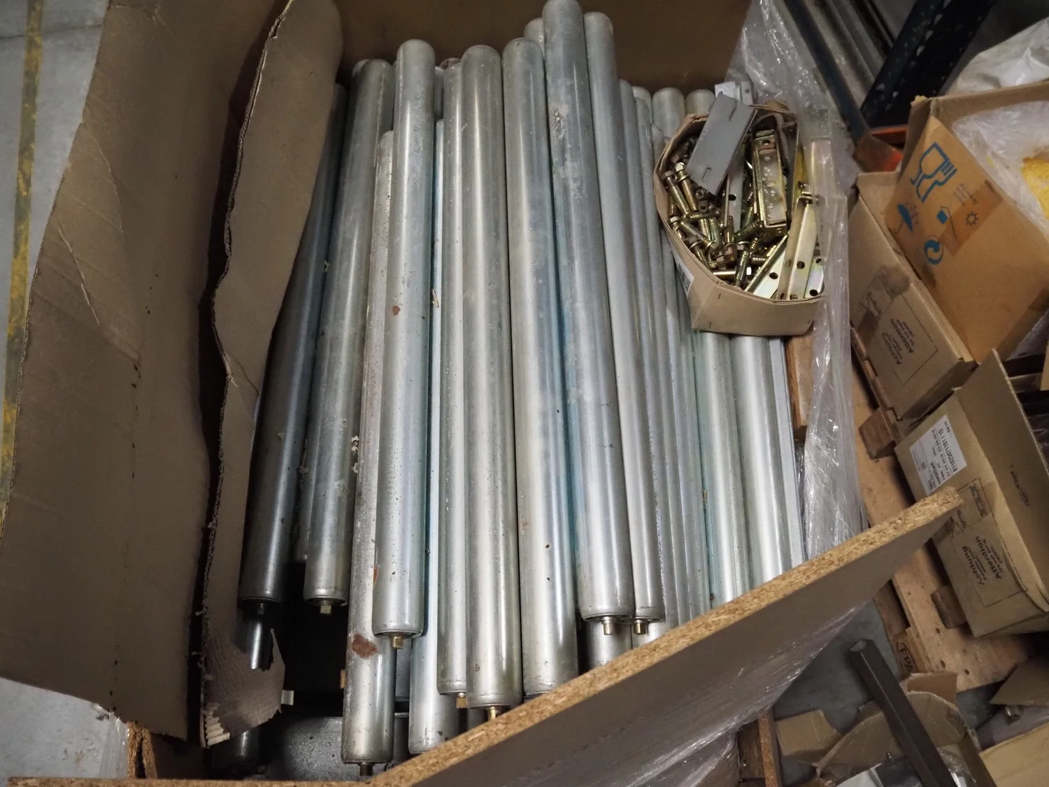 Pallet with steel rollers used for pallet racks.
