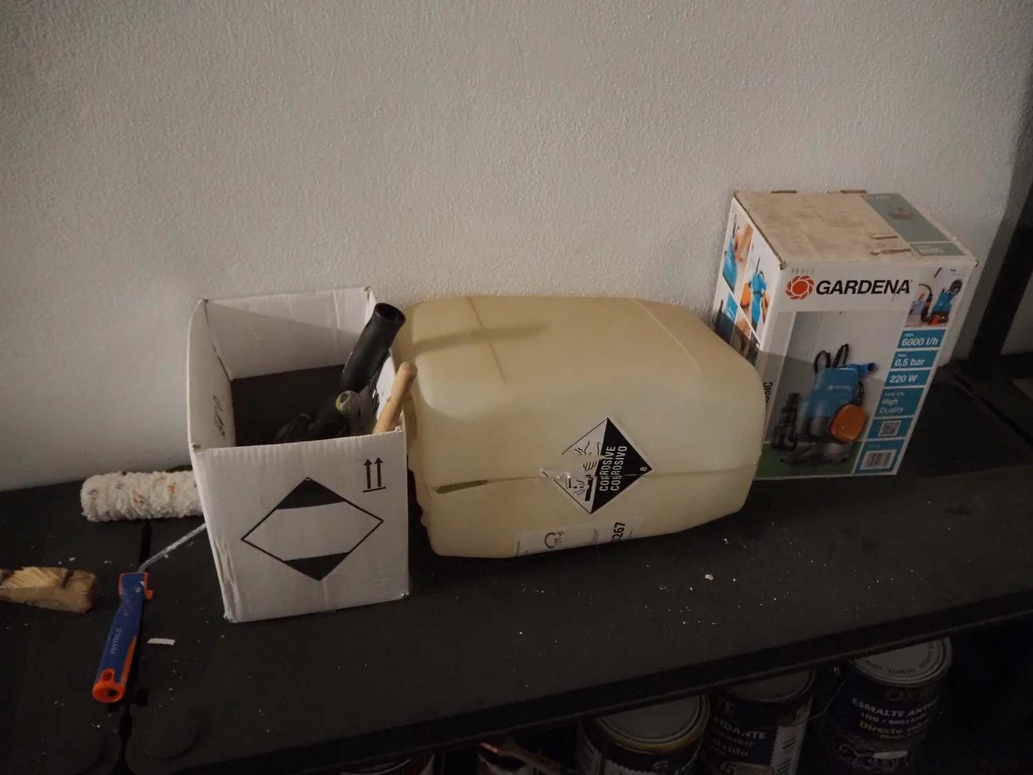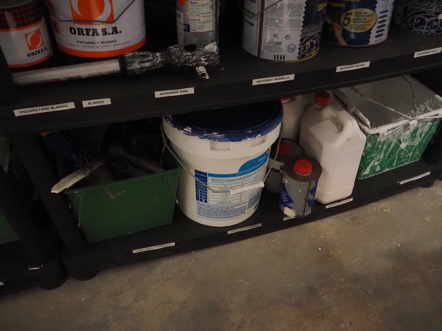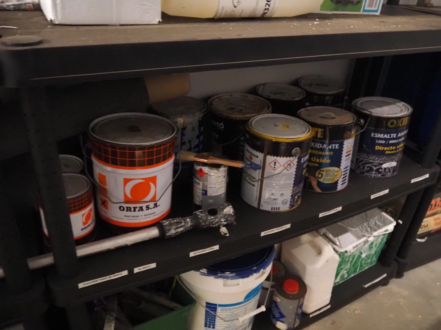 Plastic rack with various paintures, dimensions rack: 3600 mm x 450 mm x 1600 mm.