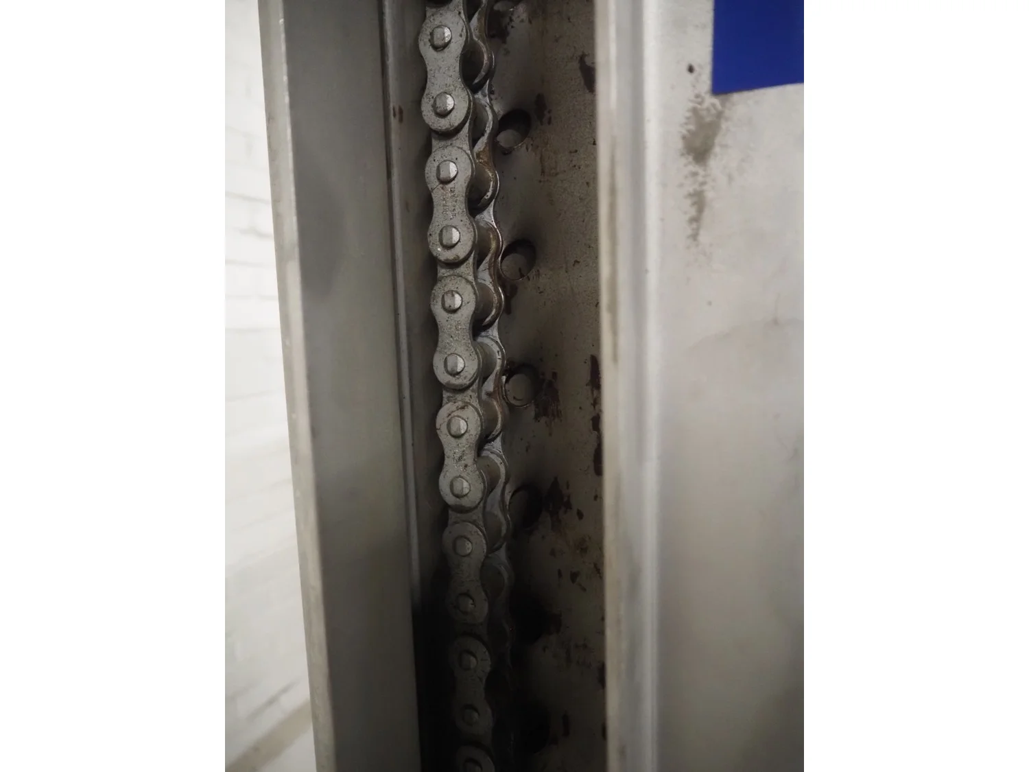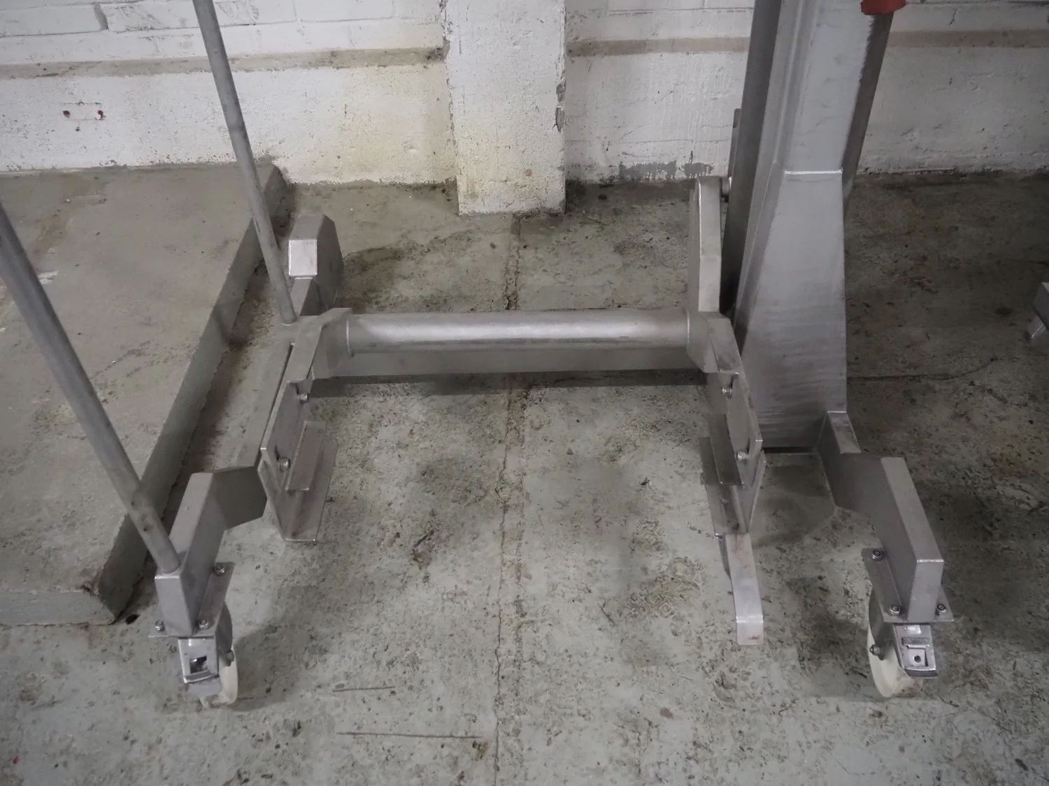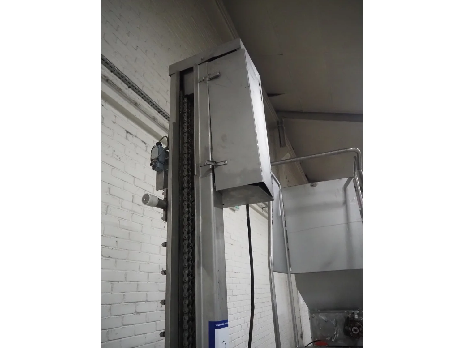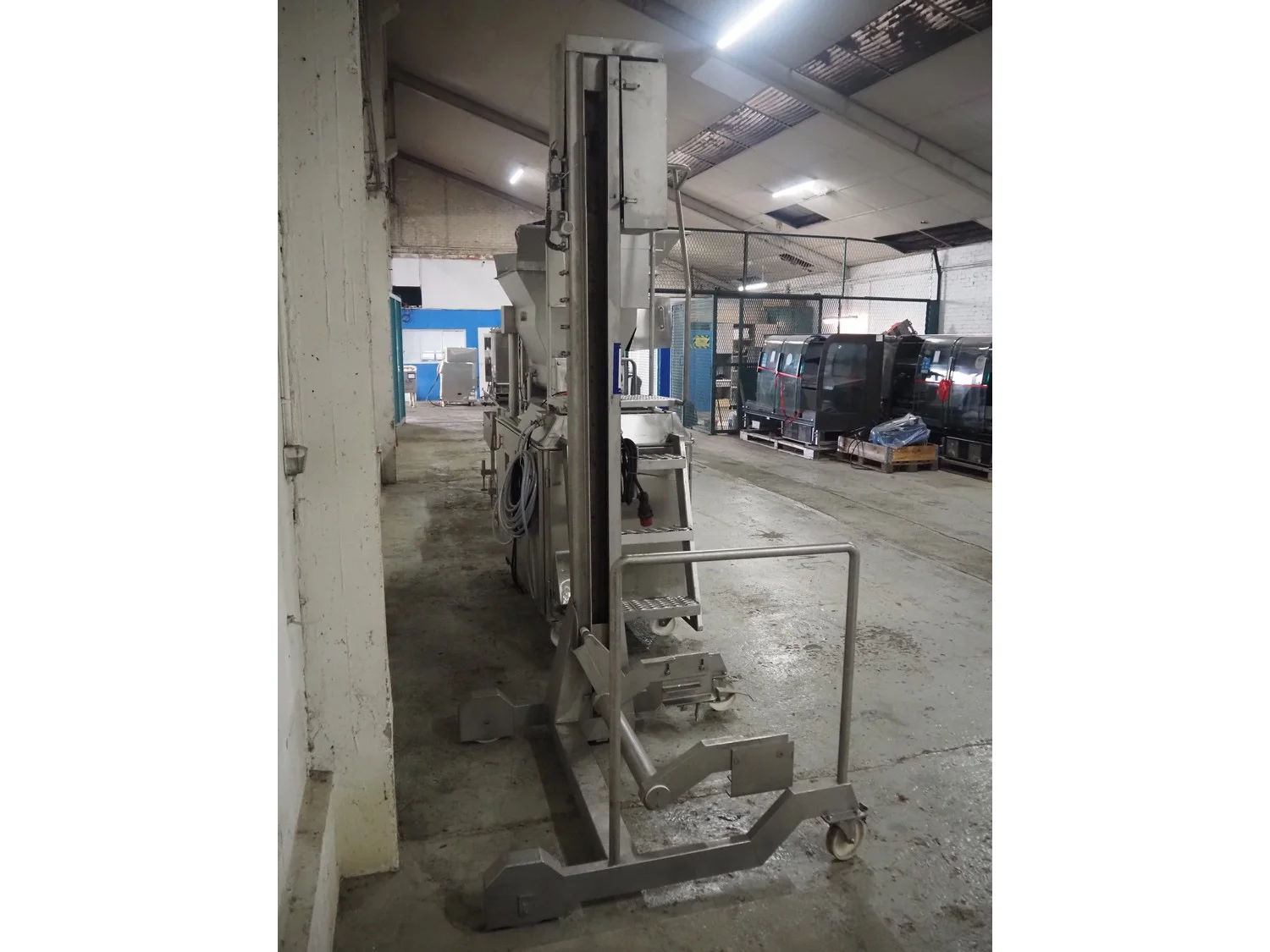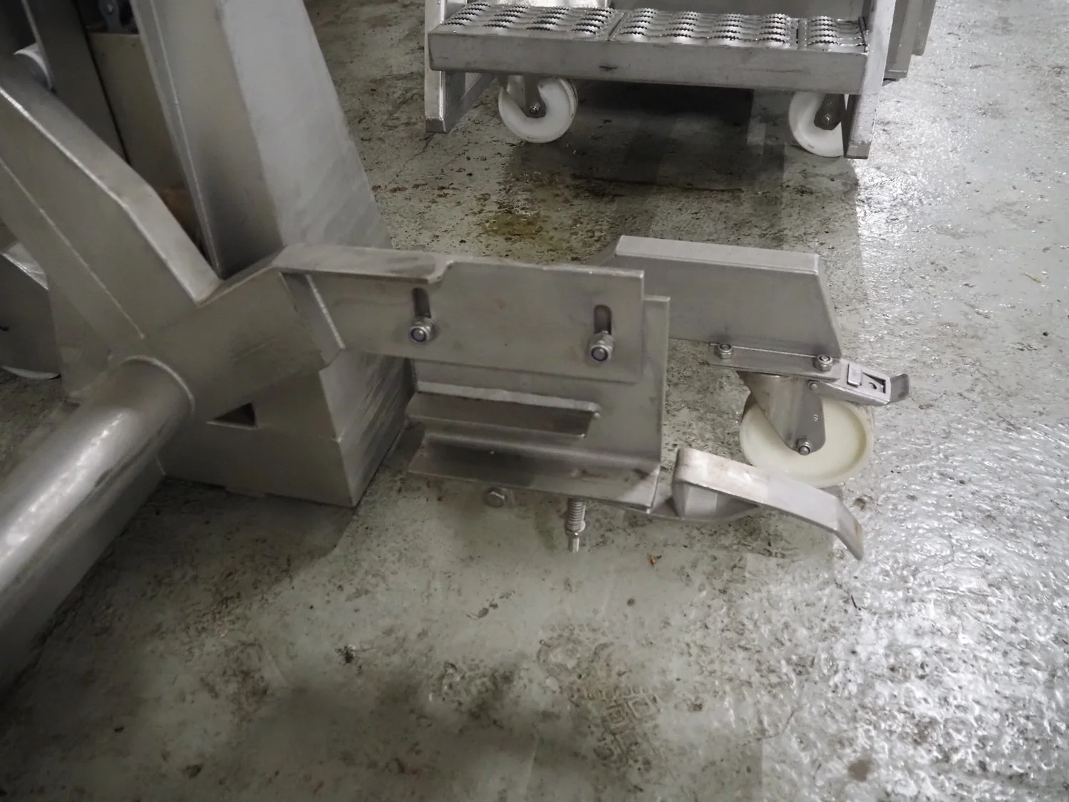KG Lyften mobile lifter for 200 liter meat bins, elevating height: 2000 mm, total dimensions: 1200 mm x 1200 mm x 2400 mm.