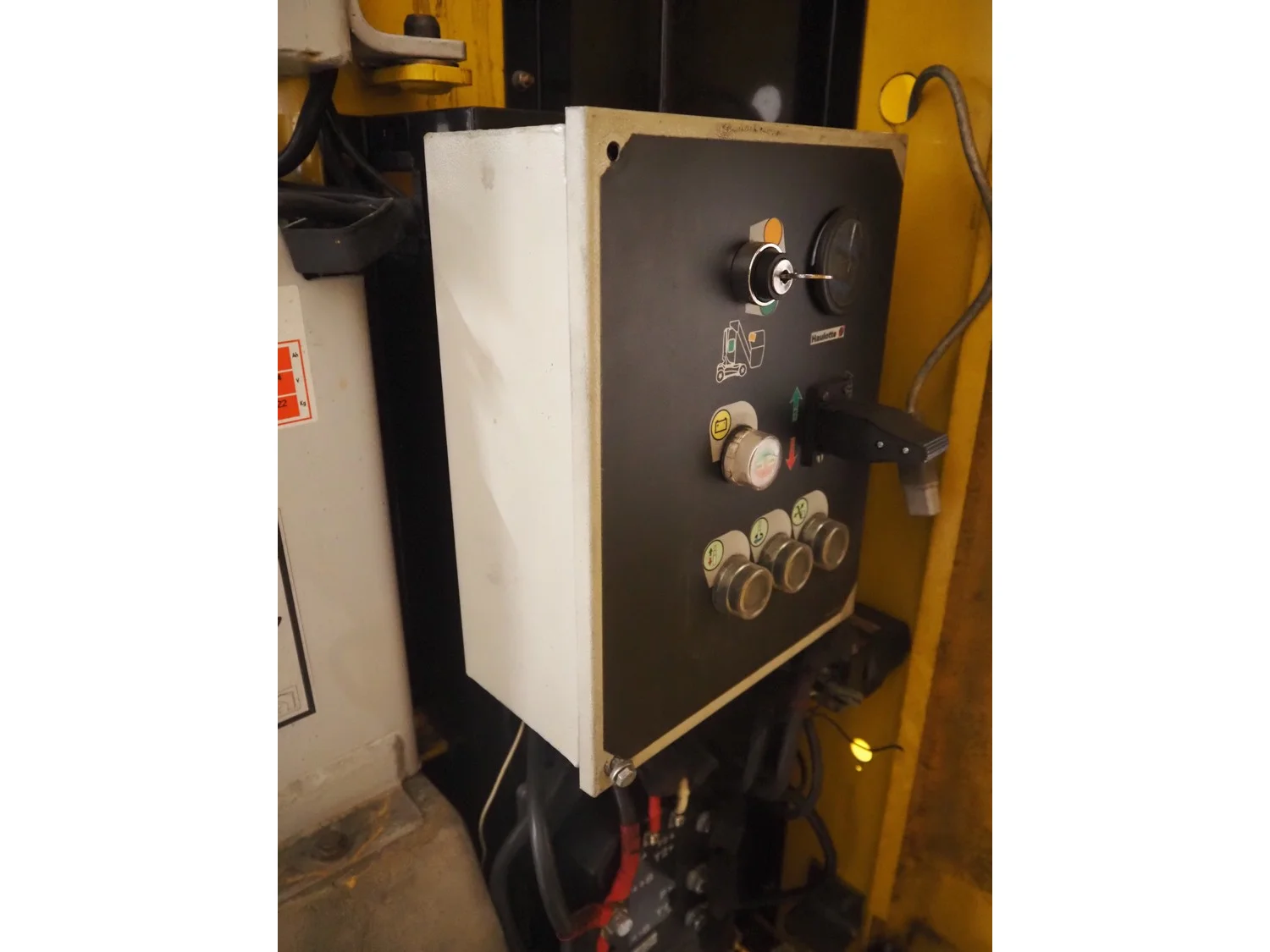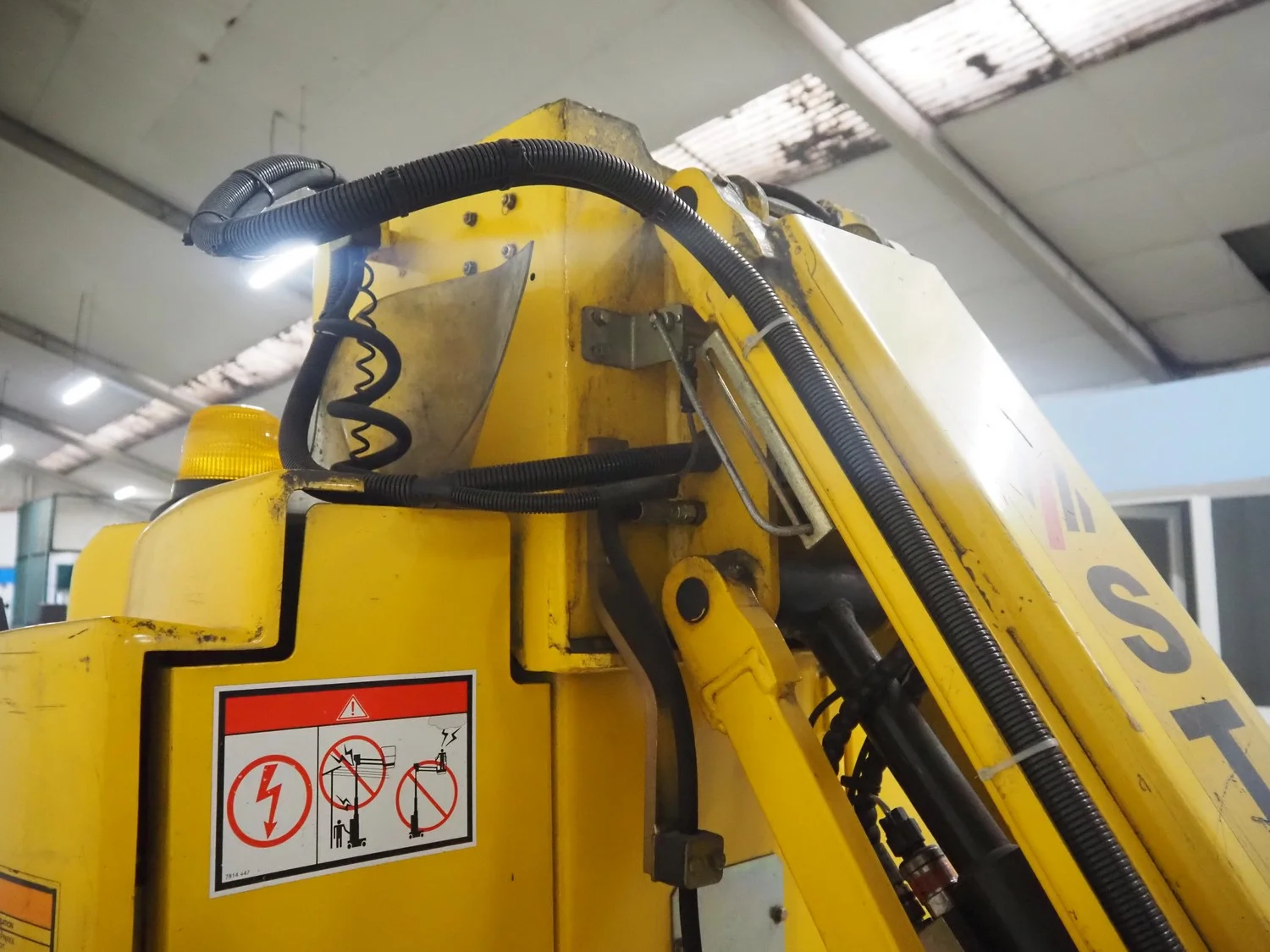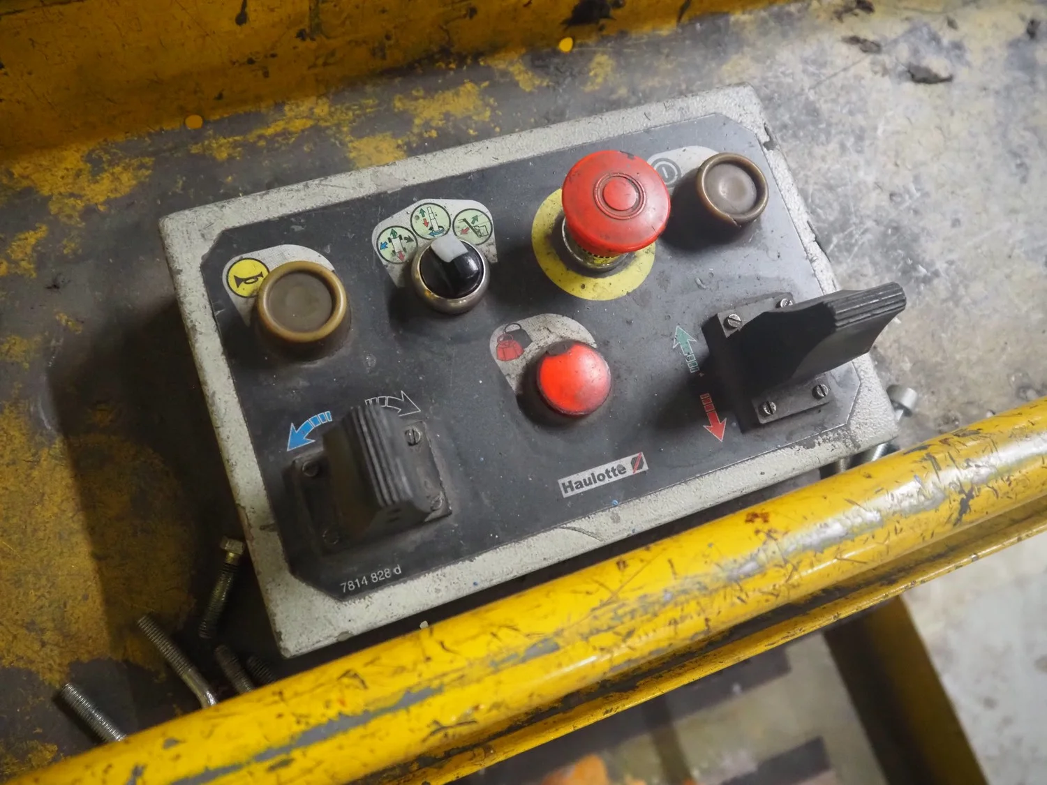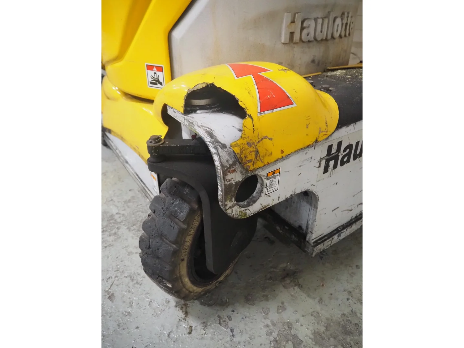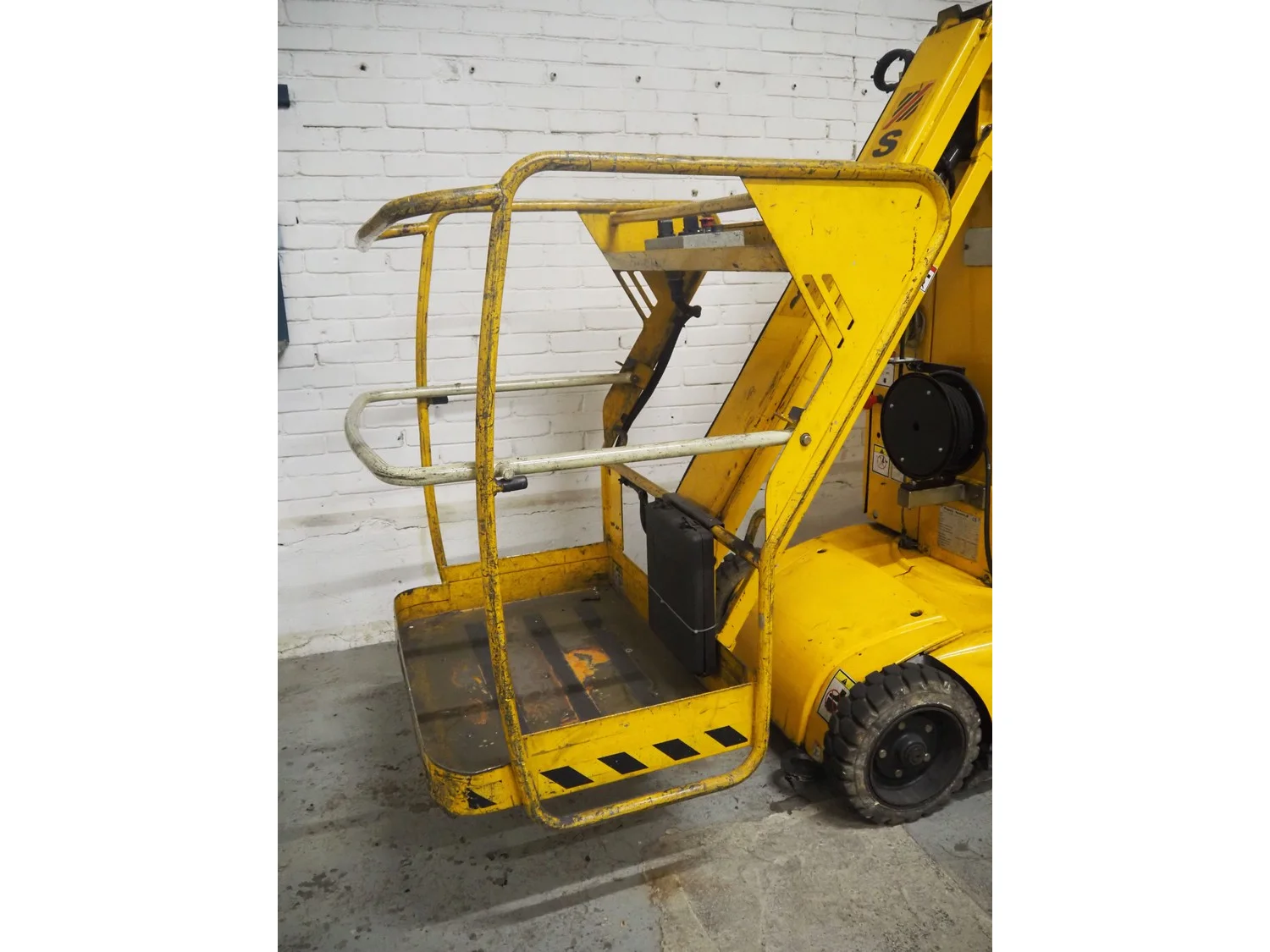 Haulotte electric mast lift, type: STAR 8, serial number: ME102097, year of construction: 2004, 1.2 kW, weight: 2515 Kg, lifting capacity: 200 kg, working height: 8.2 meters, platform height: 6.2 meters, dimensions platform: 920 mm x 660 mm, total dimensions: 2450 mm x 1050 mm x 1980 mm. Damaged.