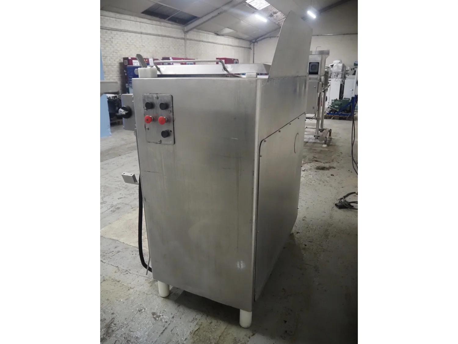 Grinder, diameter plate: 90 mm, total dimensions: 1250 mm x 1000 mm x 1700 mm. Missing worm, knives and plates.