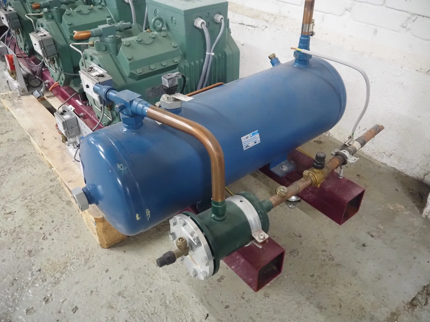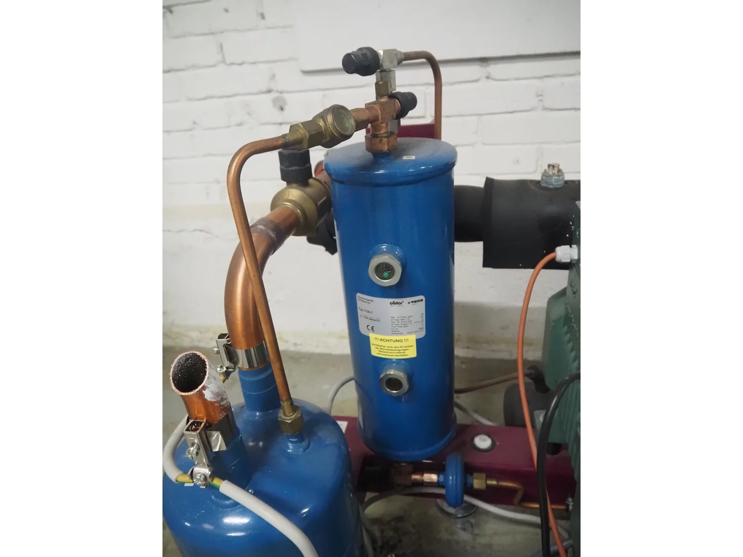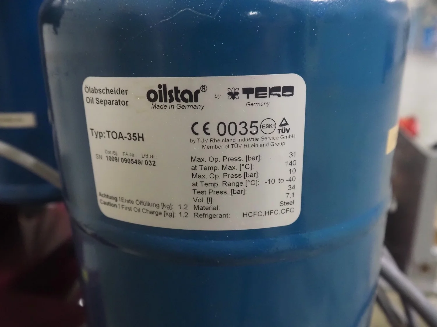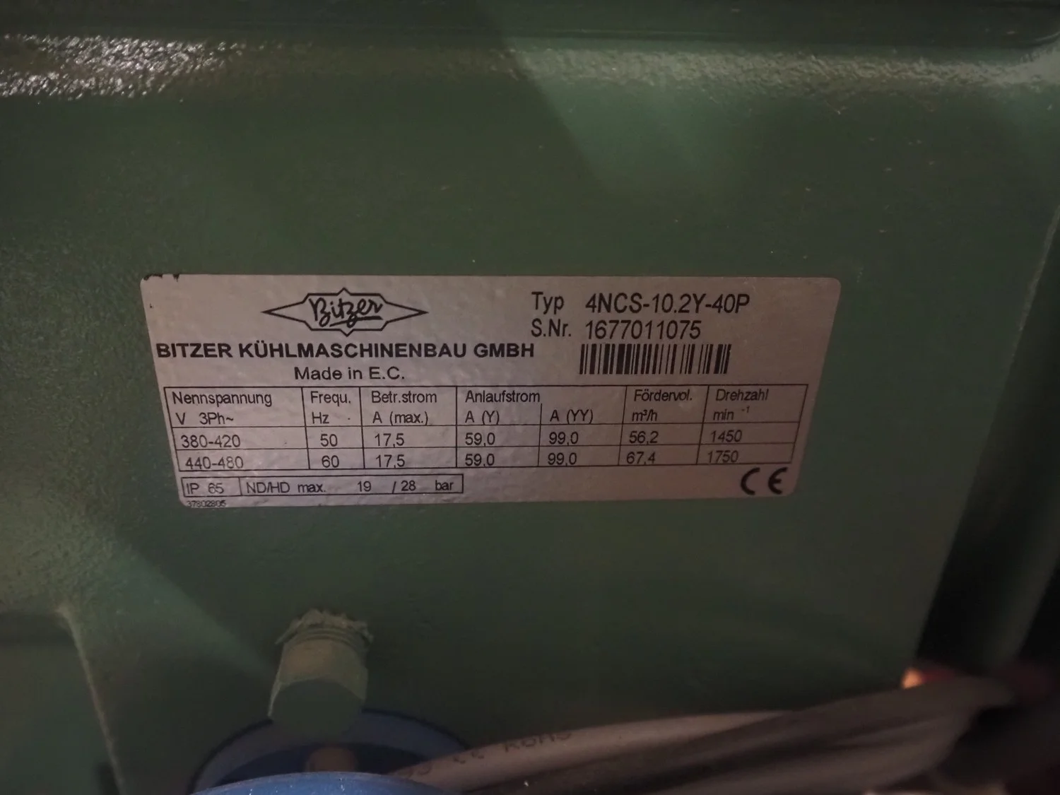 Teko compressor rack with 3 Bitzer Kühlmaschinenbau GmbH cooling compressors, type: (3x) 4NCS-10.2Y-40P, capacity: 56.2/67.4 m³ per hour, dimensions: 2450 mm x 850 mm x 900 mm.