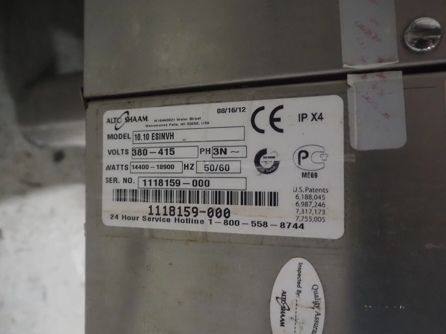 Alto-Shaam combi oven, model: 10.10 ESINVH, serial number: 1118159-000, 380-415 V, 3 Ph, 50/60 Hz, 10 floors, dimensions each floor: 510 mm x 325 mm, total dimensions: 900 mm x 920 mm x 1350 mm.