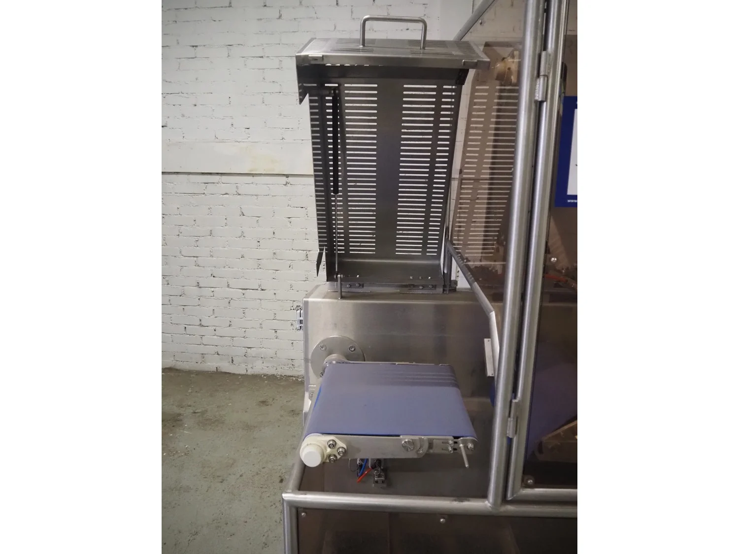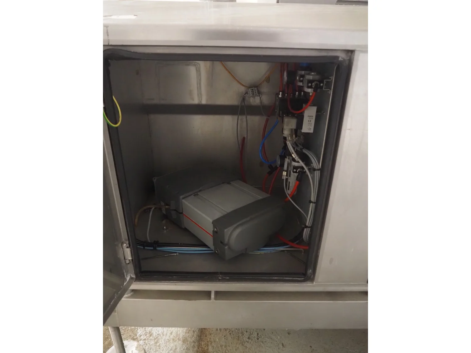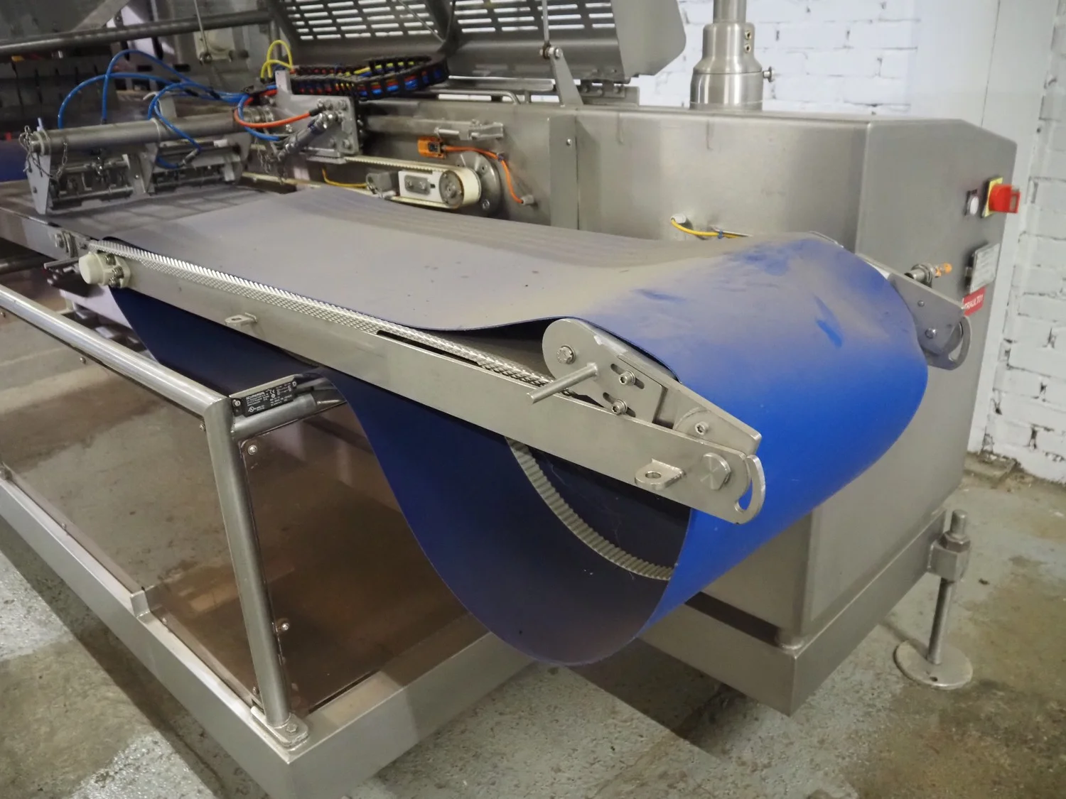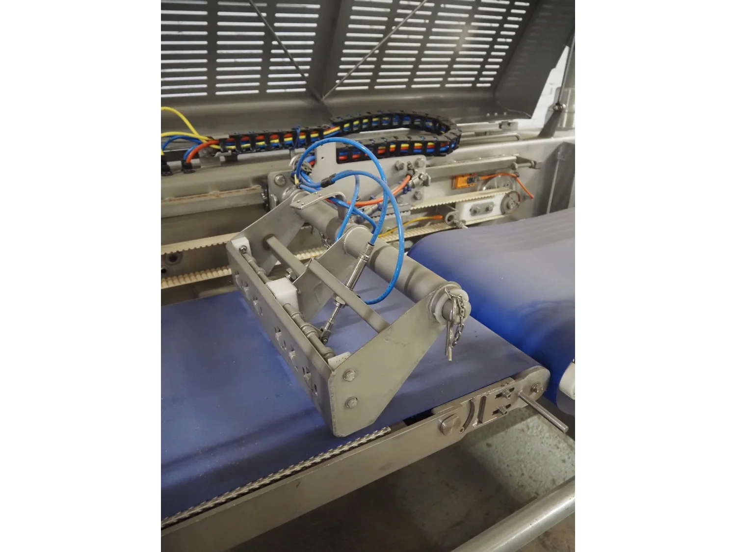 Ermatec slicer for cheese, serie: TRENCHEUR.US, number: 837, year of construction: 30.09.2005, plastic belt, belt width: 420 mm, working width: 485 mm, total dimensions: 3200 mm x 1300 mm x 2000 mm.