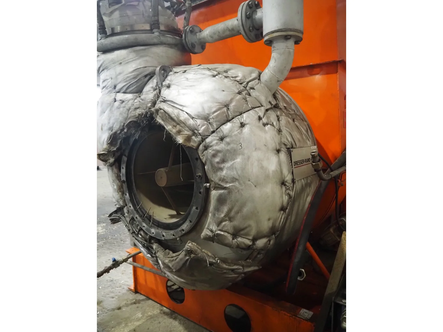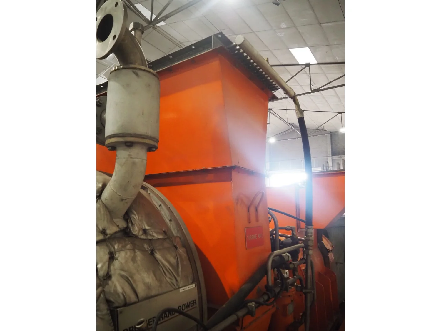 Dresser Rand Power gas turbine, model: KG2SL3, number: 51065506, year of construction: 1990, generator type: Piller, 380 V, 50 Hz, 2125 KvA, weight: 10.000 Kg, type of fuel: Liquid, dimensions: 4000 mm x 2050 mm x 2360 mm. Including pallet steel housing with fan, dimensions: 1480 mm x 1250 mm x 1520 mm.