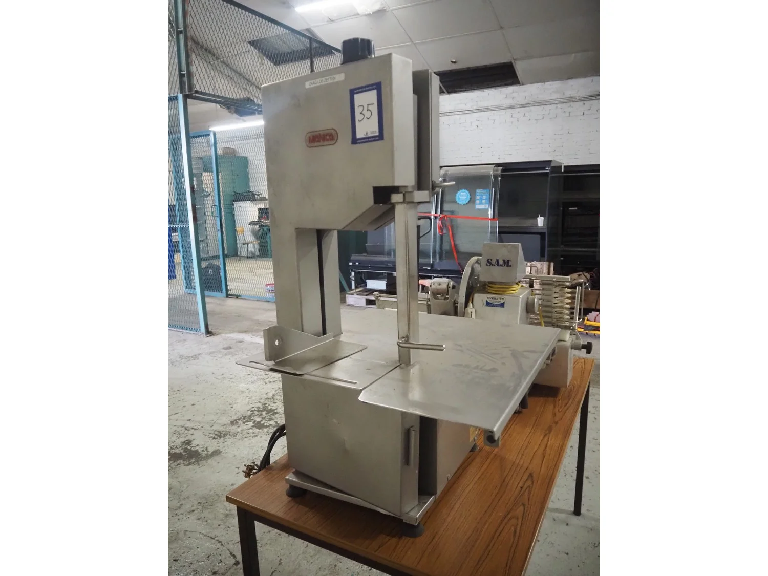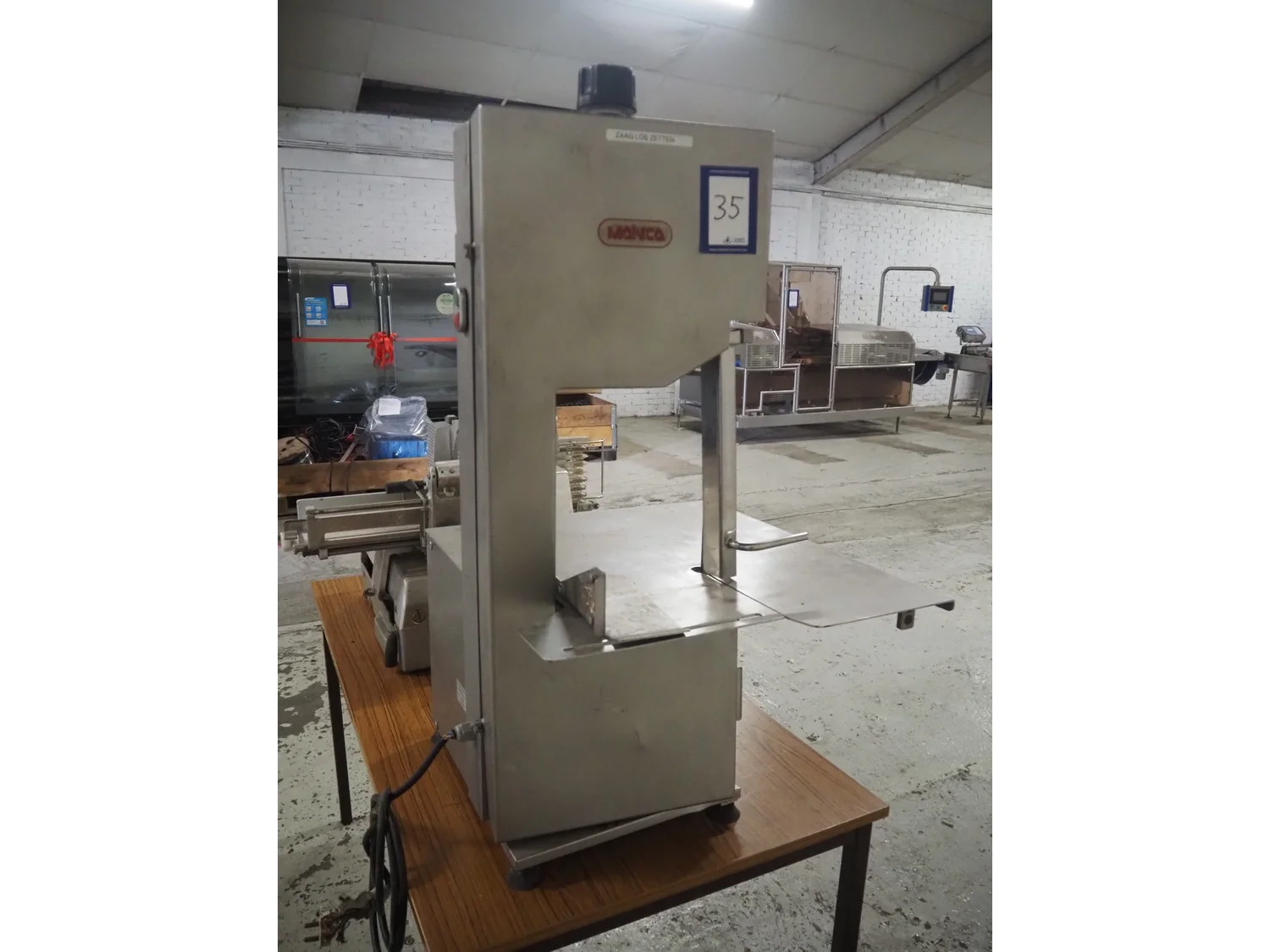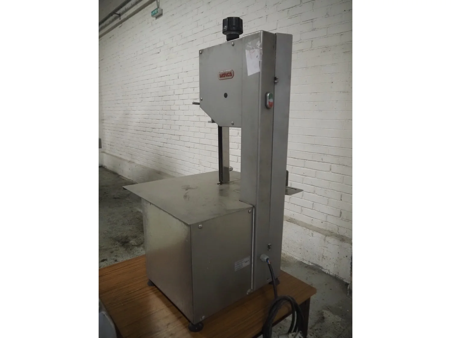 Mainca table model bandsaw, model: BM-2000, number: 1216, year of construction: 2002, 400 V, 3 Ph, 50 Hz, 3.2 A, 1.1 kW, dimensions sawtable: 600 mm x 560 mm, total dimensions: 600 mm x 580 mm x 1050 mm.