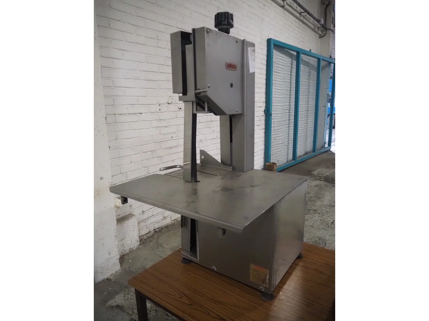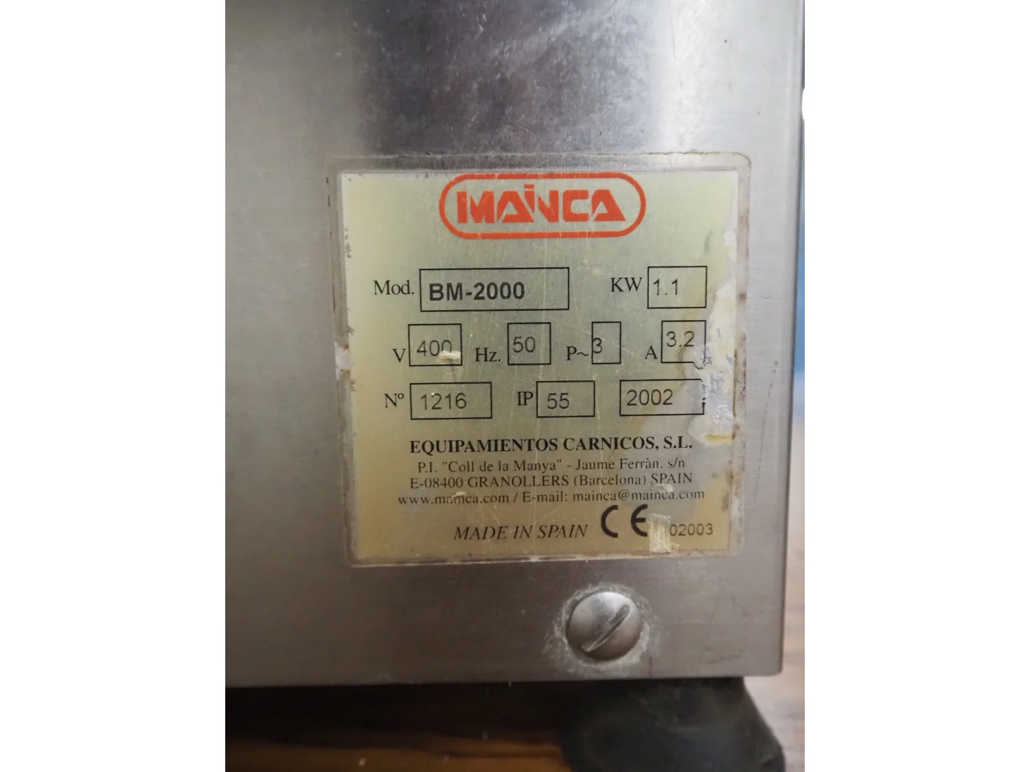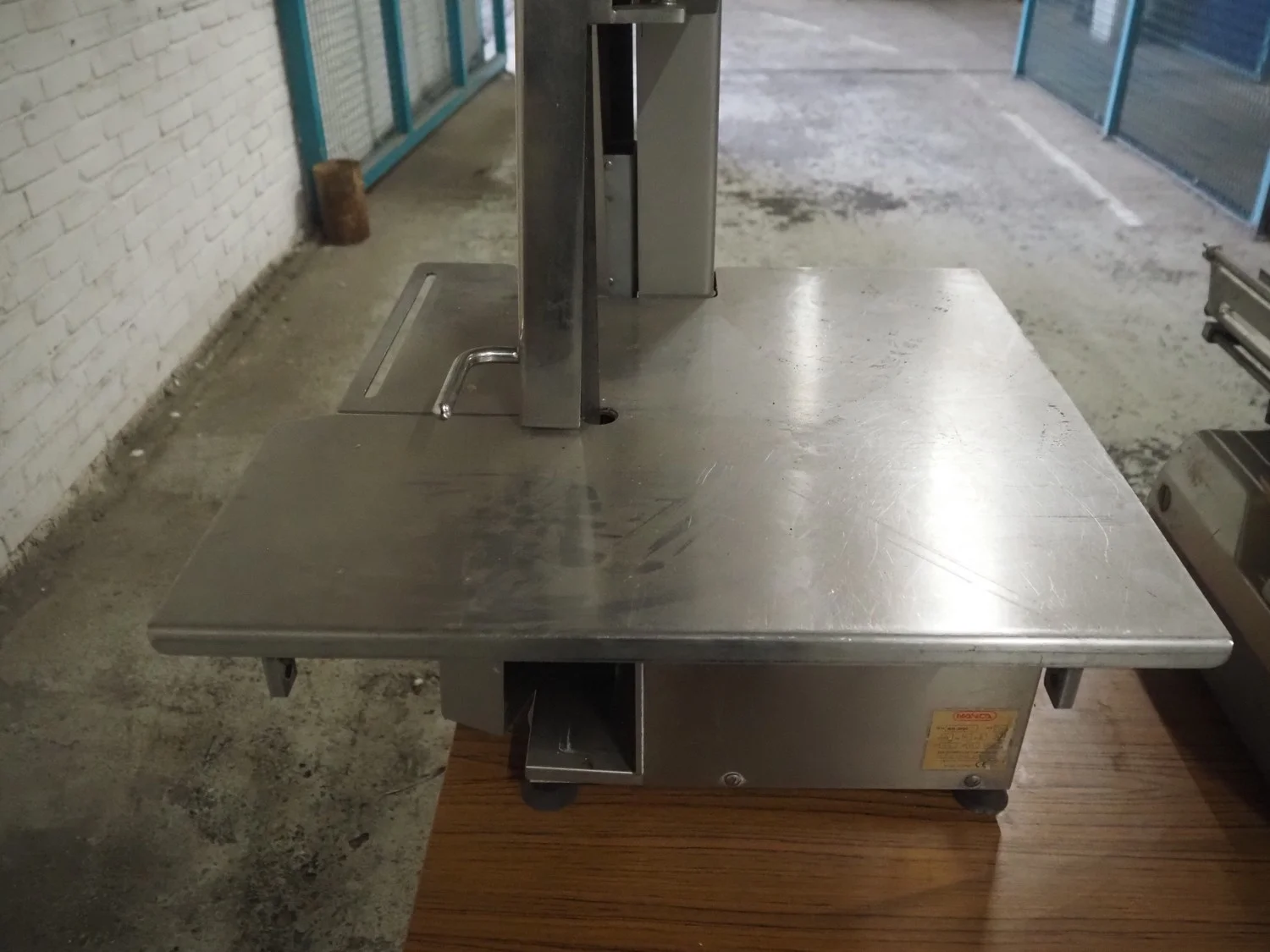 Mainca table model bandsaw, model: BM-2000, number: 1216, year of construction: 2002, 400 V, 3 Ph, 50 Hz, 3.2 A, 1.1 kW, dimensions sawtable: 600 mm x 560 mm, total dimensions: 600 mm x 580 mm x 1050 mm.