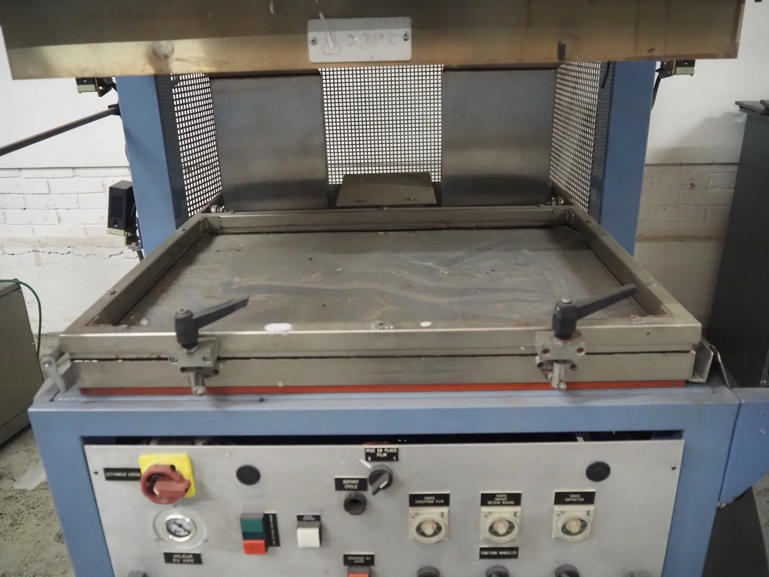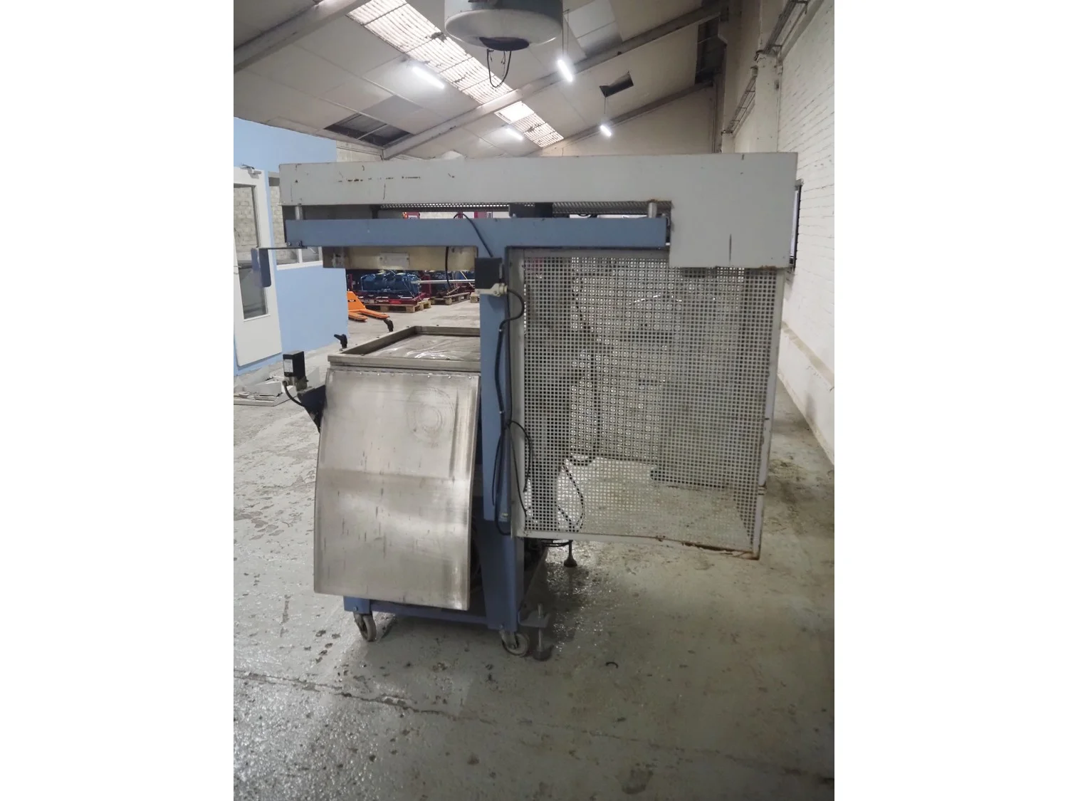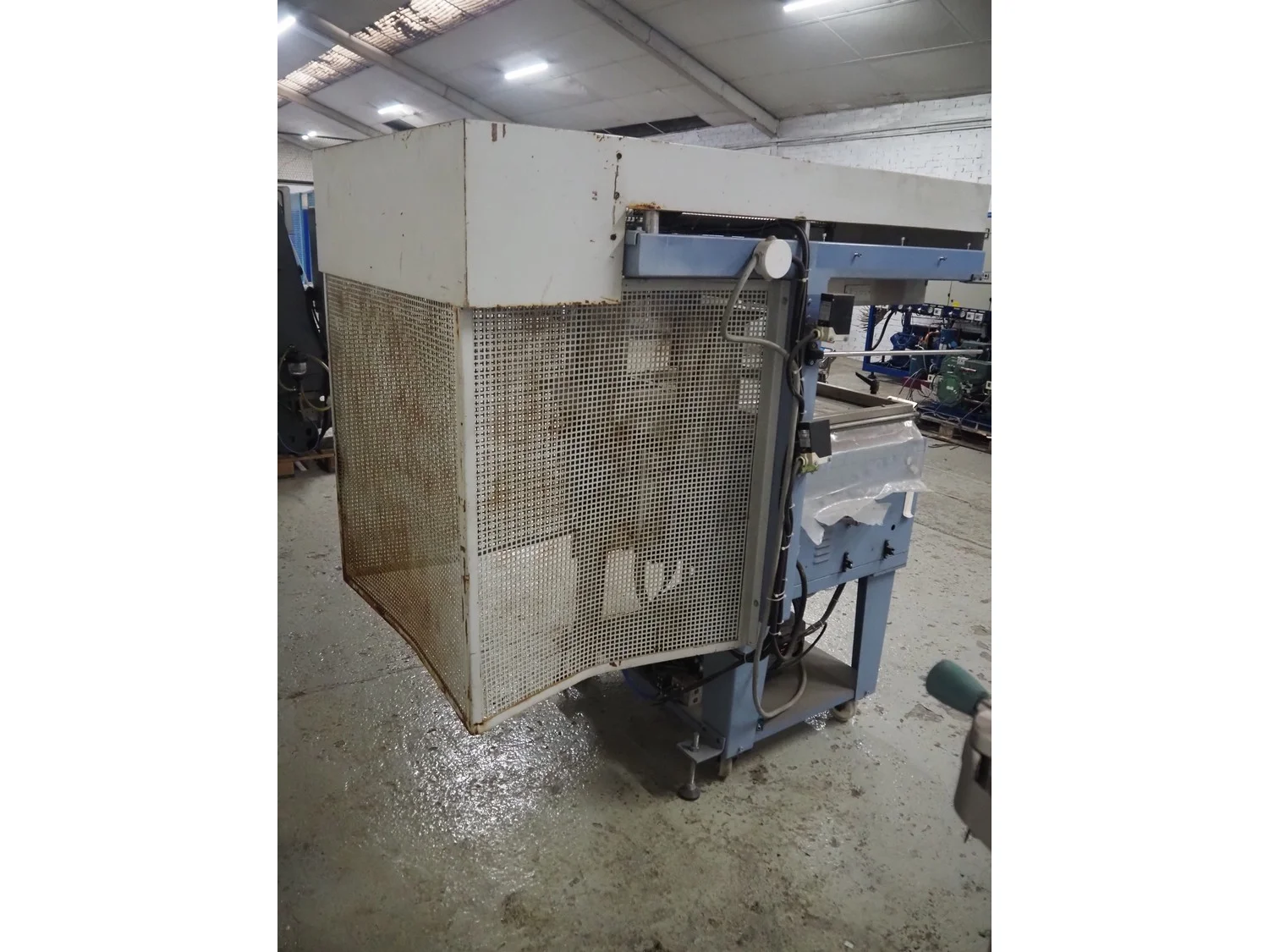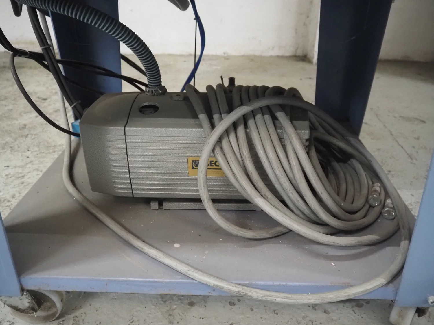 CB Emballage S.A. mobile tray forming machine, type: MSA 5070M, serial number: 59115 M, year of construction: 2000, 380 V, 14 A, 8500 Watt, working width: 750 mm and 550 mm, film width: 550 mm, with Becker vacuum pump, type: VT 4.16, number: 1507556, year of construction: 1998, capacity: 16/19 m³ per hour, total dimensions: 1600 mm x 1200 mm x 1700 mm.