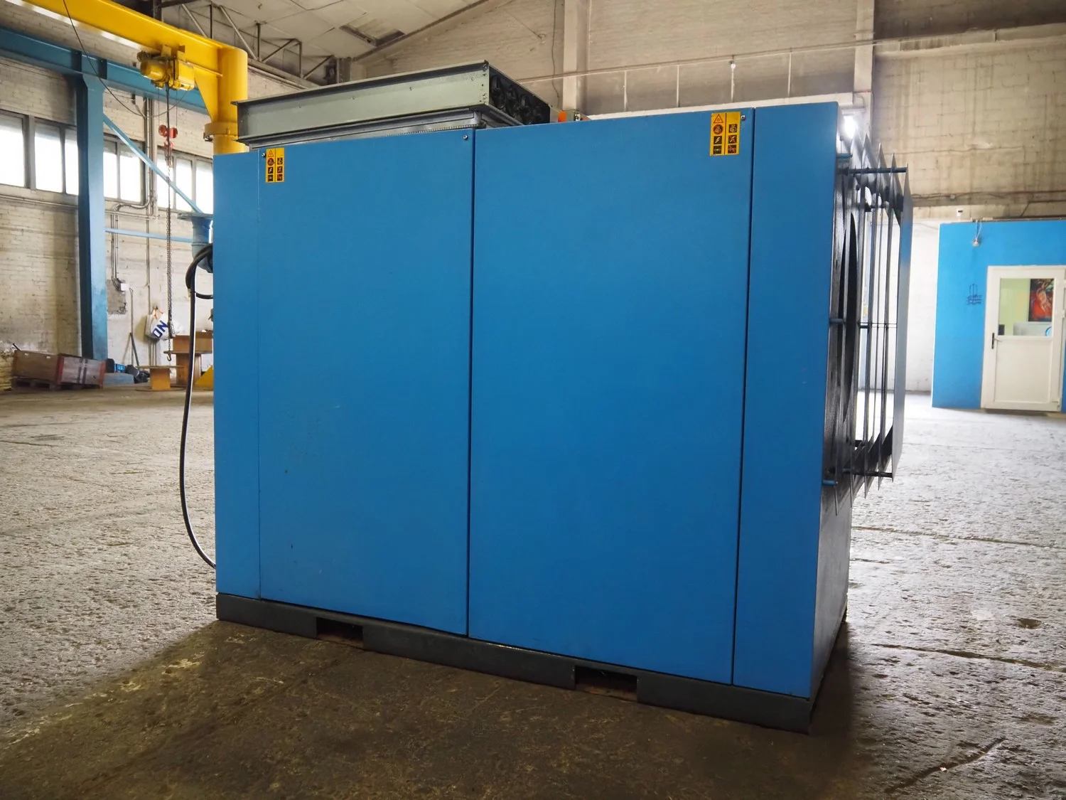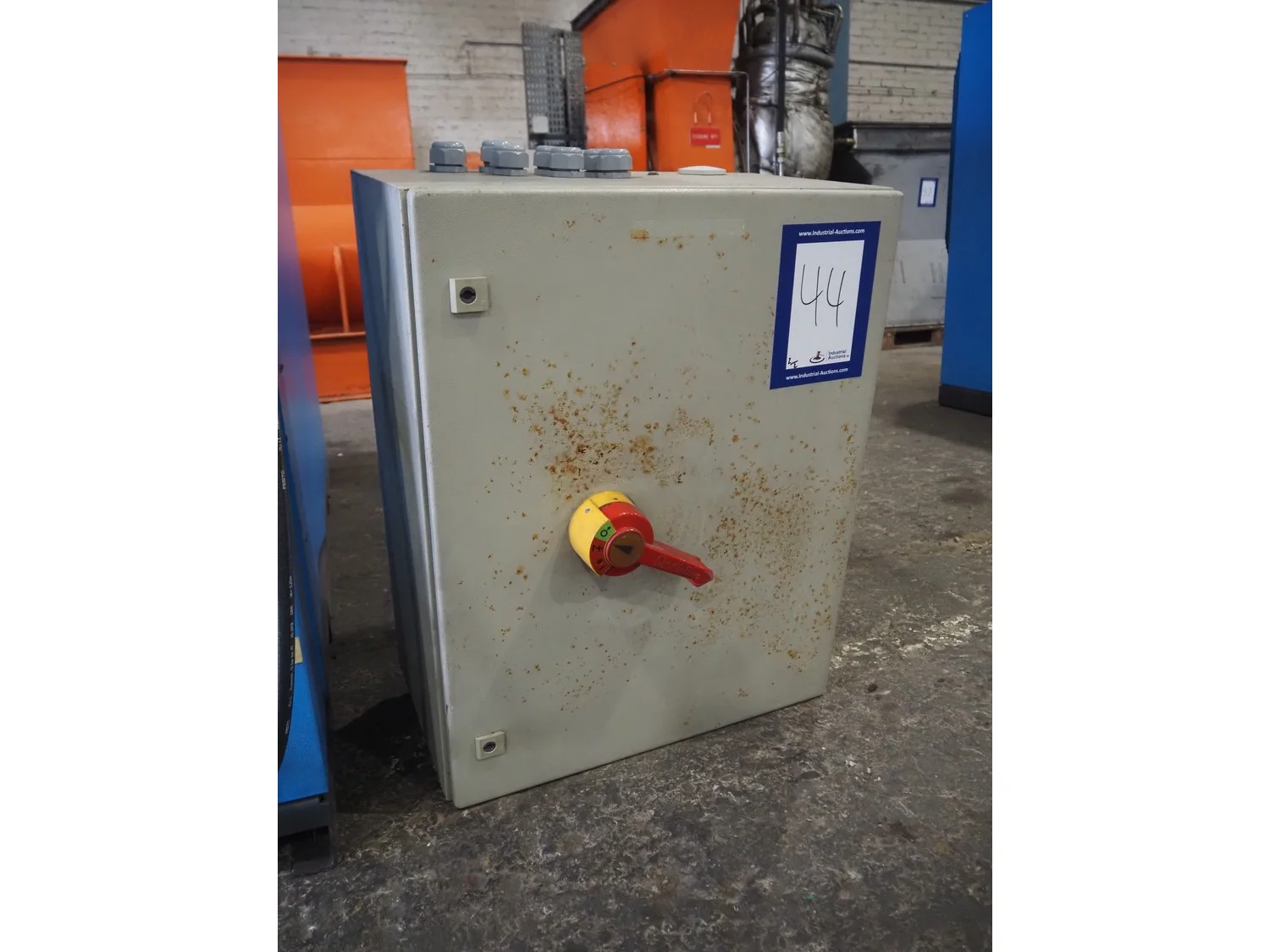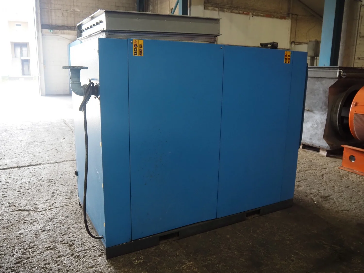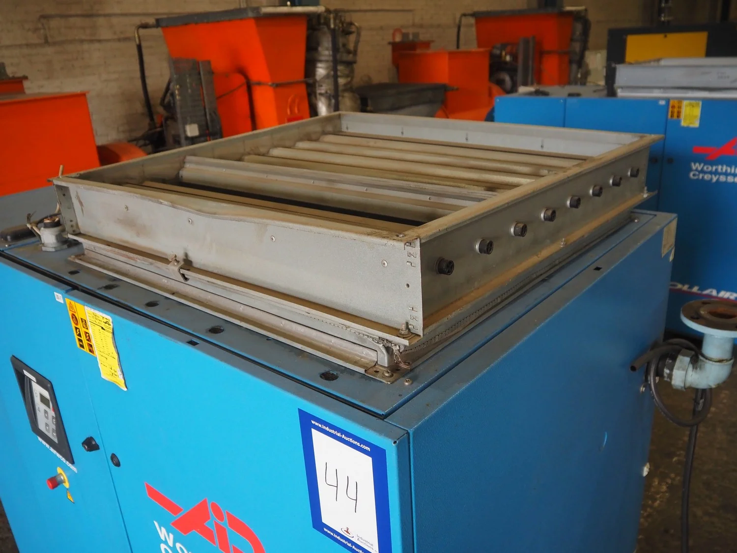 Worthington Creyssensac air compressor, type: RLR 125B7 AIR, serial number: API211162, year of construction: 2012, 400 V, 3 Ph, 50 Hz, 90 kW, weight: 1570 kg, dimensions: 2300 mm x 1100 mm x 1800 mm. Including switch cabinet, dimensions: 600 mm x 400 mm x 800 mm.