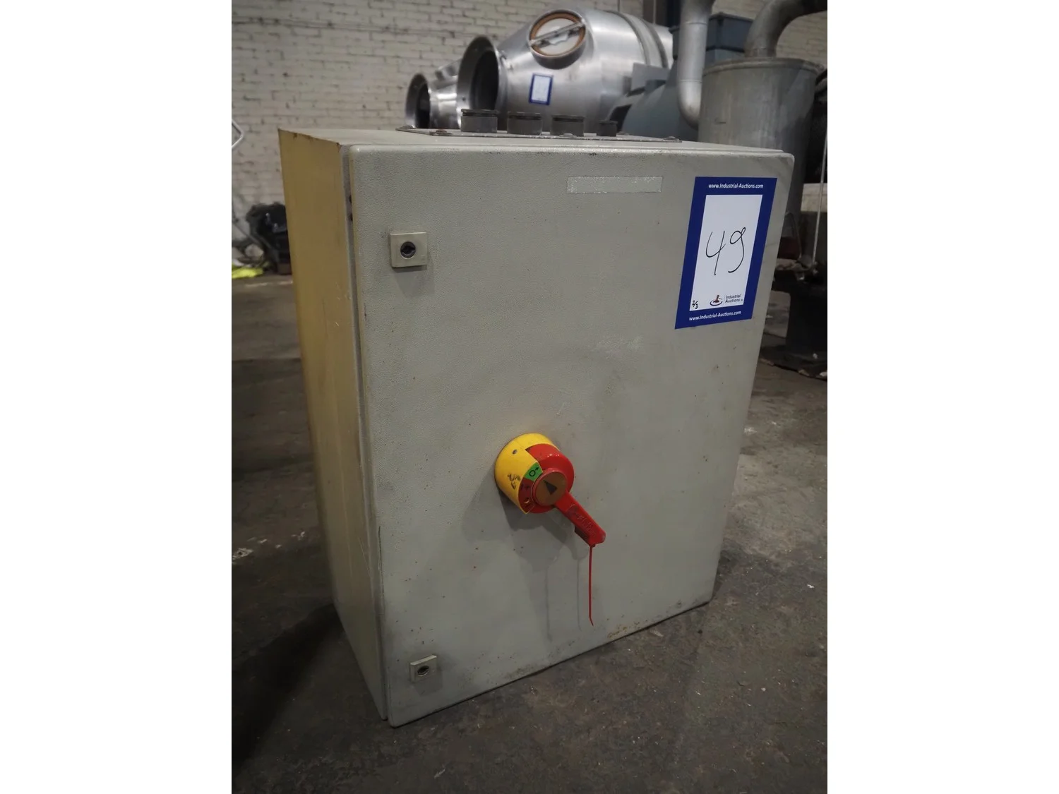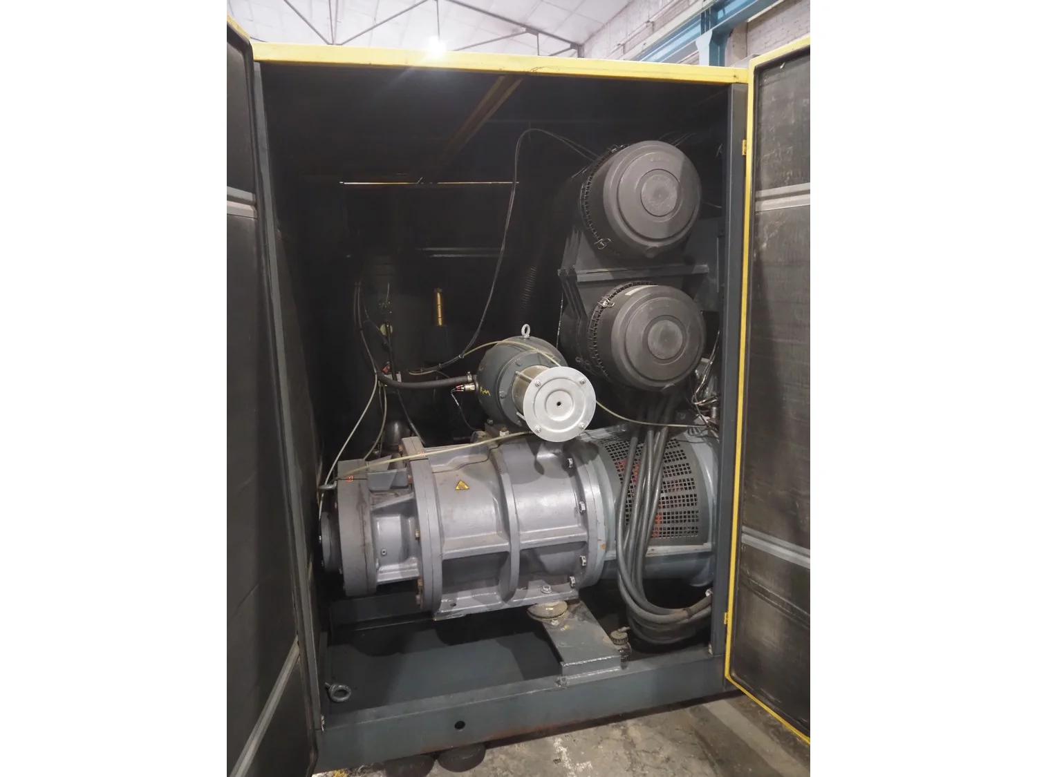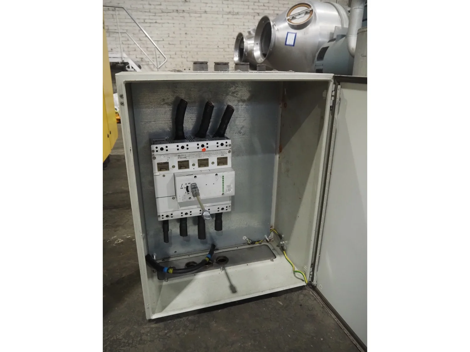 Kaeser kompressoren GmbH screw air compressor, model: ESD 351, serial number: 1002, year of construction: 2000, 400 V, 3 Ph, 50 Hz, 410 A, 200 kW, dimensions: 2650 mm x 2200 mm x 2350 mm. Including steel pressure vessel, number: 136 194, volume: 5000 liter, dimensions: ⌀ 1400 mm x 3900 mm and switch cabinet, dimensions: 600 mm x 400 mm x 800 mm.