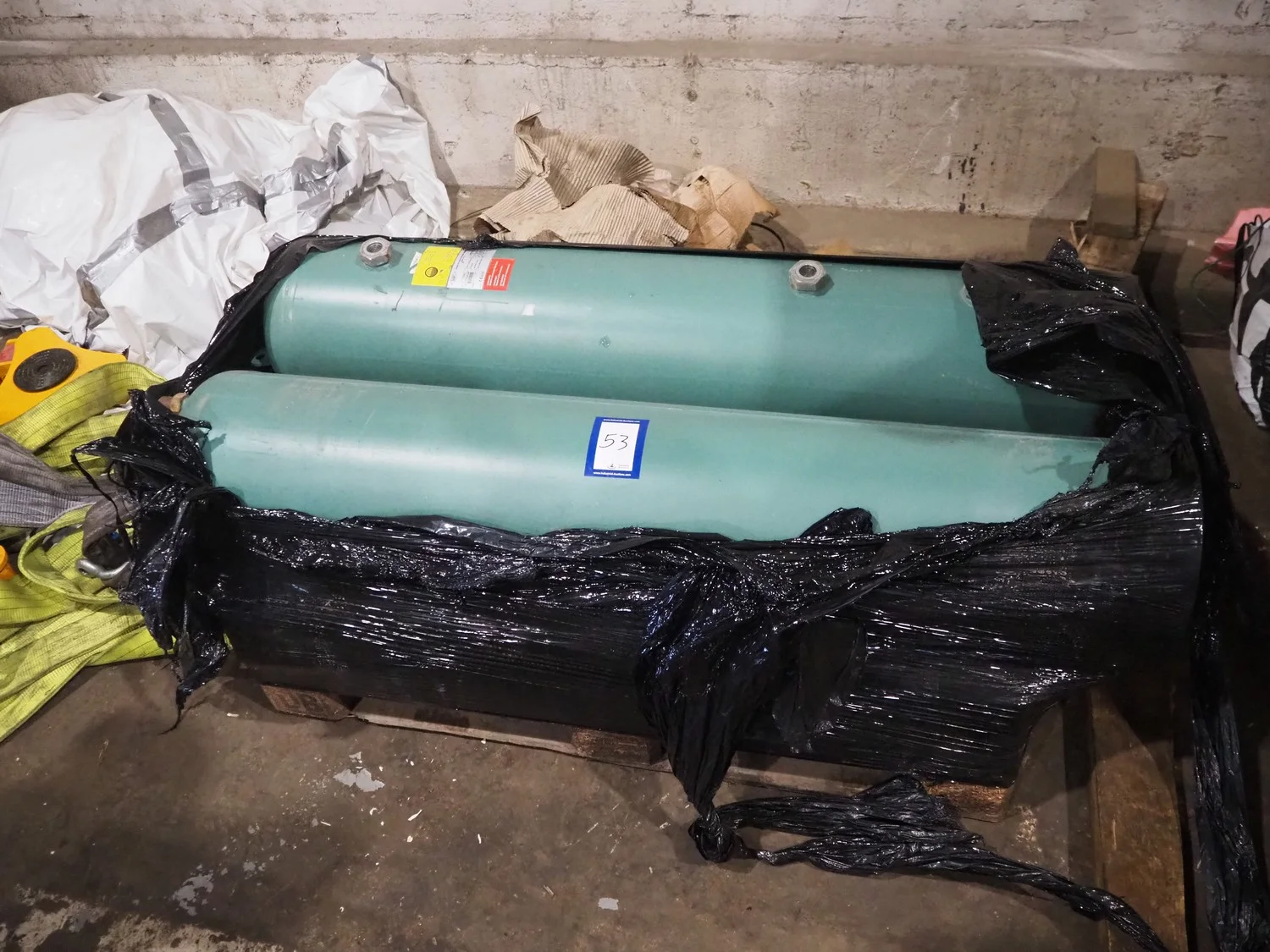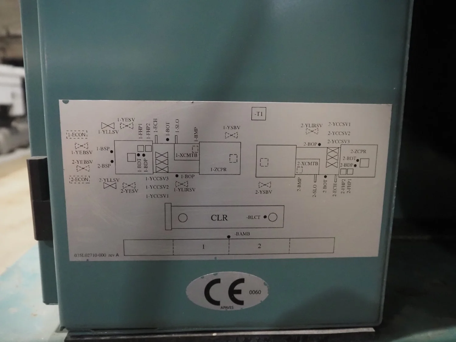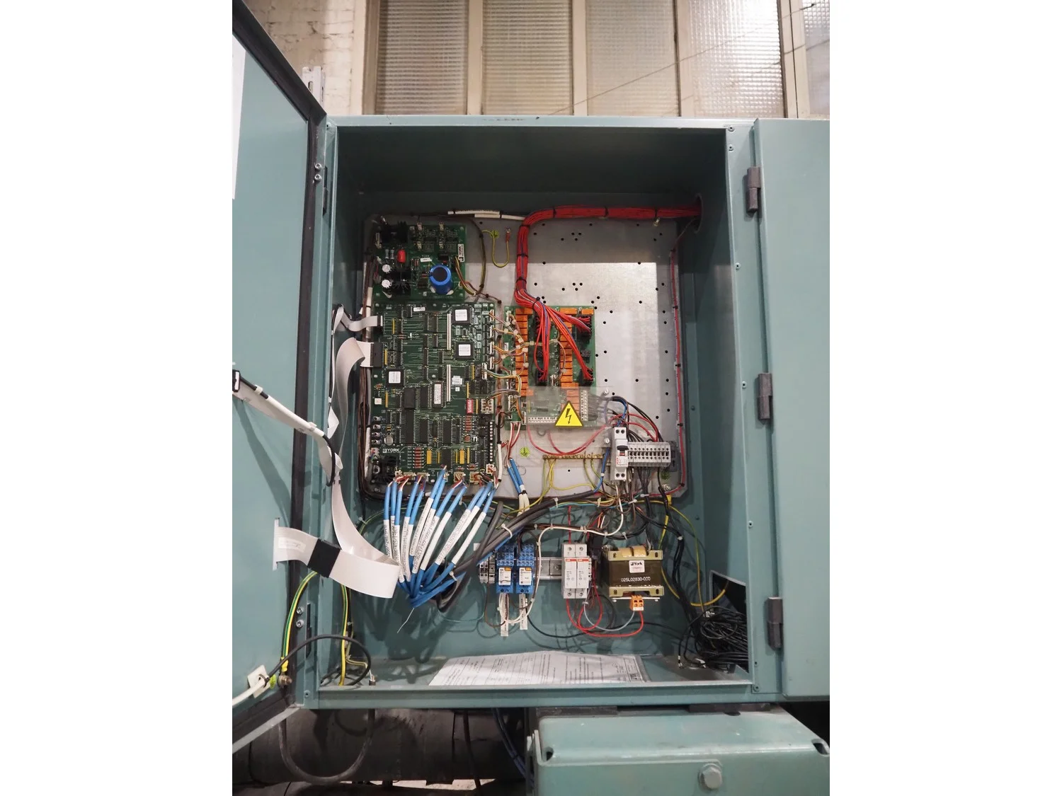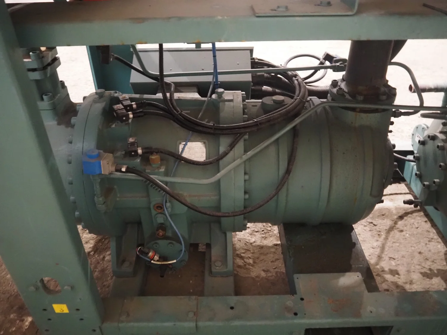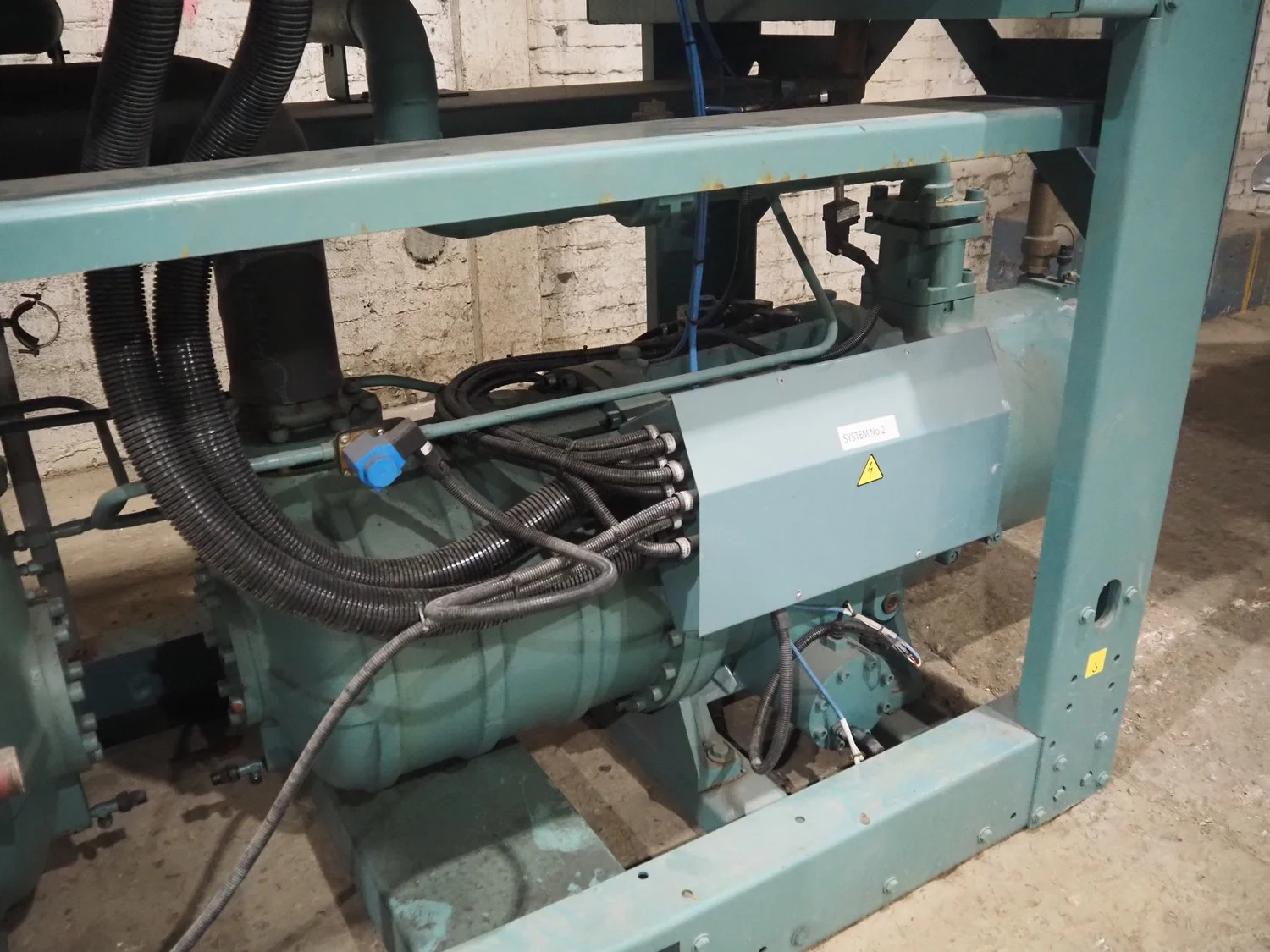 York YLCS water cooled screw chiller, with 2 York screw compressors, type: YLCS 0840AA, model: L-A-H and M-A-I, serial number: 7A9316 and 6AA927, year of construction: 2007 and 2006, 400/460 V, 3 Ph, 50/60 Hz, capacity: 598/735 and 774/952 m³ per hour, refrigerant: R134a, cooling capacity: 788 kW, dimensions: 4100 mm x 1100 mm x 2170 mm. Including pallet with liquid vessel, type: FS902, serial number: 1172403249, year of construction: 2007, volume: 89 liter, dimensions: 1500 mm x 800 mm x 450 mm.