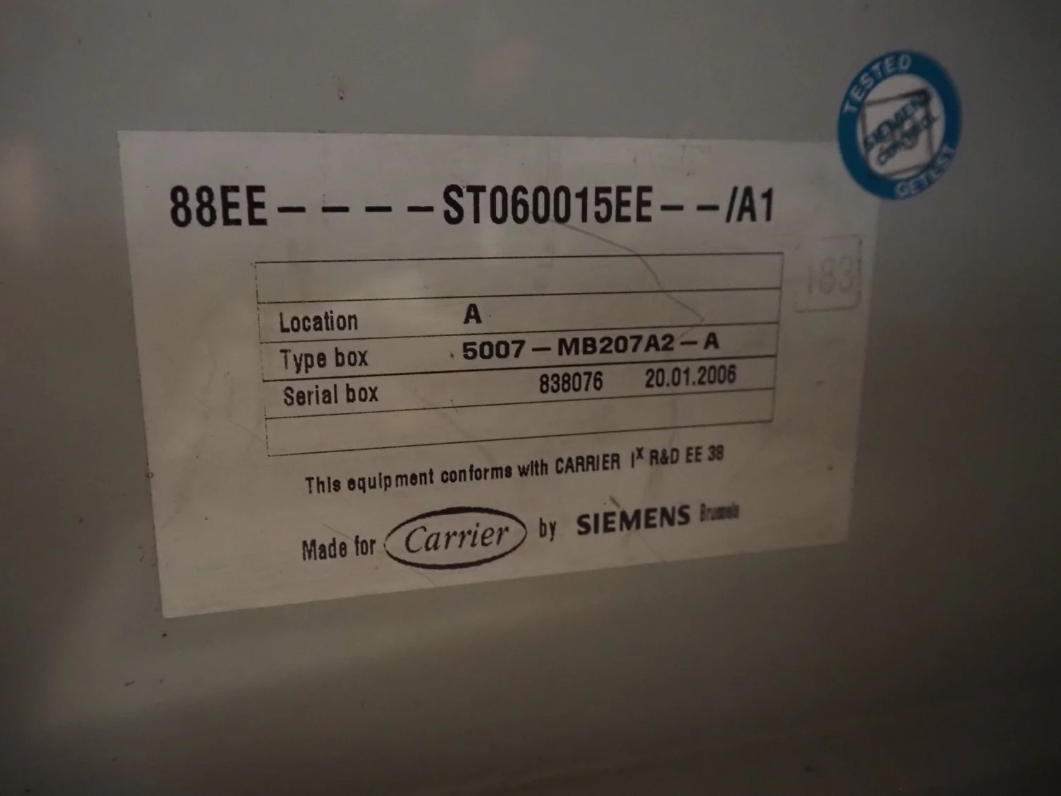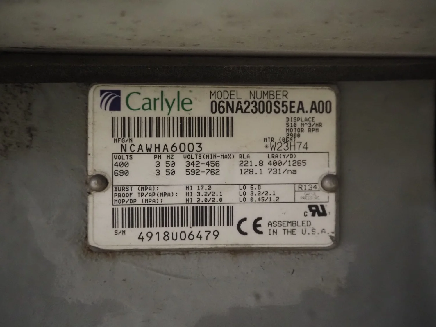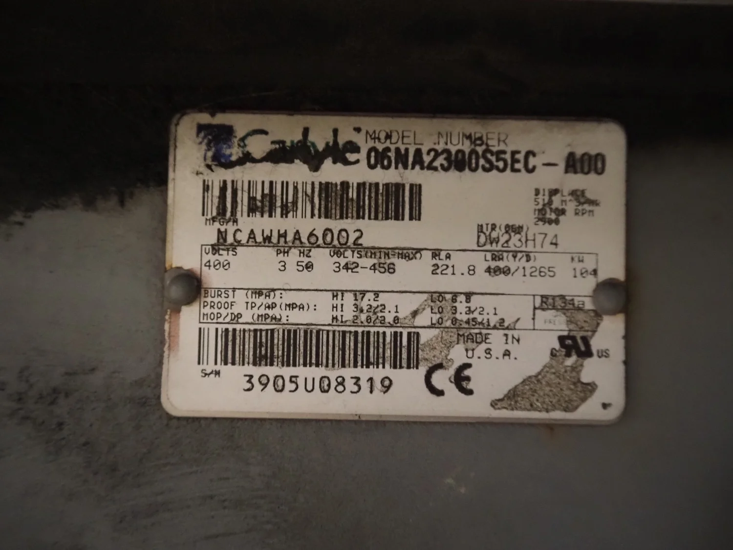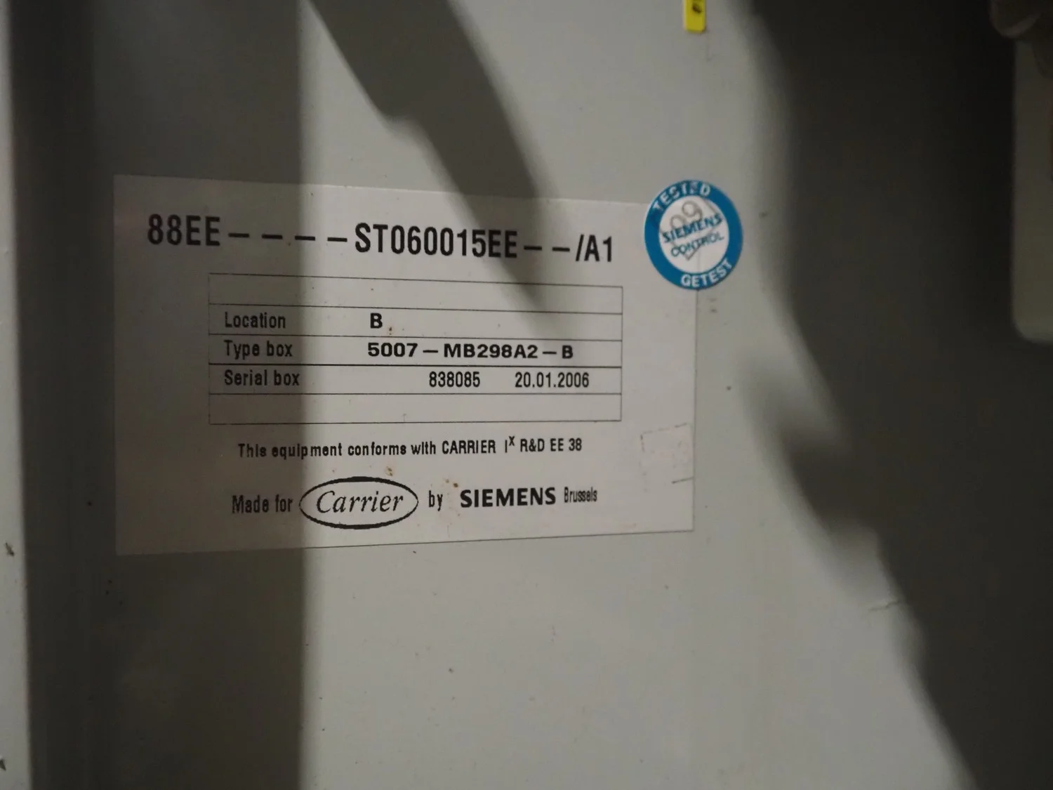 Carrier chiller, model: 30GX-358-A0540-PEE, serial number: 12N600525, year of construction: 25-01-2006, refrigerant: R134A, 400 V, 3 Ph, 50 Hz, 513 A, 306 kW, capacity: 1203 kW, dimensions: 9350 mm x 2300 mm x 2300 mm.