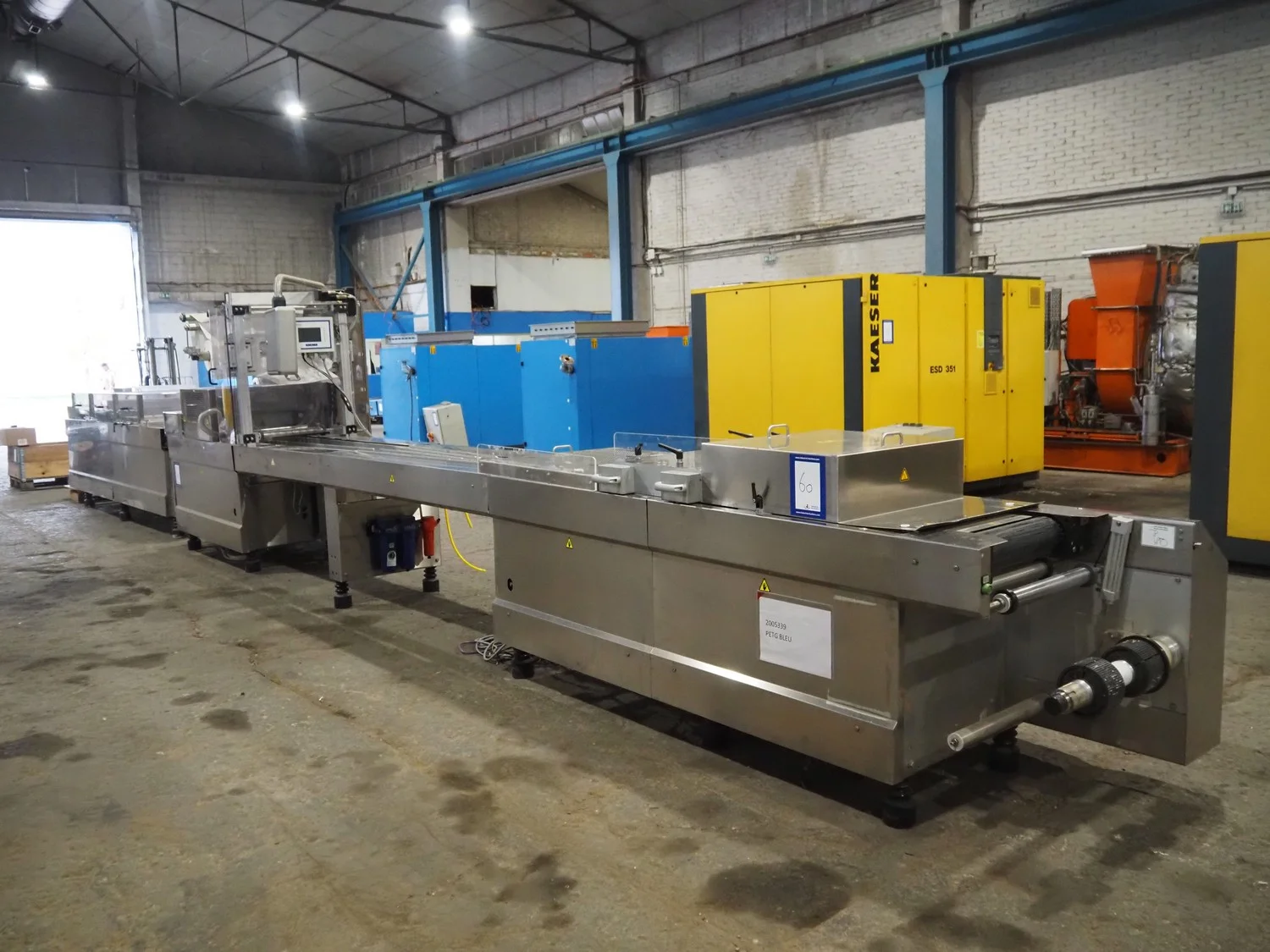 CFS thermoformer, type: 660, machine number: 665/0399, year of construction: 2004, 400 V, 3 Ph, 50 Hz, 28 A, 19 kW, dye: (14x) 230 mm x 30 mm, with Valentin label printer, type: DPM IV 107-12, total dimensions: 7600 mm x 1200 mm x 2000 mm and 3550 mm x 1000 mm x 1550 mm. Including Busch vacuum pump, type: MM 1144 AV, number: 04007839, 78 m³ per hour, and 3 pallets with parts, dye: (4x) 235 mm x 18 mm.