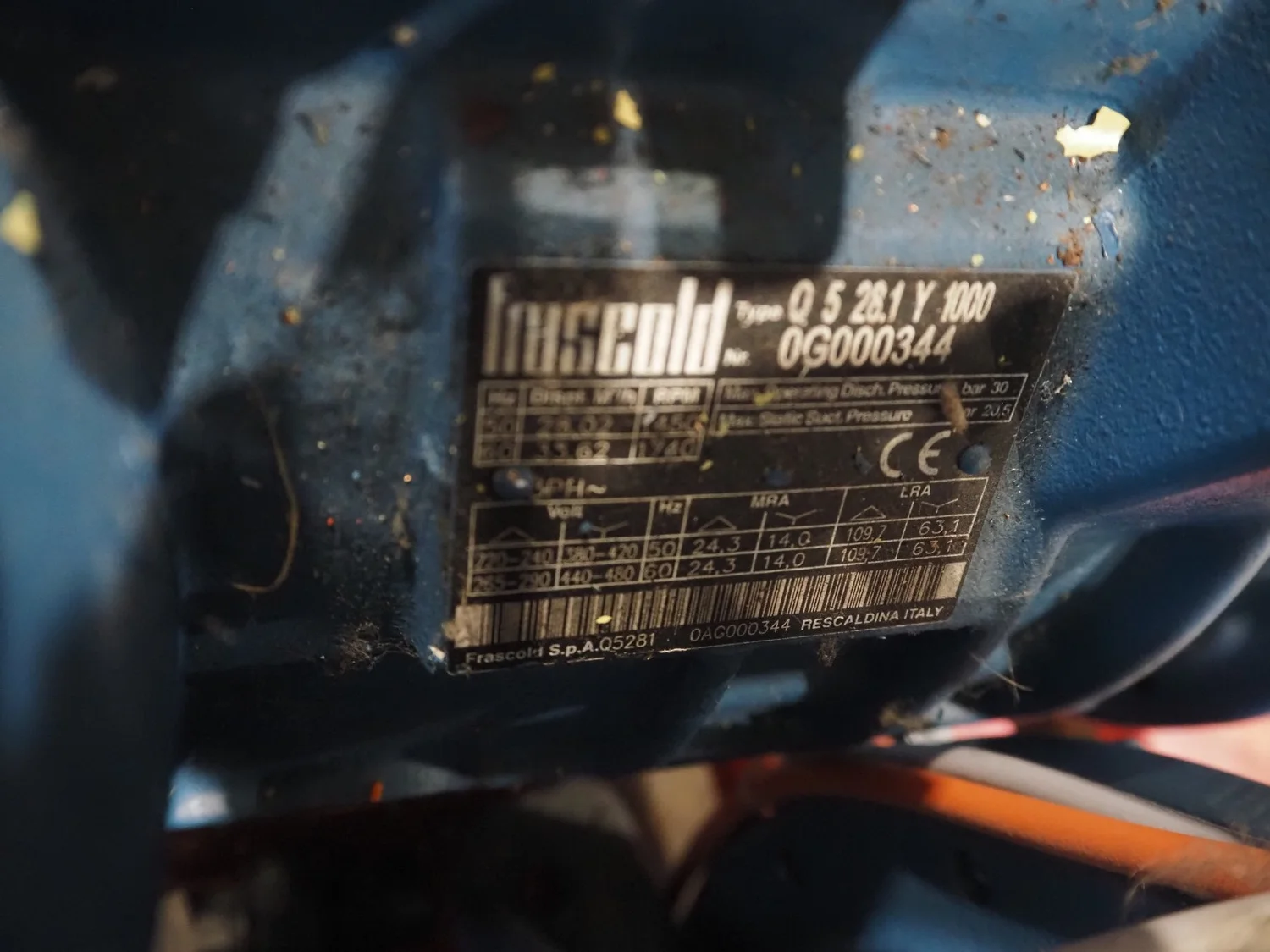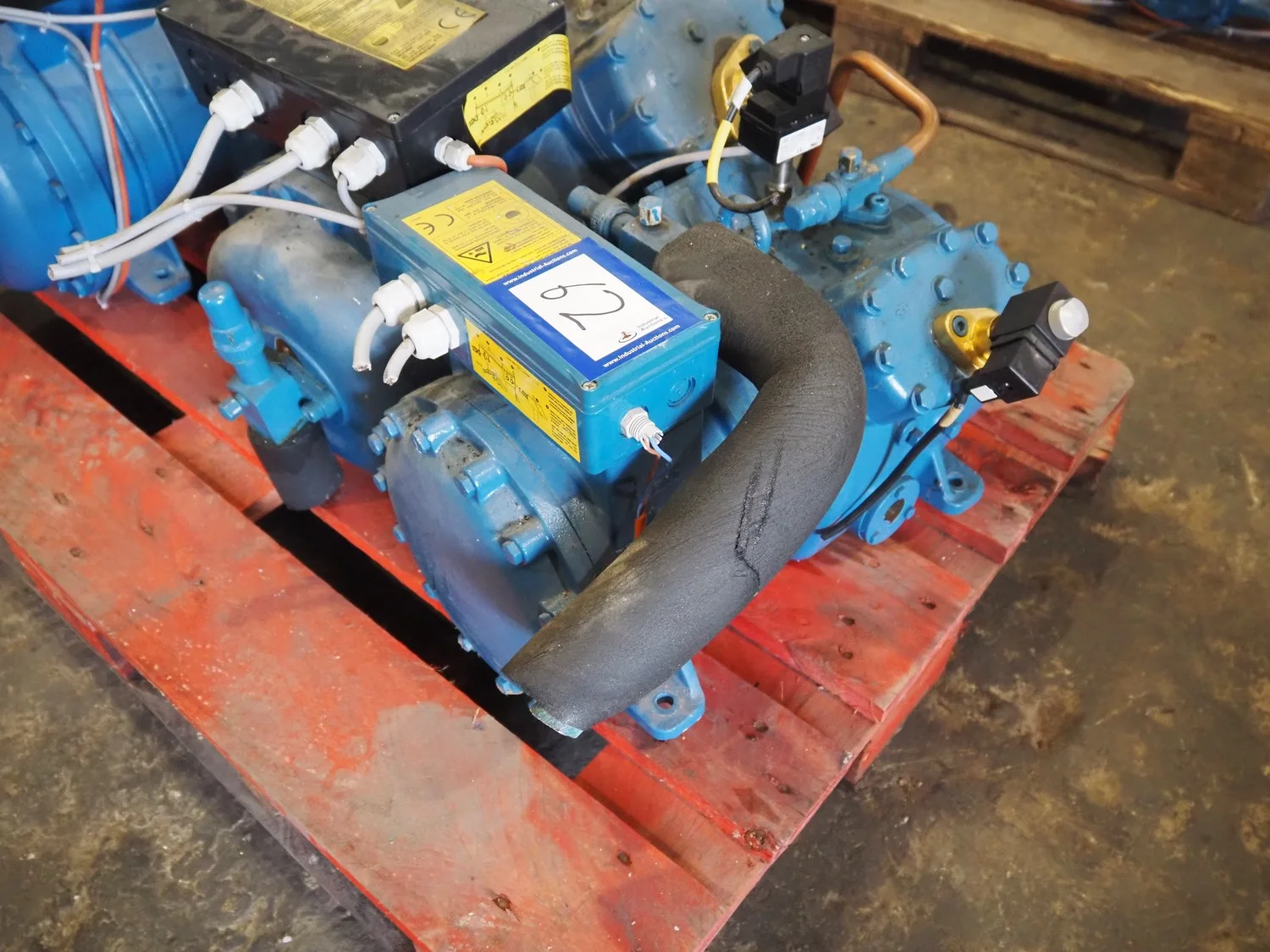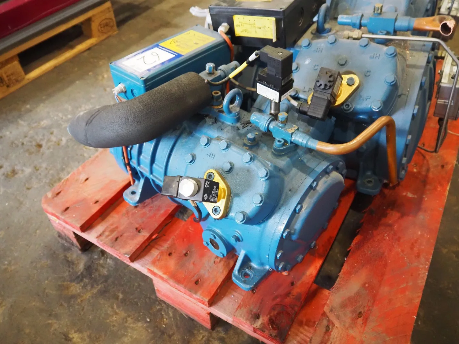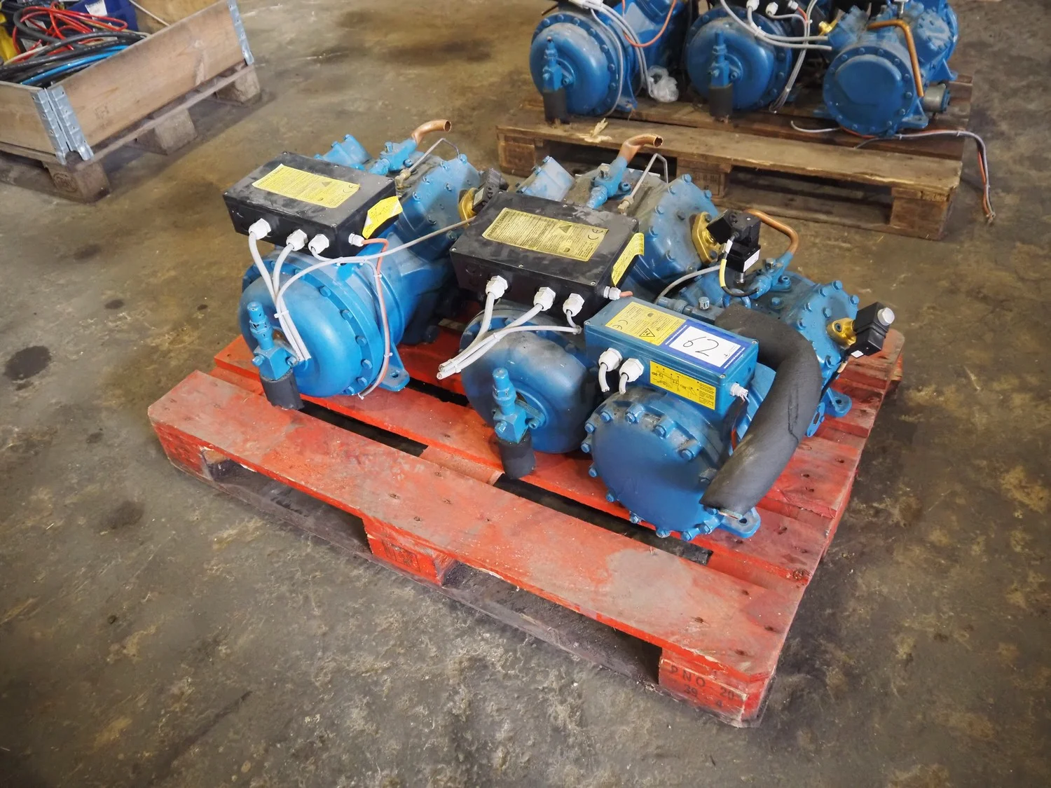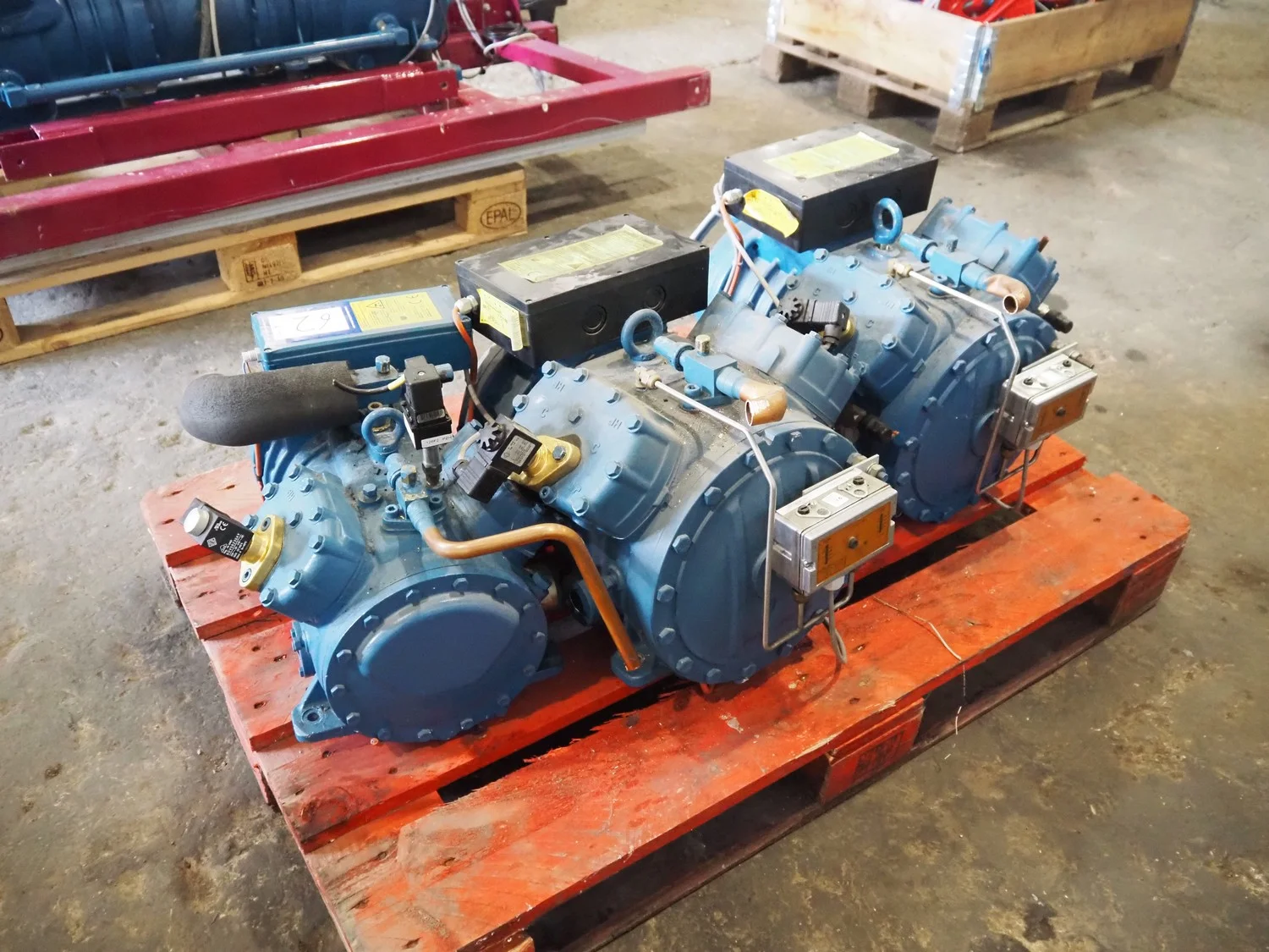 3 Frascold cooling compressors, type: S 8 52 E, capacity: 51.5/61.8 m³ per hour and type: S 7 51 Y, capacity: 50.43/61.51 m³ per hour and type: Q 5 28.1 Y 1000, capacity: 28.02/33.62 m³ per hour, dimensions: (2x) 630 mm x 500 mm x 400 mm and (1x) 530 mm x 400 mm x 400 m.