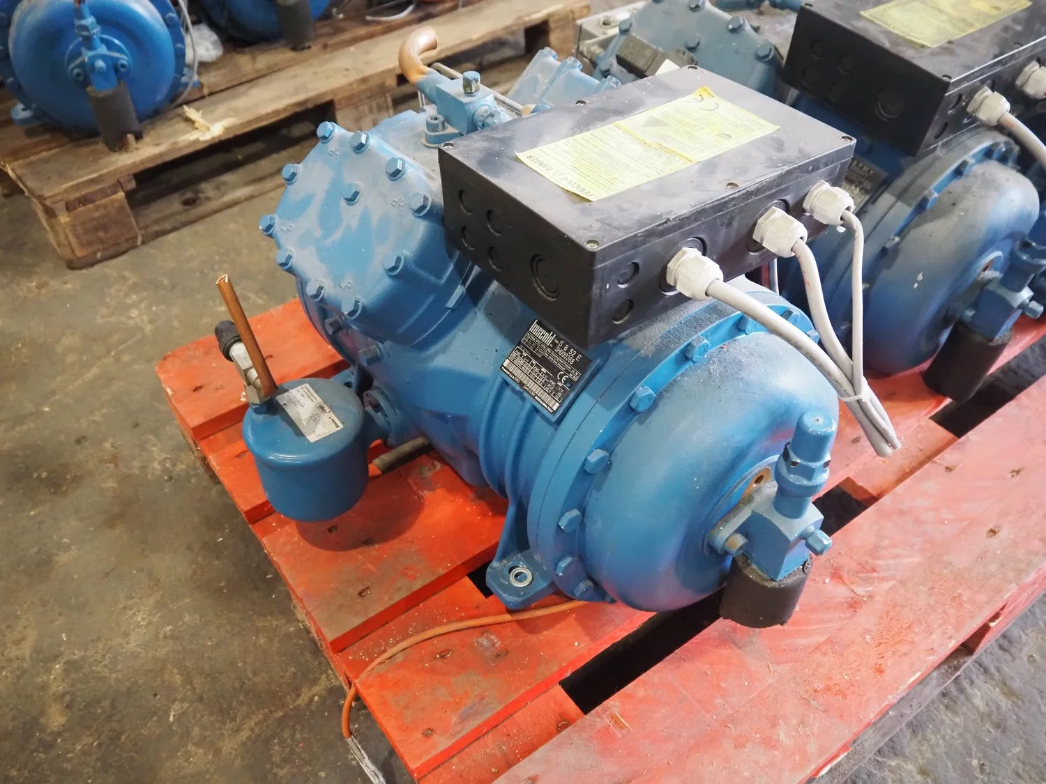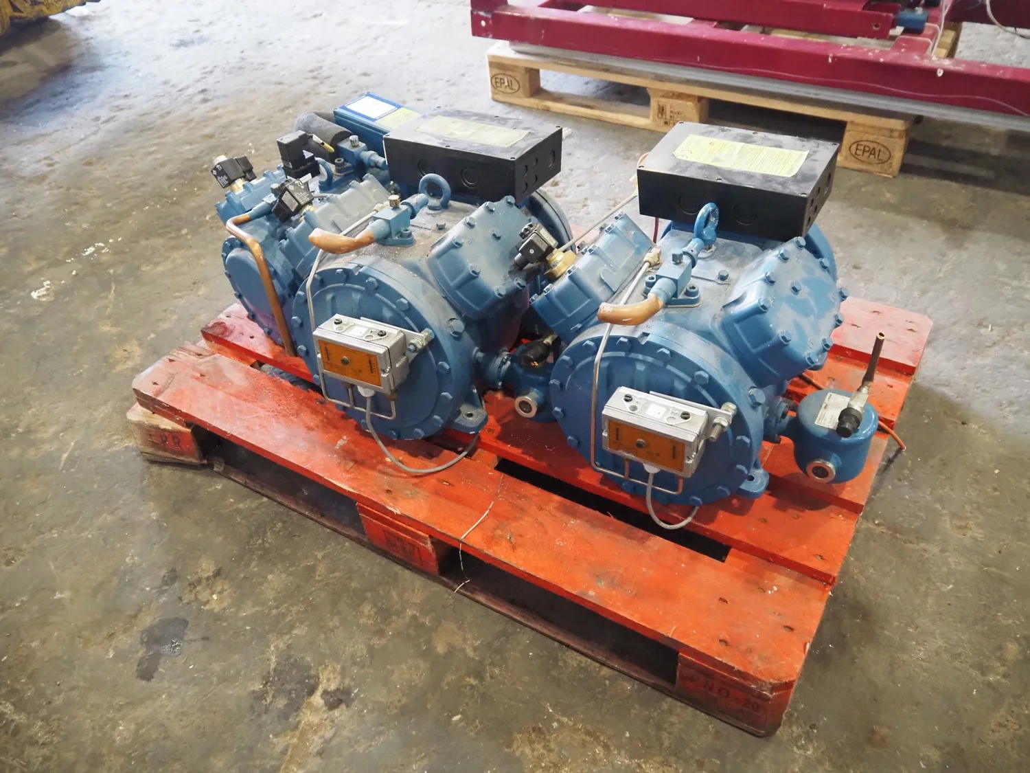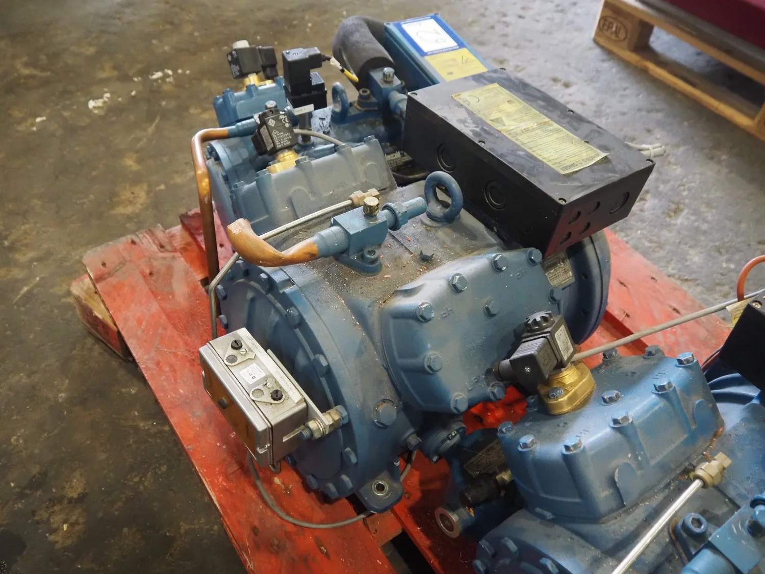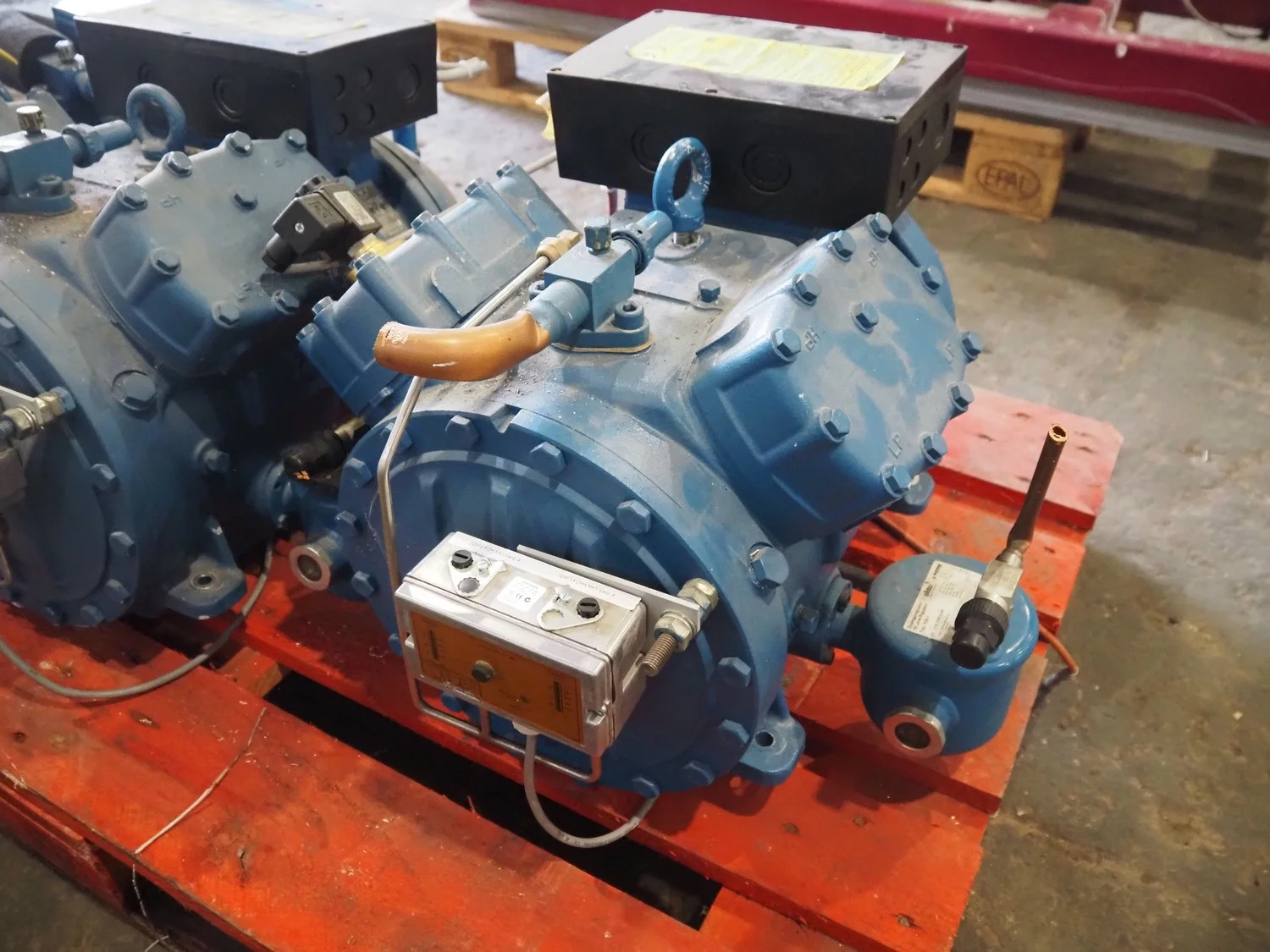 3 Frascold cooling compressors, type: S 8 52 E, capacity: 51.5/61.8 m³ per hour and type: S 7 51 Y, capacity: 50.43/61.51 m³ per hour and type: Q 5 28.1 Y 1000, capacity: 28.02/33.62 m³ per hour, dimensions: (2x) 630 mm x 500 mm x 400 mm and (1x) 530 mm x 400 mm x 400 m.