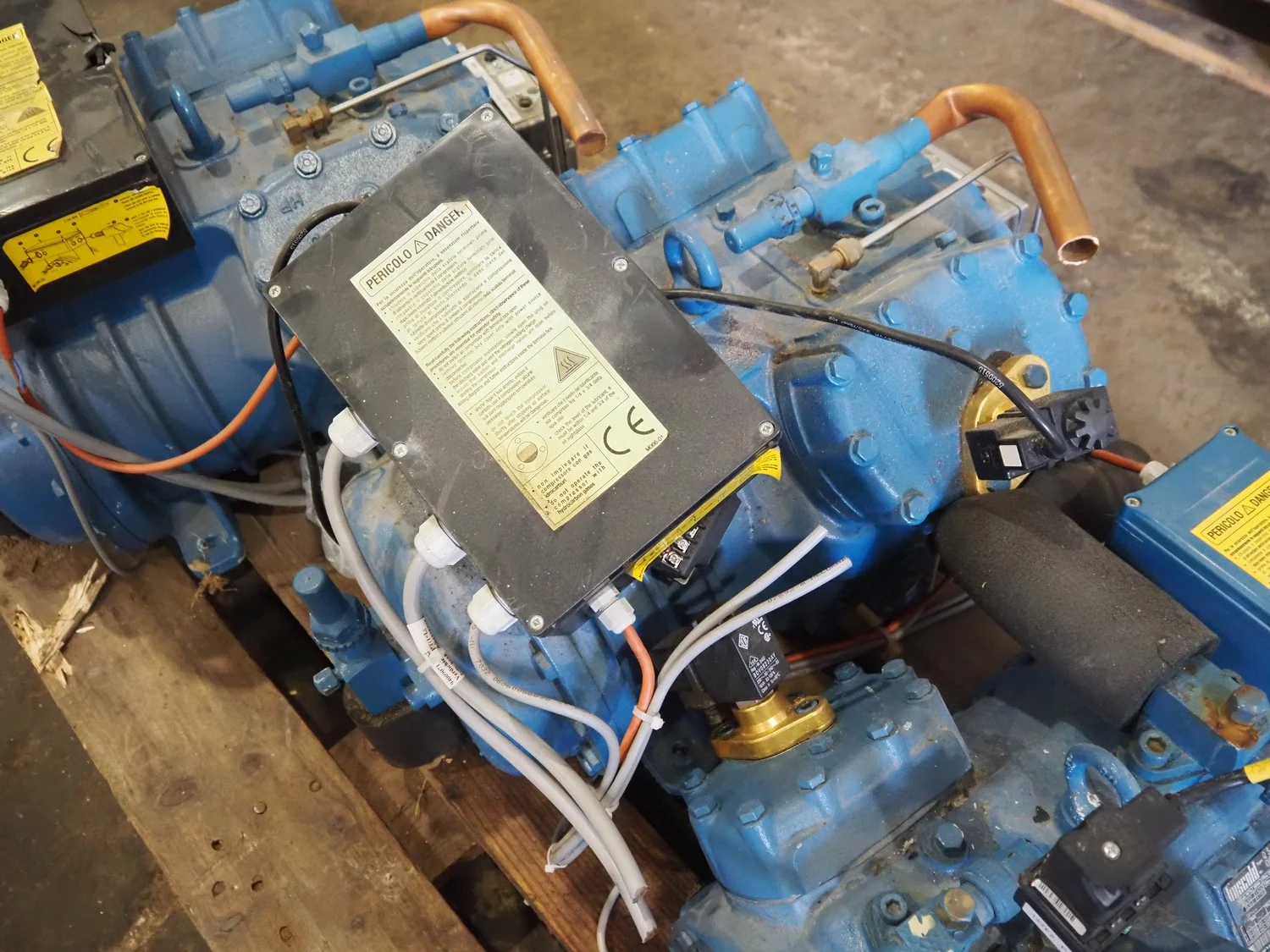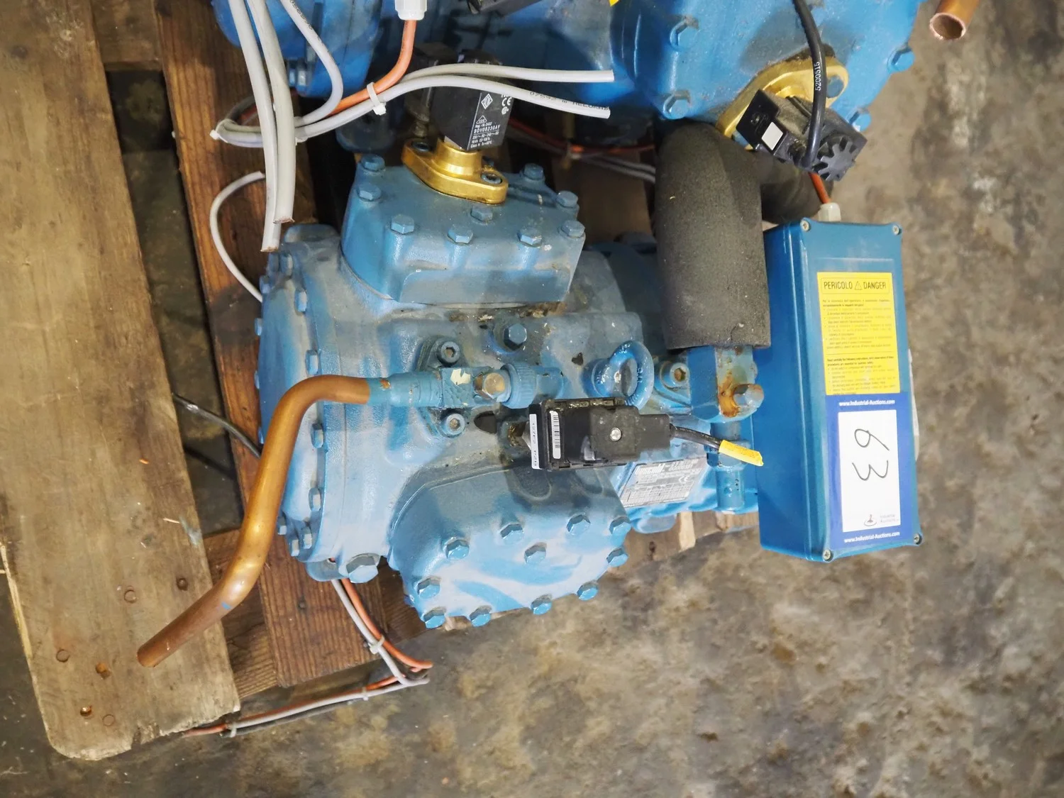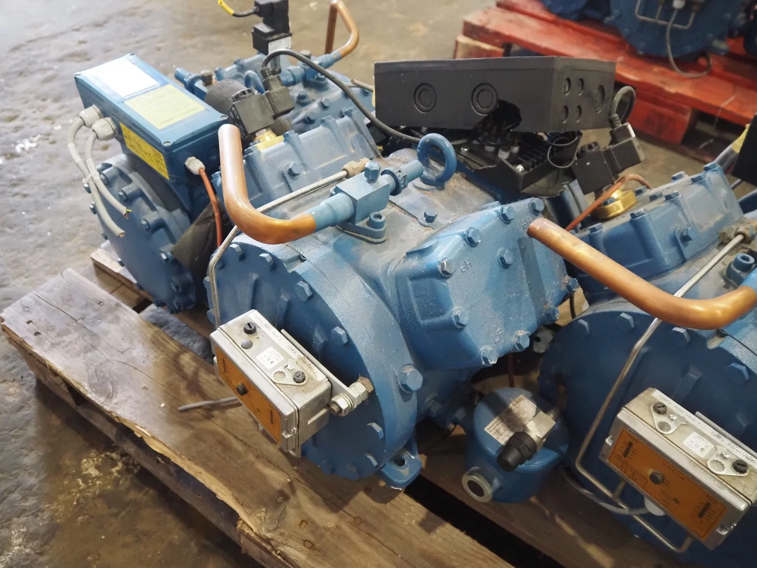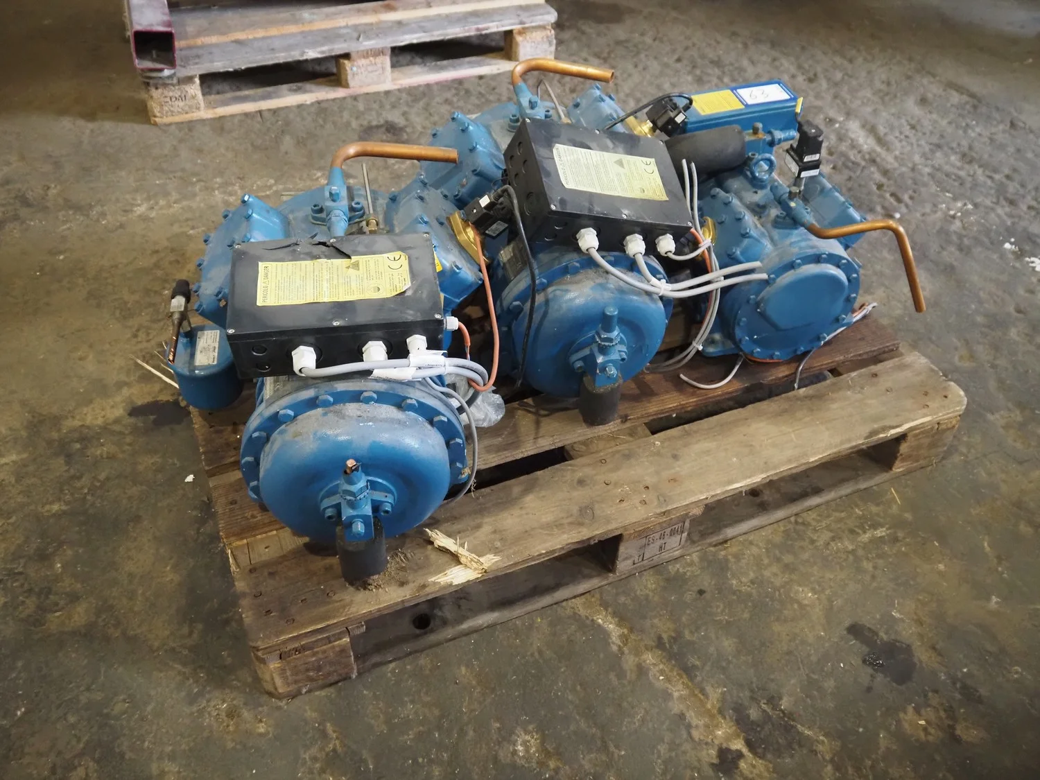 3 Frascold cooling compressors, type: (2x) S 7 51 Y, capacity: 50.43/61.51 m³ per hour and type: (1x) Q 5 28.1 Y 1000, capacity: 28.02/33.62 m³ per hour, dimensions: (2x) 630 mm x 500 mm x 400 mm and (1x) 530 mm x 400 mm x 400 m.